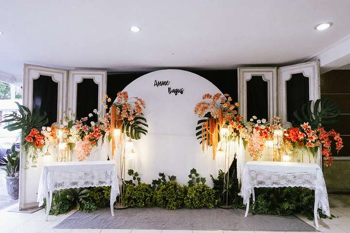 Kak Anne &Kak Bagus Dekorasi oleh Glowing Art Decoration kali ini dilaksanakan di Pusdikhub Cimahi. Pasangan yang melaksanakan Pernikahan adalah Kak Anne &Kak Bagus. Acara dilaksanakan pada tanggal 05 Januari 2025. Dekorasi kali ini sangat spesial karena dibuat untuk acara yang luar biasa spesial di hari pernikahan antara Kak Anne &Kak Bagus. Glowing Art Decoration menampilkan karya terbaik untuk pelaminan yang memiliki aksen Modern – Elegan – Simple dengan nuansa warna terdiri dari Putih, meran, orange teracotta dan peach menjadi dominan dalam acara pernikahan ini. Pada dekorasi acara pernikahan ini, Glowing Art Decoration memasang dekorasi yang terdiri dari area photobooth, Gate jalan, Stand flower 6 pcs, standar jalan, set area akad, penerima tamu dengan kotak angpau, area sisi terdapat bunga dan Pelaminan sampai 6 meter. Glowing Art Decoration juga memberikan Welcome sign khusus untuk acara ini.