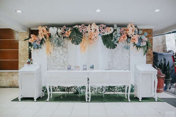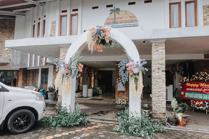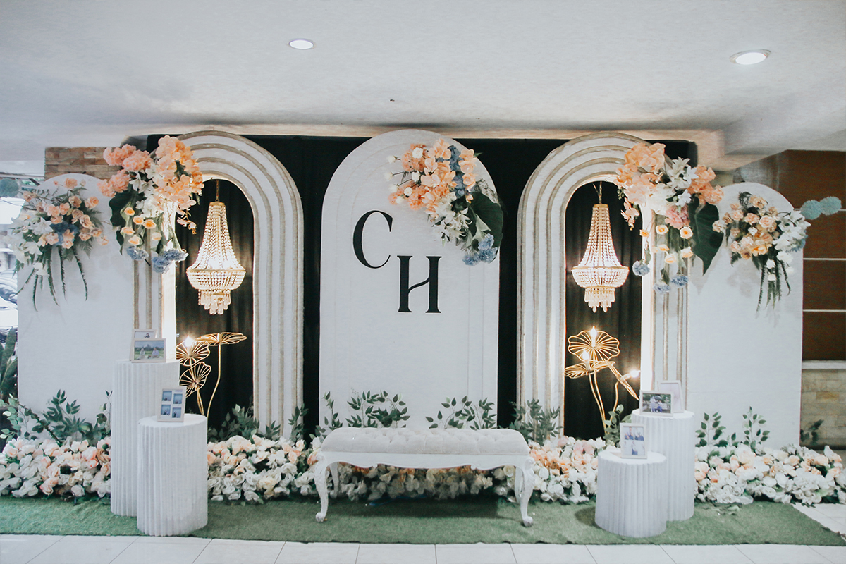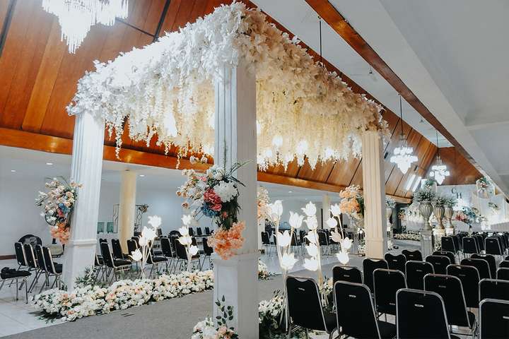 Kak Citra &Kak Hendi Dekorasi oleh Glowing Art Decoration kali ini dilaksanakan di Hotel Lingga Bandung. Pasangan yang melaksanakan Pernikahan adalah Kak Citra &Kak Hendi. Acara dilaksanakan pada tanggal 04 Mei 2025. Dekorasi kali ini sangat spesial karena dibuat untuk acara yang luar biasa spesial di hari pernikahan antara Kak Citra &Kak Hendi. Glowing Art Decoration menampilkan karya terbaik untuk pelaminan yang memiliki aksen Modern – Elegan – Simple dengan nuansa warna terdiri dari Putih, dusty pink, dusty blue dan peach menjadi dominan dalam acara pernikahan ini. Pada dekorasi acara pernikahan ini, Glowing Art Decoration memasang dekorasi yang terdiri dari area photobooth, Stand flower 6 pcs, standar jalan, set area akad, penerima tamu dengan kotak angpau, area sisi terdapat bunga dan Pelaminan sampai 8 meter. Glowing Art Decoration juga memberikan Welcome sign khusus untuk acara ini.