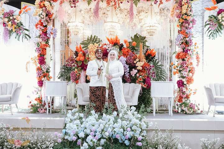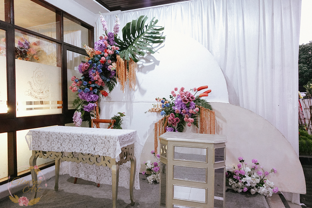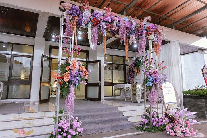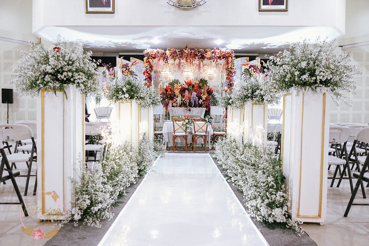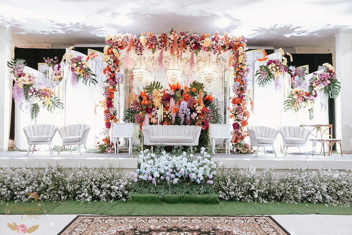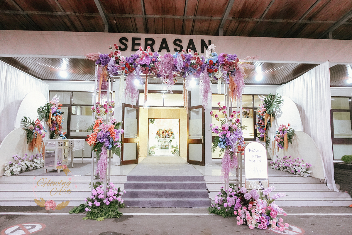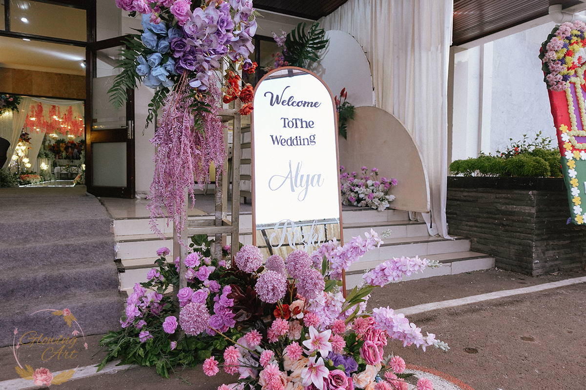 Kak Alya &Kak Rizky Dekorasi oleh Glowing Art Decoration kali ini dilaksanakan di GD Serasan Bandung. Pasangan yang melaksanakan Pernikahan adalah Kak Alya &Kak Rizky. Acara dilaksanakan pada tanggal 15 Februari 2025. Dekorasi kali ini sangat spesial karena dibuat untuk acara yang luar biasa spesial di hari pernikahan antara Kak Alya &Kak Rizky. Glowing Art Decoration menampilkan karya terbaik untuk pelaminan yang memiliki aksen Modern – Elegan – Simple dengan nuansa warna terdiri dari Putih, dusty Blue, sedikit merah, dusty pink, lilac,kuning dan peach menjadi dominan dalam acara pernikahan ini. Pada dekorasi acara pernikahan ini, Glowing Art Decoration memasang dekorasi yang terdiri dari area 2 set photobooth, 1 set Photogallery, Gate jalan, Stand flower 6 pcs, standar jalan dengan pergola, set area akad, penerima tamu dengan kotak angpau, area sisi terdapat bunga dan Pelaminan sampai 12 meter. Glowing Art Decoration juga memberikan Welcome sign khusus untuk acara ini.