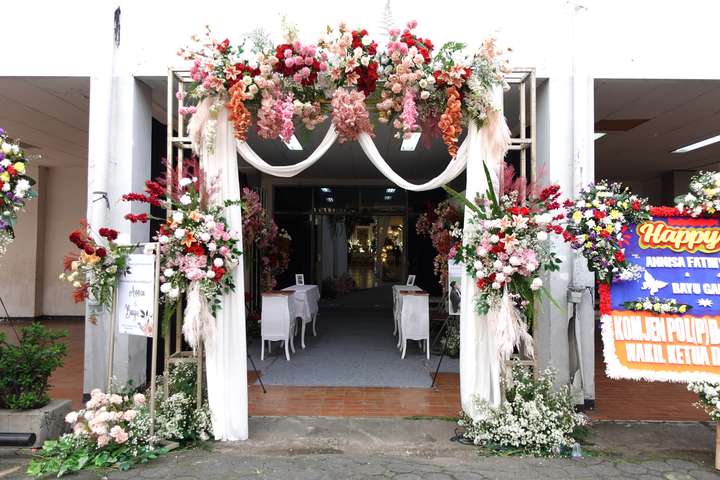 Glowing Art Decoration kali ini dilaksanakan di YPKP, Bandung. Pasangan yang melaksanakan Pernikahan adalah Kak Annisa &Kak Bayu. Acara dilaksanakan pada tanggal 27 Januari 2024. Dekorasi kali ini sangat spesial karena dibuat untuk acara yang luar biasa spesial di hari pernikahan antara Kak Annisa &Kak Bayu . Glowing Art Decoration menampilkan karya terbaik untuk pelaminan yang memiliki aksen Modern – Elegan – Simple dengan nuansa warna terdiri dari PPutih, Baby pink, Peach, Maroon, dan Nude menjadi dominan dalam acara pernikahan ini. Pada dekorasi acara pernikahan ini, Glowing Art Decoration memasang dekorasi yang terdiri dari Gate entrance, Penerima tamu 2 sisi, 2 set photogallery, 1 set photobooth, Pergola 3 x 6m, Gate jalan 2 pcs, Standing flower 6 pcs dan area Pelaminan. . Glowing Art Decoration juga memberikan Welcome sign khusus untuk acara ini.