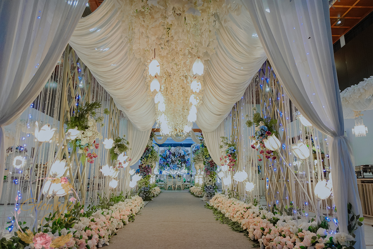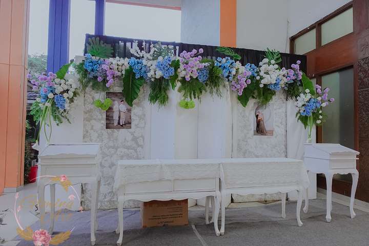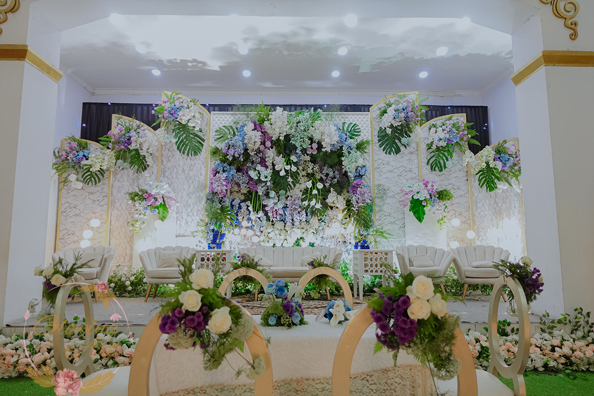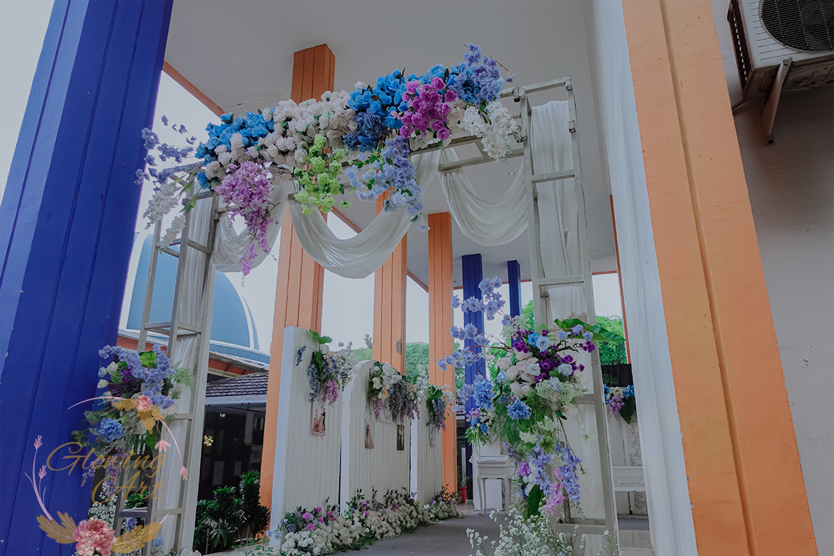 Kak Anti &Kak Reza Dekorasi oleh Glowing Art Decoration kali ini dilaksanakan di Bulog Graha Sativa Bandung. Pasangan yang melaksanakan Pernikahan adalah Kak Anti &Kak Reza. Acara dilaksanakan pada tanggal 18 Oktober 2025. Dekorasi kali ini sangat spesial karena dibuat untuk acara yang luar biasa spesial di hari pernikahan antara Kak Anti &Kak Reza. Glowing Art Decoration menampilkan karya terbaik untuk pelaminan yang memiliki aksen Modern – Elegan – Simple dengan nuansa warna terdiri dari Putih,kuning, dusty pink, hijau,puprle, dusty blue dan peach,menjadi dominan dalam acara pernikahan ini. Pada dekorasi acara pernikahan ini, Glowing Art Decoration memasang dekorasi yang terdiri dari area 1 set photobooth, 1 set Photogallery, Gate jalan, Stand flower 6 pcs, standar jalan dengan pergola dan gate Aisle, set area akad, penerima tamu dengan kotak angpau, area sisi terdapat bunga dan Pelaminan sampai 10 meter. Glowing Art Decoration juga memberikan Welcome sign khusus untuk acara ini.