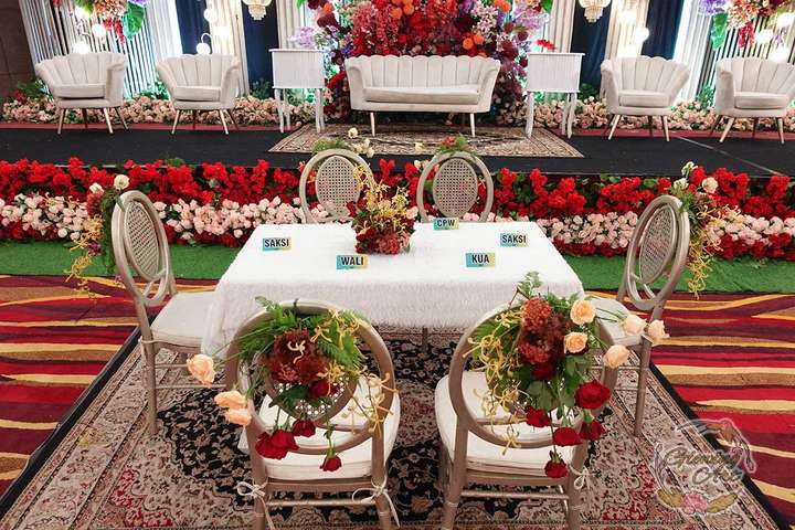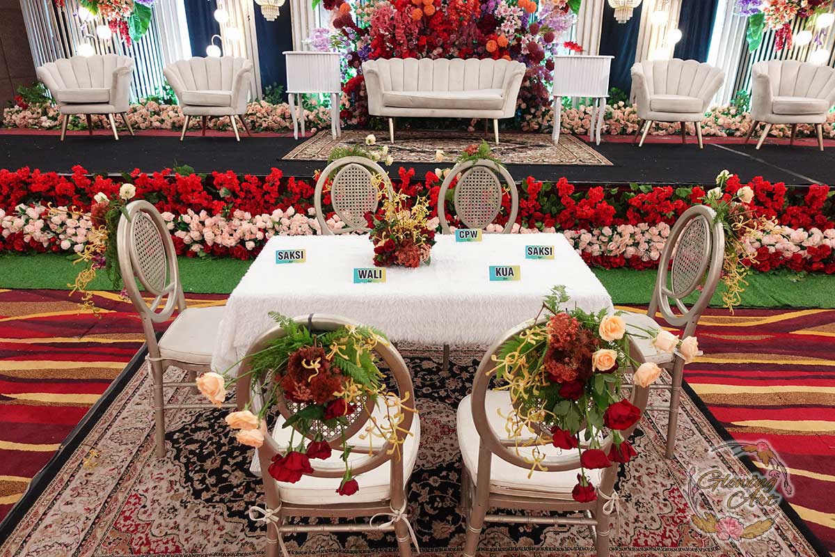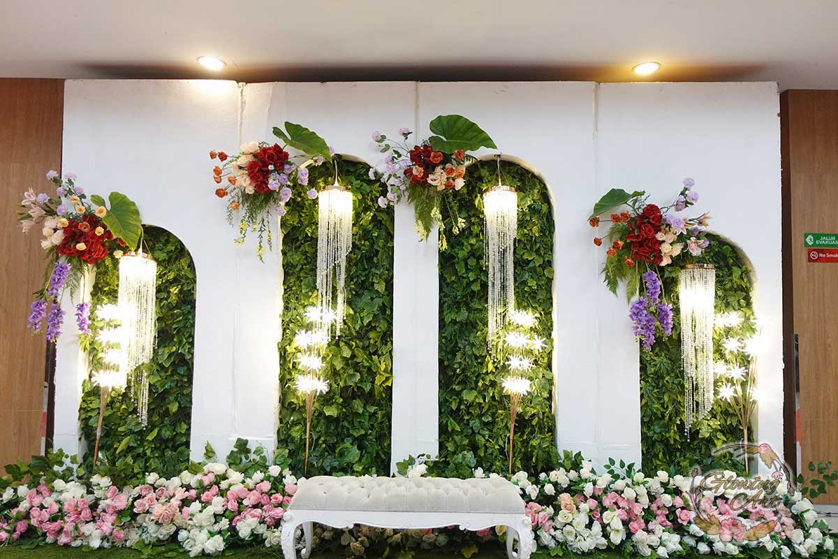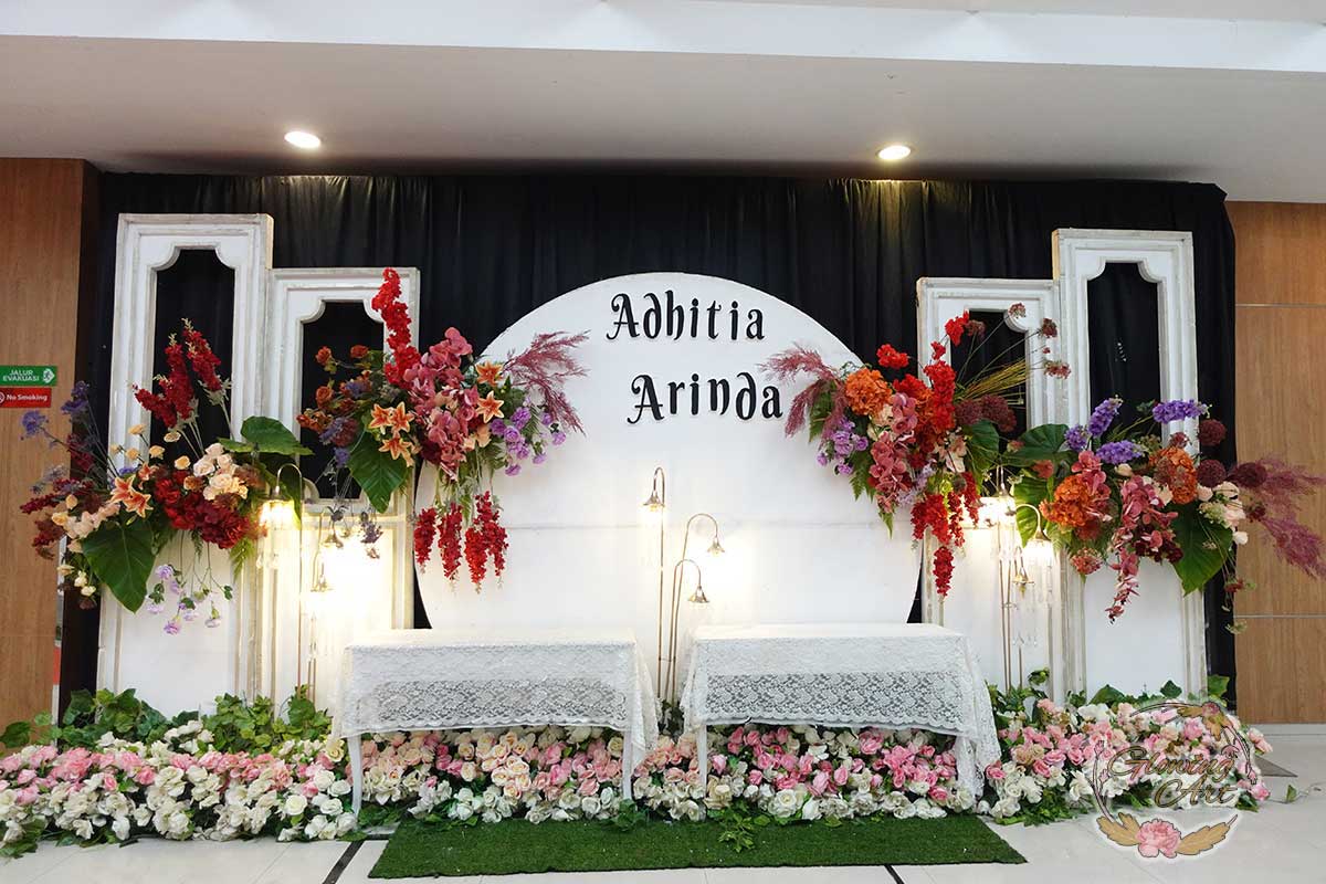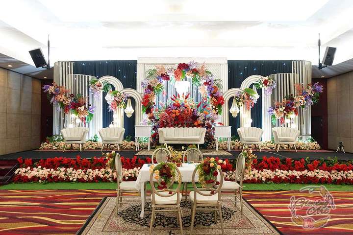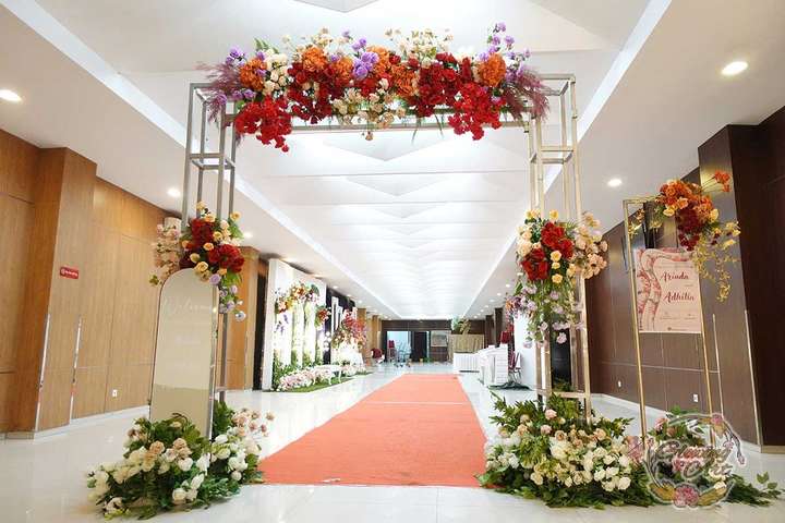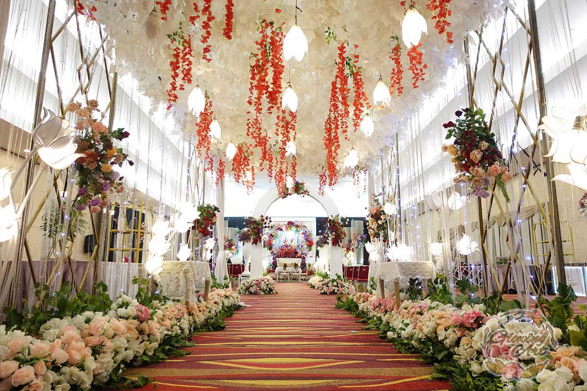 Glowing Art Decoration kali ini dilaksanakan di Istana Muara Bandung. Pasangan yang melaksanakan Pernikahan adalah Kak Arinda &kak Adhitia acara dilaksanakan pada tanggal 08 September 2024. Dekorasi kali ini sangat spesial karena dibuat untuk acara yang luar biasa spesial di hari pernikahan antara Kak Arinda &kak Adhitia. Glowing Art Decoration menampilkan karya terbaik untuk pelaminan yang memiliki aksen Modern – Elegan – Simple dengan nuansa warna terdiri dari Putih, peach, burgundy, pink dan maroon menjadi dominan dalam acara pernikahan ini. Pada dekorasi acara pernikahan ini, Glowing Art Decoration memasang dekorasi yang terdiri dari area 1 set photobooth, 1 set Photogallery, Gate jalan, Stand flower 6 pcs, standar jalan dengan pergola dan gate Aisle, set area akad, penerima tamu dengan kotak angpau, area sisi terdapat bunga dan Pelaminan sampai 10 meter. Glowing Art Decoration juga memberikan Welcome sign khusus untuk acara ini.