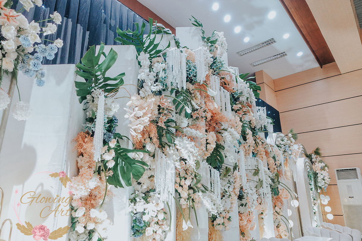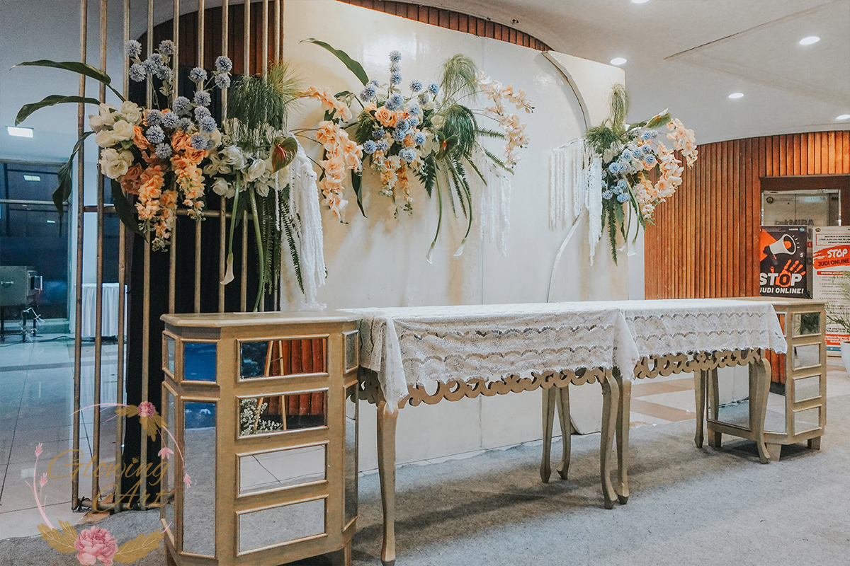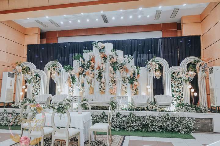 Kak Asri & Kak Fuad Dekorasi oleh Glowing Art Decoration kali ini dilaksanakan di PUSDIKLAT PT KAI Bandung. Pasangan yang melaksanakan Pernikahan adalah Kak Asri &Kak Fuad. Acara dilaksanakan pada tanggal 11 Mei 2025. Dekorasi kali ini sangat spesial karena dibuat untuk acara yang luar biasa spesial di hari pernikahan antara Kak Asri & Kak Fuad . Glowing Art Decoration menampilkan karya terbaik untuk pelaminan yang memiliki aksen Modern – Elegan – Simple dengan nuansa warna terdiri dari Putih, hijau dan Peach menjadi dominan dalam acara pernikahan ini. Pada dekorasi acara pernikahan ini, Glowing Art Decoration memasang dekorasi yang terdiri dari area 2 set photobooth, 1 set Photogallery, Gate jalan, Stand flower 6 pcs, standar jalan dengan pergola, set area akad, penerima tamu dengan kotak angpau, area sisi terdapat bunga dan Pelaminan sampai 12 meter. Glowing Art Decoration juga memberikan Welcome sign khusus untuk acara ini.