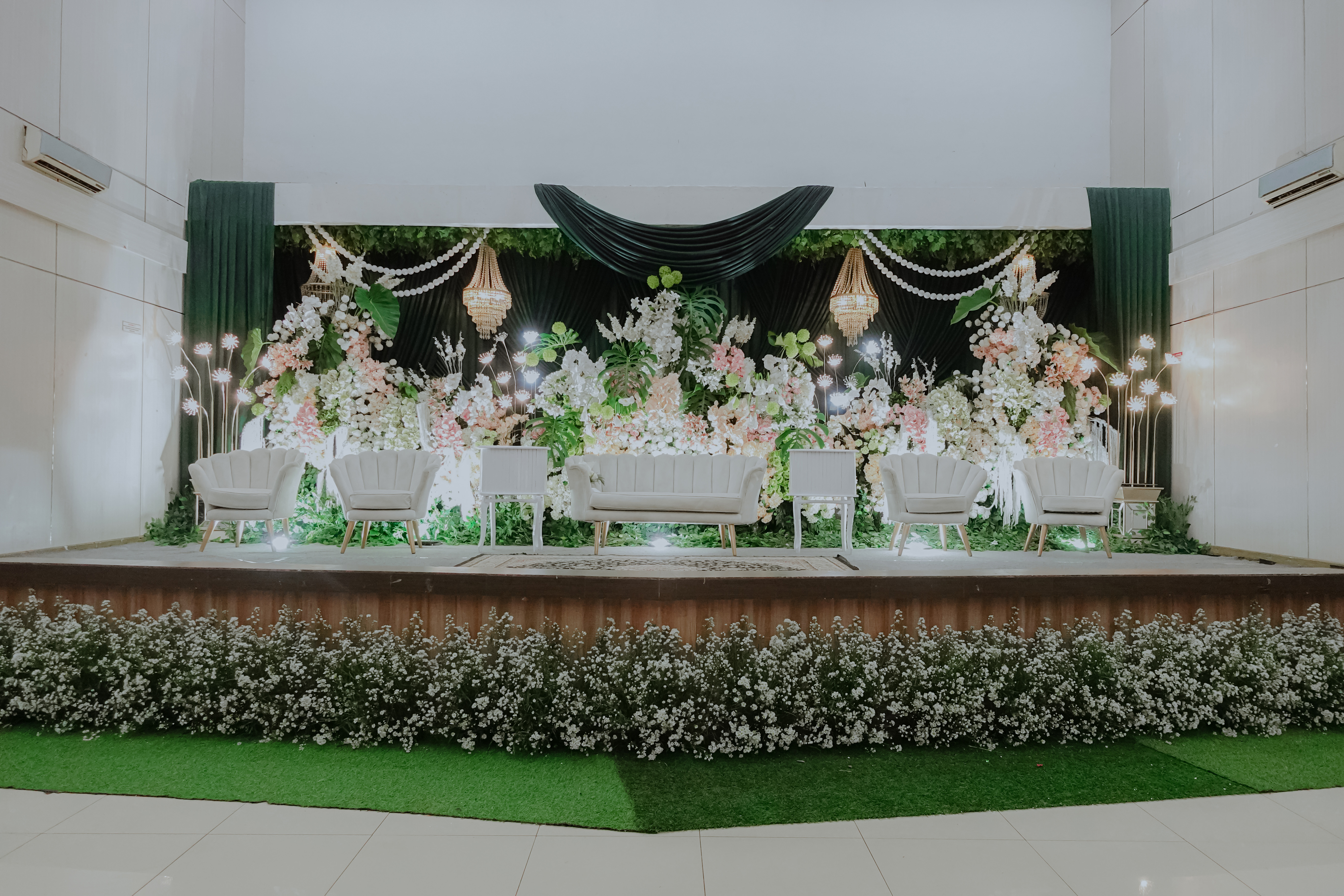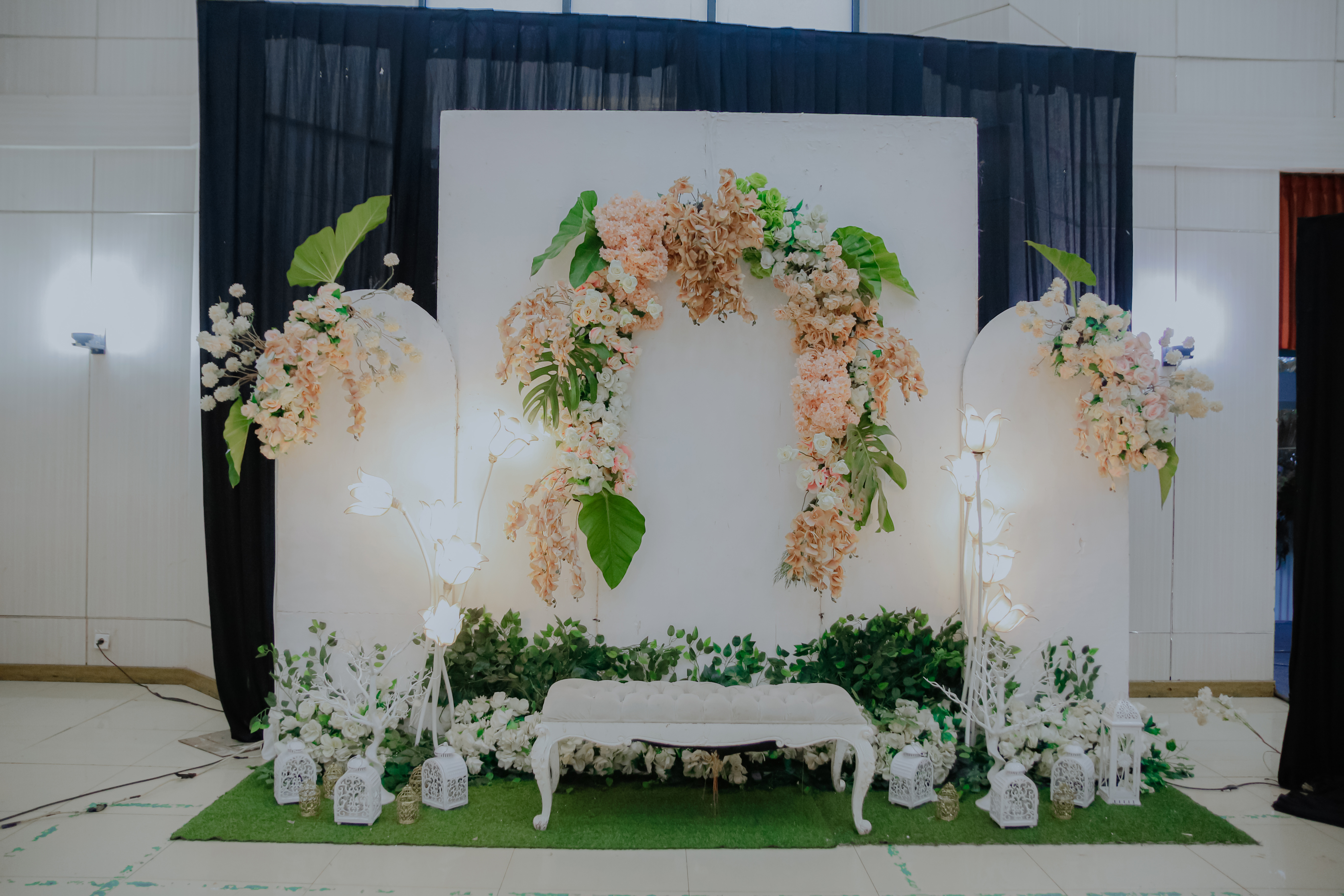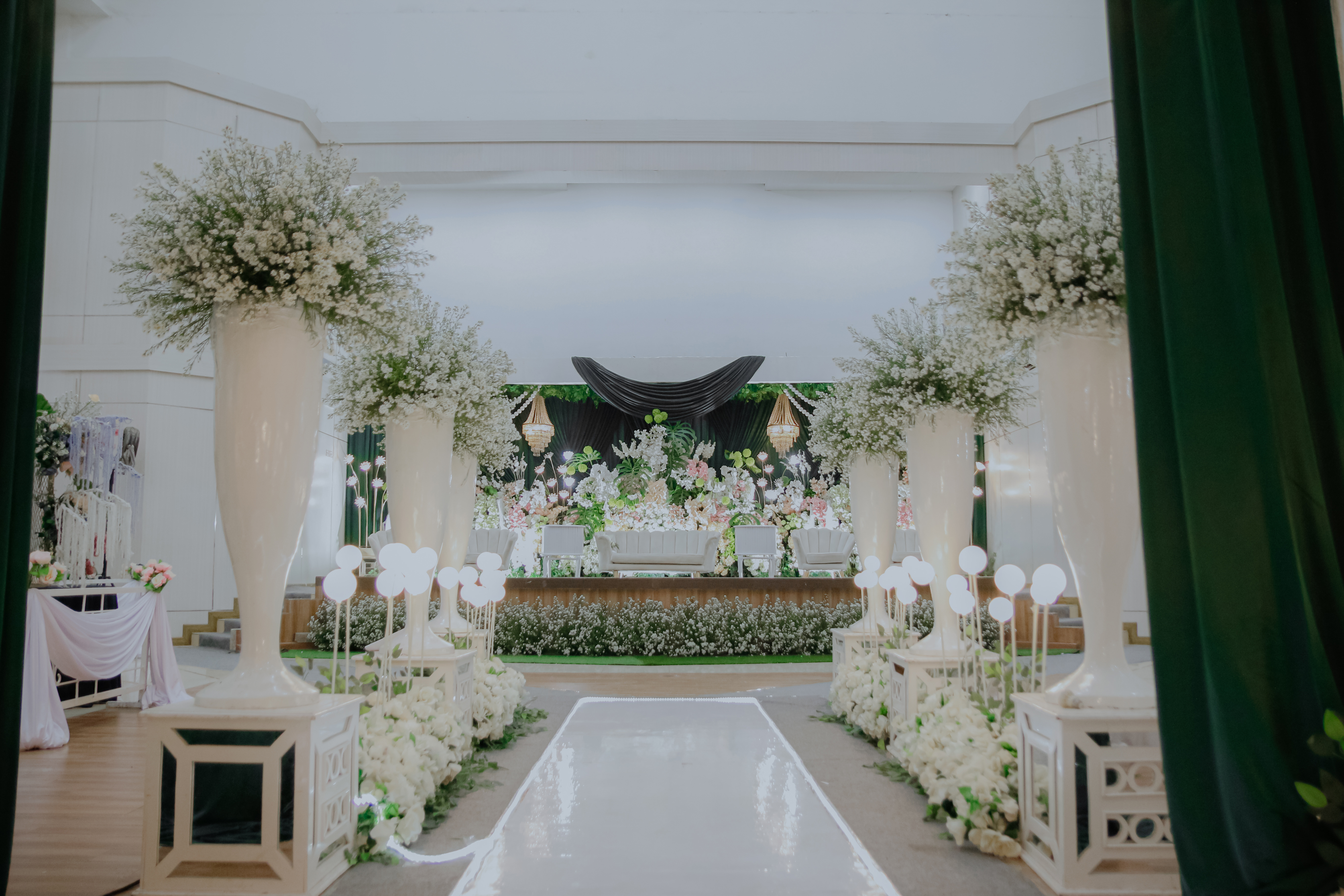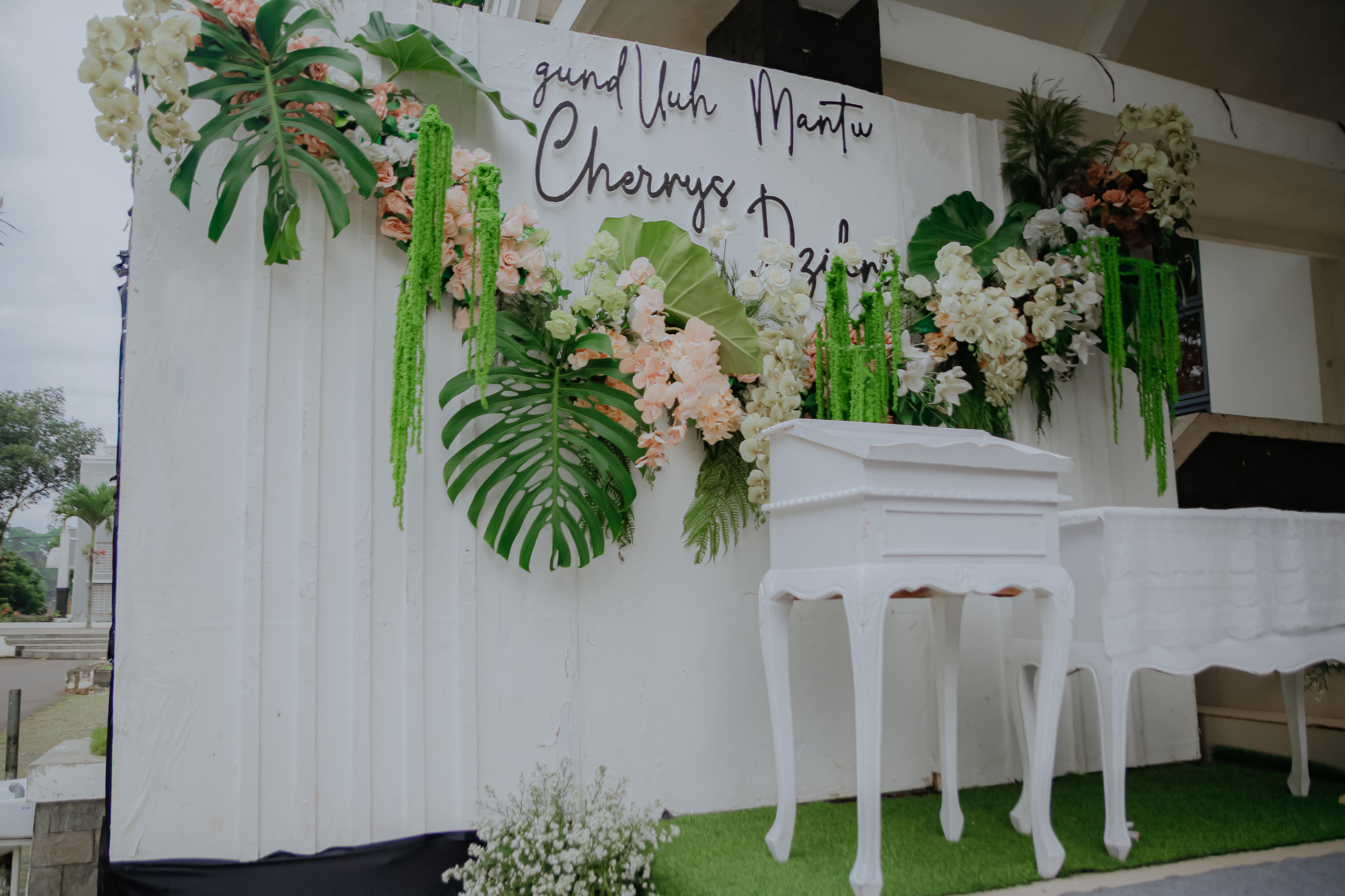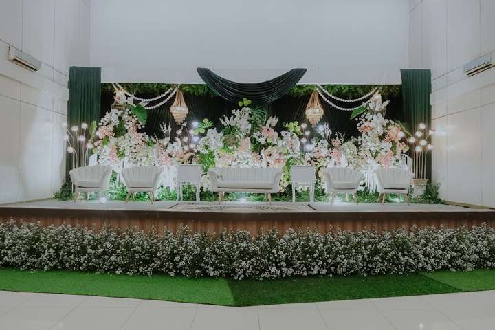 Glowing Art Decoration kali ini dilaksanakan di Graha Pindad Bandung. Pasangan yang melaksanakan Pernikahan adalah Kak Cherrys &kak Dzikri acara dilaksanakan pada tanggal 16 Februari 2026. Dekorasi kali ini sangat spesial karena dibuat untuk acara yang luar biasa spesial di hari pernikahan antara Kak Cherrys &kak Dzikri. Glowing Art Decoration menampilkan karya terbaik untuk pelaminan yang memiliki aksen Modern – Elegan – Simple dengan nuansa warna terdiri dari Putih, peach, sage dan emerald green menjadi dominan dalam acara pernikahan ini. Pada dekorasi acara pernikahan ini, Glowing Art Decoration memasang dekorasi yang terdiri dari area 1 set photobooth, 1 set Photogallery, Gate jalan, Stand flower 6 pcs, standar jalan dengan pergola dan gate Aisle, set area akad, penerima tamu dengan kotak angpau, area sisi terdapat bunga dan Pelaminan sampai 10 meter. Glowing Art Decoration juga memberikan Welcome sign khusus untuk acara ini.
