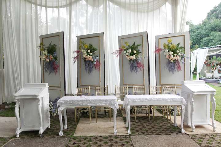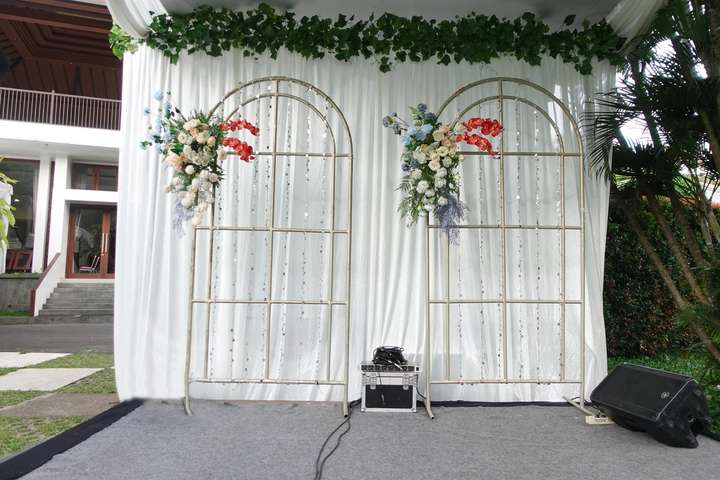 Glowing Art Decoration kali ini dilaksanakan di Bumi Samami, Bandung. Pasangan yang melaksanakan Pernikahan adalah Kak Dinda &Kak Farras. Acara dilaksanakan pada tanggal 28 Januari 2024. Dekorasi kali ini sangat spesial karena dibuat untuk acara yang luar biasa spesial di hari pernikahan antara Kak Dinda &Kak Farras . Glowing Art Decoration menampilkan karya terbaik untuk pelaminan yang memiliki aksen Modern – Elegan – Simple dengan nuansa warna terdiri dari Putih, Baby pink, Peach, Baby blue, Maroon dan Kuning menjadi dominan dalam acara pernikahan ini. Pada dekorasi acara pernikahan ini, Glowing Art Decoration memasang dekorasi yang terdiri dari Gate entrance, Penerima tamu, 1 set photobooth, Pergola 3 x 3m, Standing flower 6 pcs dan area pelaminan. Glowing Art Decoration juga memberikan Welcome sign khusus untuk acara ini.