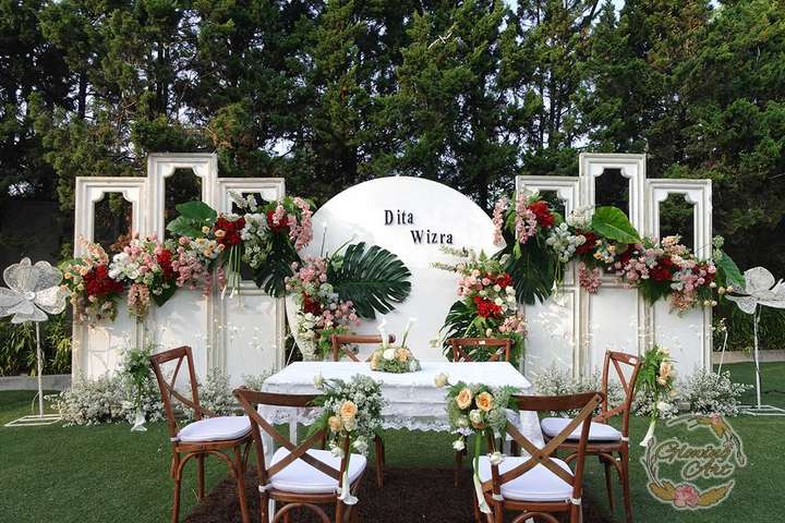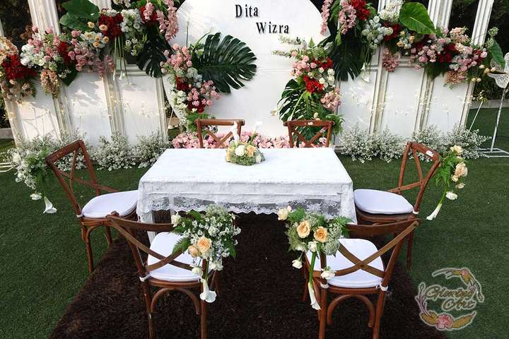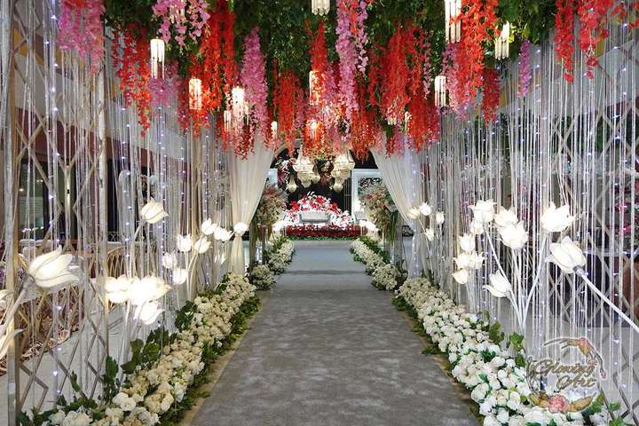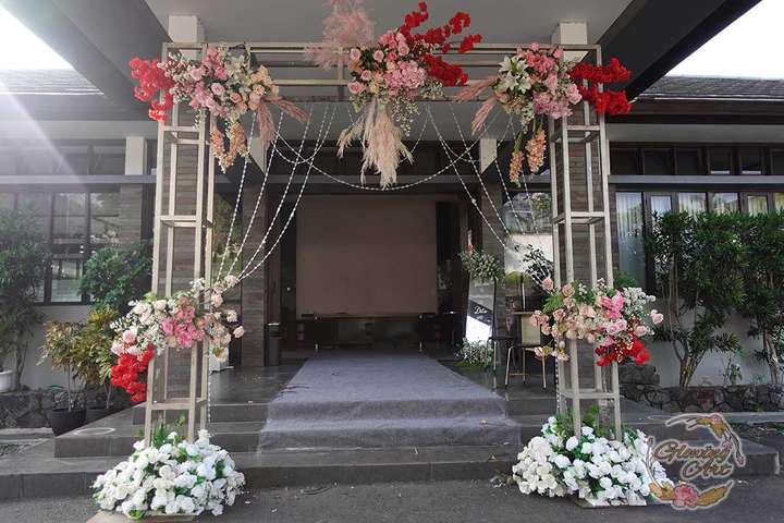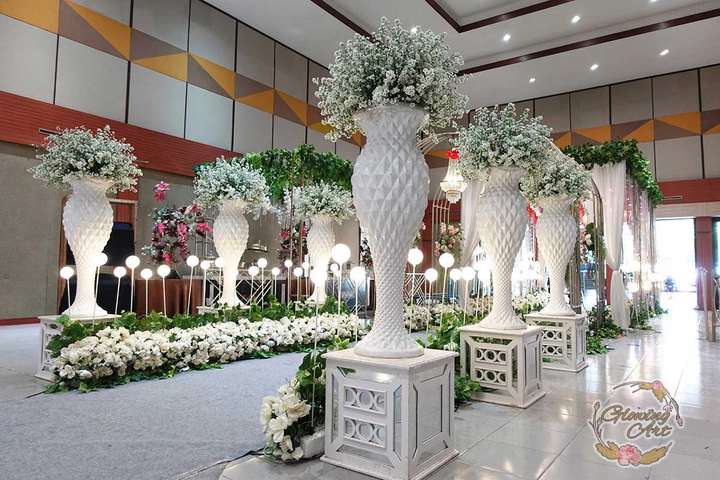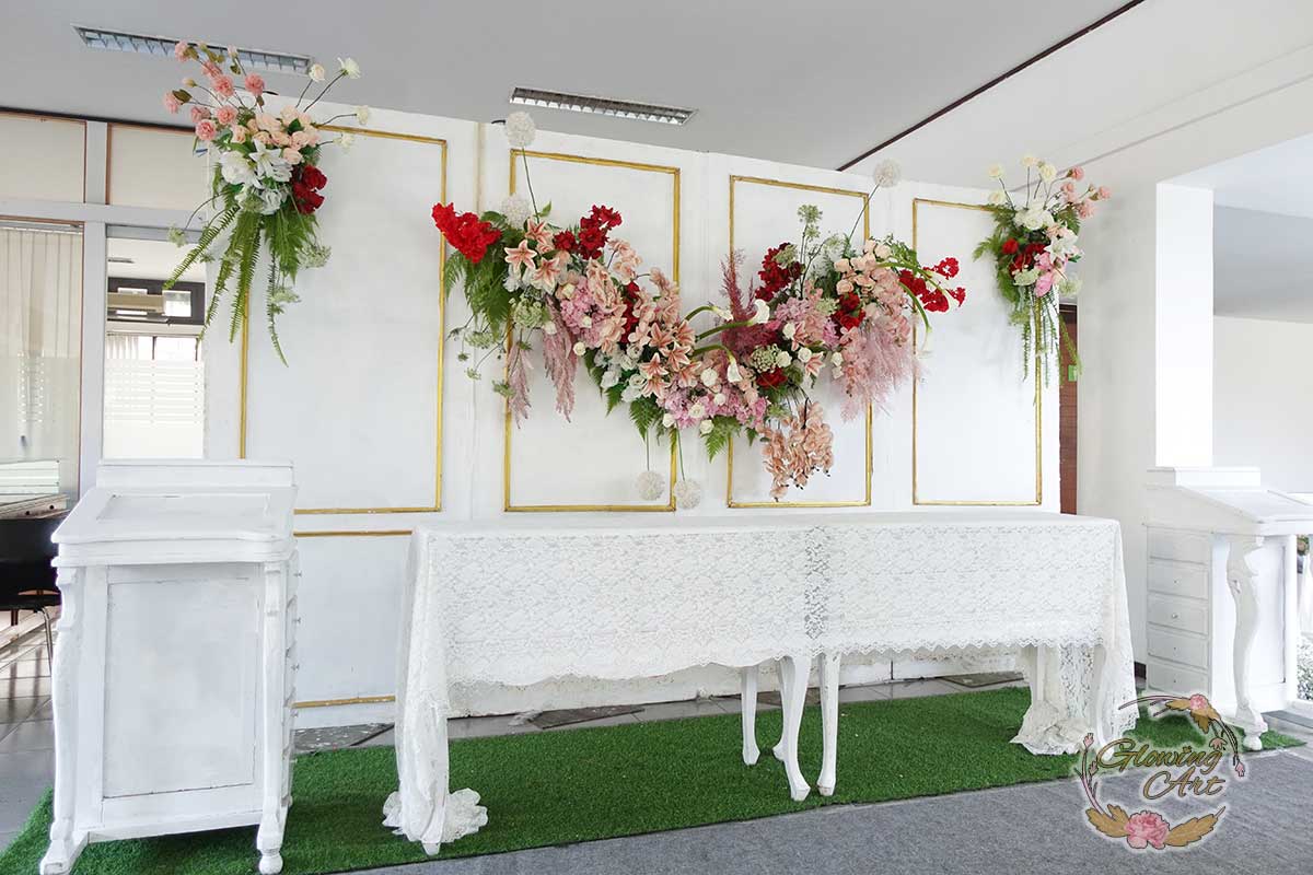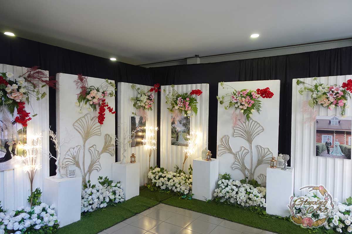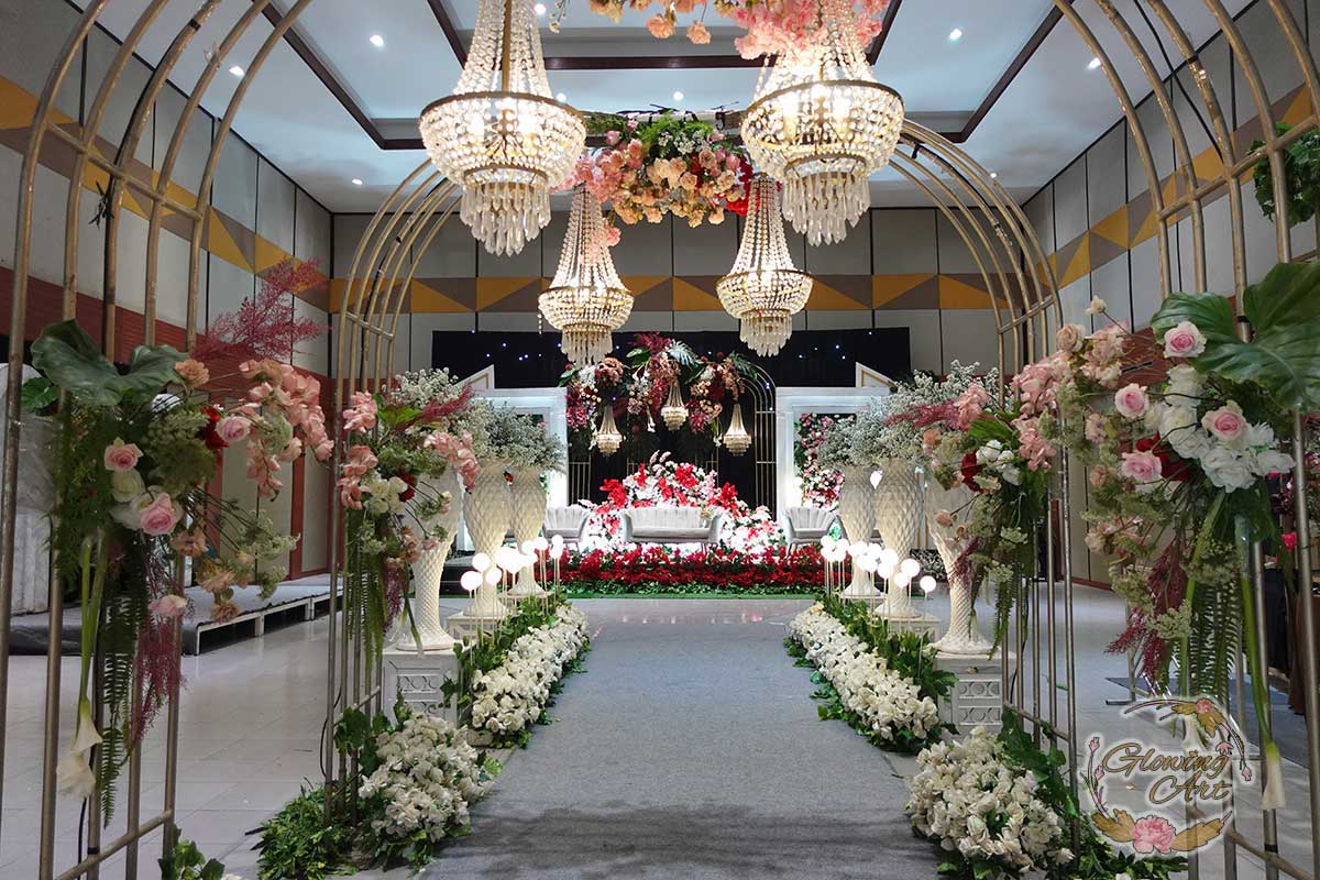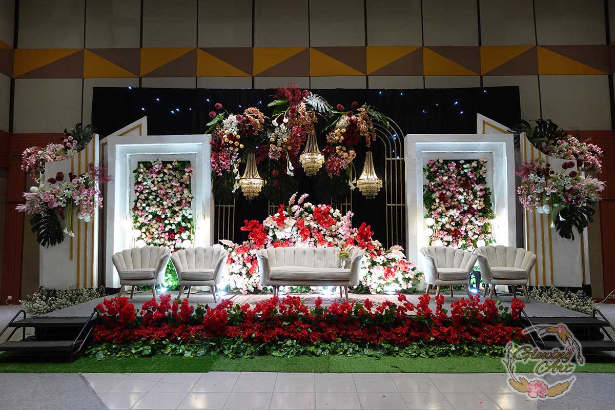 Glowing Art Decoration kali ini dilaksanakan di GD Setraduta Bandung. Pasangan yang melaksanakan Pernikahan adalah Kak Dita &Kak Wizra . Acara dilaksanakan pada tanggal 24 Agustus 2024. Dekorasi kali ini sangat spesial karena dibuat untuk acara yang luar biasa spesial di hari pernikahan antara Kak Dita &Kak Wizra . Glowing Art Decoration menampilkan karya terbaik untuk pelaminan yang memiliki aksen Modern – Elegan – Simple dengan nuansa warna terdiri dari Putih,maroon, merah, burgundy, menjadi dominan dalam acara pernikahan ini. Pada dekorasi acara pernikahan ini, Glowing Art Decoration memasang dekorasi yang terdiri dari area 2 set photobooth, 1 set Photogallery, Gate jalan, Stand flower 6 pcs, standar jalan, set VIP pengantin, penerima tamu dengan kotak angpau, area sisi terdapat bunga dan Pelaminan sampai 12 meter. Glowing Art Decoration juga memberikan Welcome sign khusus untuk acara ini.