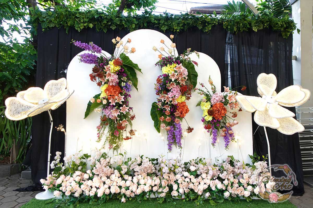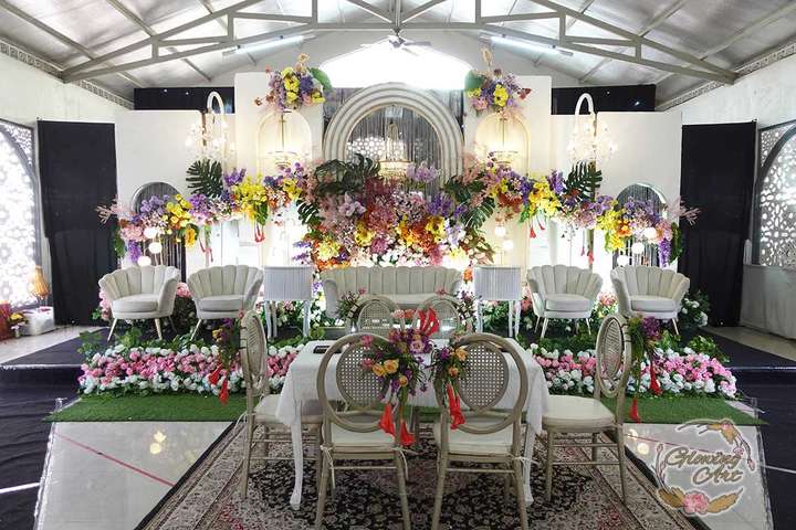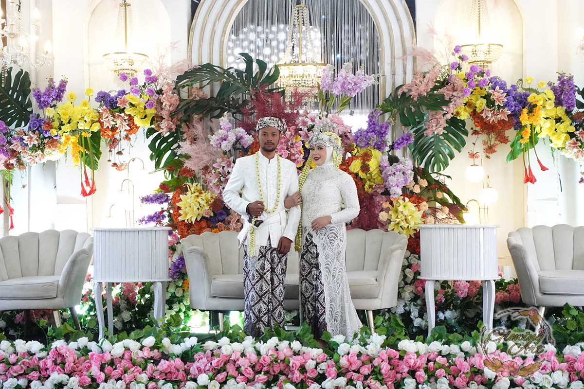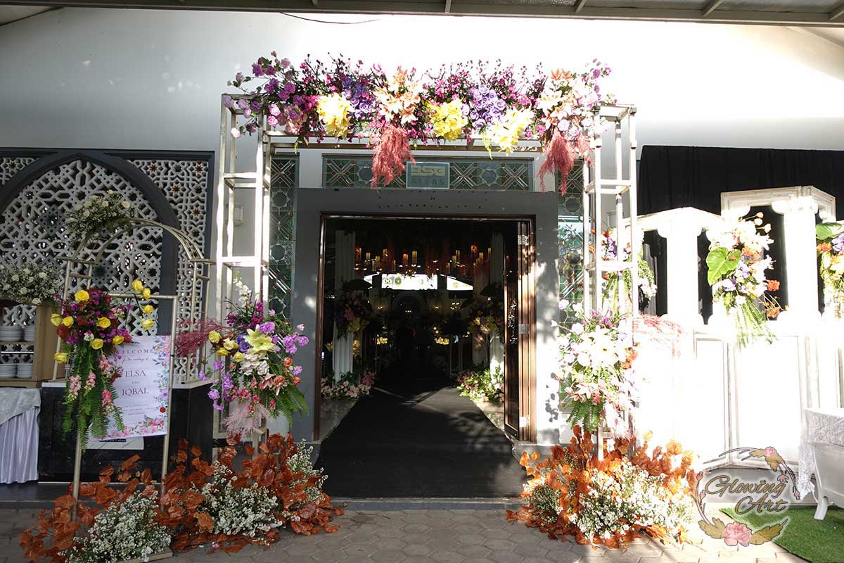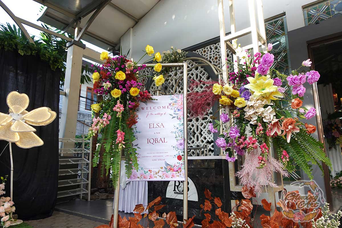 Kak Huriyatul & Kak Dewan Dekorasi oleh Glowing Art Decoration kali ini dilaksanakan di GD Atlas Bandung. Pasangan yang melaksanakan Pernikahan adalah Kak Elsa & Kak Iqbal. Acara dilaksanakan pada tanggal 14 Oktober 2024. Dekorasi kali ini sangat spesial karena dibuat untuk acara yang luar biasa spesial di hari pernikahan antara Kak Elsa & Kak Iqbal. Glowing Art Decoration menampilkan karya terbaik untuk pelaminan yang memiliki aksen Modern – Elegan – Simple dengan nuansa warna terdiri dari Putih, dusty blue, lilac, kuning dan peach menjadi dominan dalam acara pernikahan ini. Pada dekorasi acara pernikahan ini, Glowing Art Decoration memasang dekorasi yang terdiri dari area photobooth, Stand flower 6 pcs, standar jalan, set area akad, penerima tamu dengan kotak angpau,area aisle dengan pergola dan area sisi terdapat bunga dengan Pelaminan sampai 8 meter. Glowing Art Decoration juga memberikan Welcome sign khusus untuk acara ini.