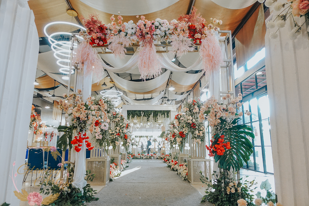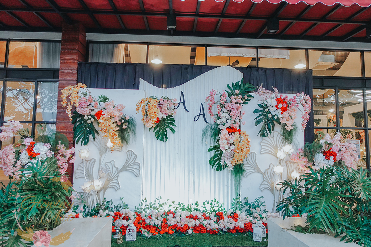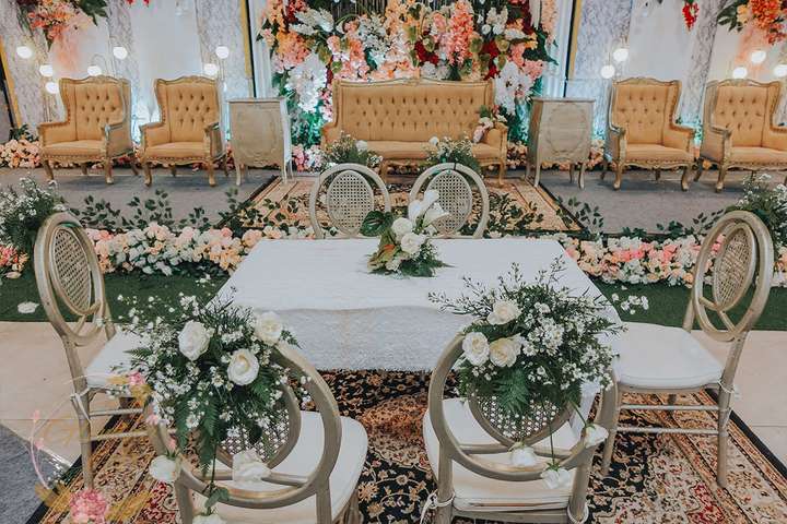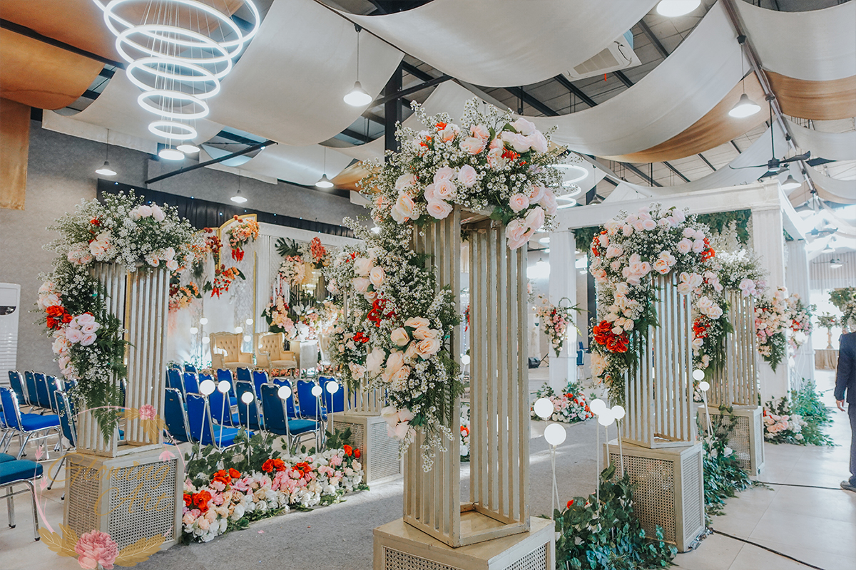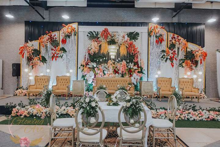 Kak Faris &Kak Anggun Dekorasi oleh Glowing Art Decoration kali ini dilaksanakan di Layana Hall Kiara Arta Bandung. Pasangan yang melaksanakan Pernikahan adalah Kak Faris &Kak Anggun. Acara dilaksanakan pada tanggal 29 Juni 2025. Dekorasi kali ini sangat spesial karena dibuat untuk acara yang luar biasa spesial di hari pernikahan antara Kak Faris &Kak Anggun. Glowing Art Decoration menampilkan karya terbaik untuk pelaminan yang memiliki aksen Modern – Elegan – Simple dengan nuansa warna terdiri dari Putih, dusty pink, touch of maroon dan peach,menjadi dominan dalam acara pernikahan ini. Pada dekorasi acara pernikahan ini, Glowing Art Decoration memasang dekorasi yang terdiri dari area 1 set photobooth, 1 set Photogallery, Gate jalan, Stand flower 6 pcs, standar jalan, set area akad, penerima tamu dengan kotak angpau, area sisi terdapat bunga dan Pelaminan sampai 10 meter. Glowing Art Decoration juga memberikan Welcome sign khusus untuk acara ini.