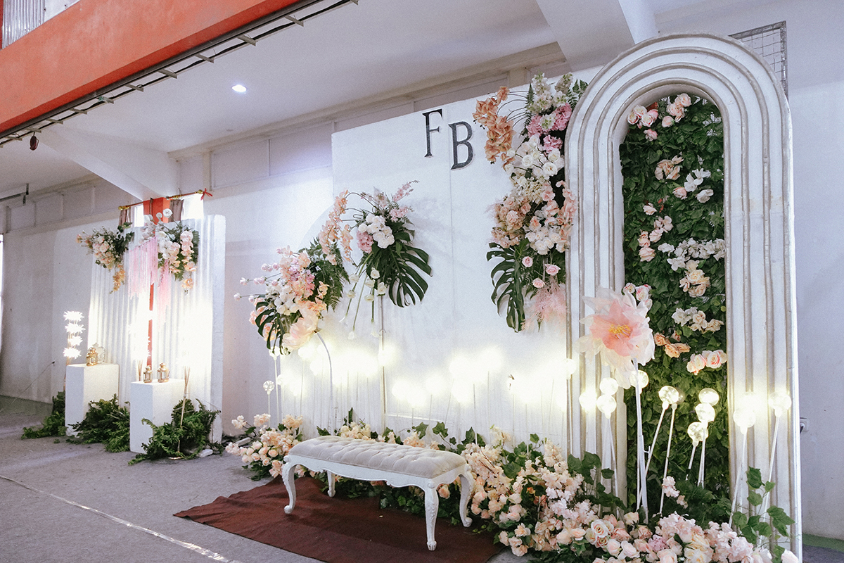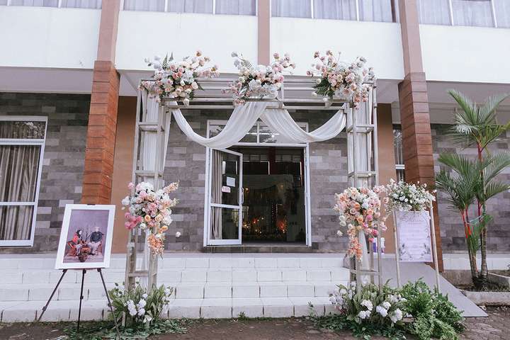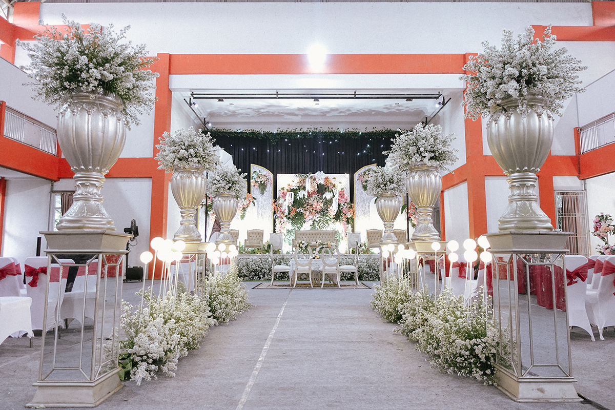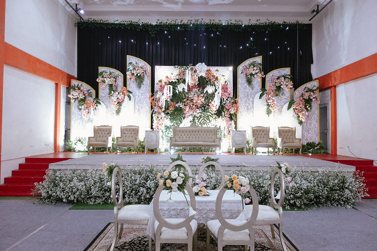 Kak Fatur &Kak Berlin Dekorasi oleh Glowing Art Decoration kali ini dilaksanakan di GSG Baitul Manshurin, Cinunuk Bandung. Pasangan yang melaksanakan Pernikahan adalah Kak Fatur &Kak Berlin. Acara dilaksanakan pada tanggal 15 Februari 2025. Dekorasi kali ini sangat spesial karena dibuat untuk acara yang luar biasa spesial di hari pernikahan antara Kak Fatur &Kak Berlin. Glowing Art Decoration menampilkan karya terbaik untuk pelaminan yang memiliki aksen Modern – Elegan – Simple dengan nuansa warna terdiri dari Putih, hijau, Dusty Pink dan peach menjadi dominan dalam acara pernikahan ini. Pada dekorasi acara pernikahan ini, Glowing Art Decoration memasang dekorasi yang terdiri dari area photobooth, 1 set Photogallery, Gate jalan, Stand flower 6 pcs, standar jalan, set area akad, penerima tamu dengan kotak angpau, area sisi terdapat bunga dan Pelaminan sampai 10 meter. Glowing Art Decoration juga memberikan Welcome sign khusus untuk acara ini.