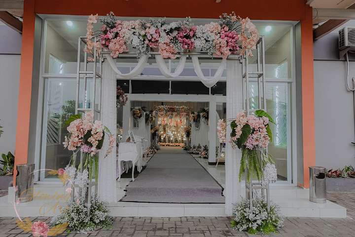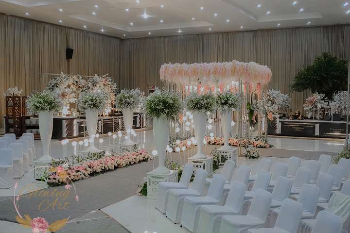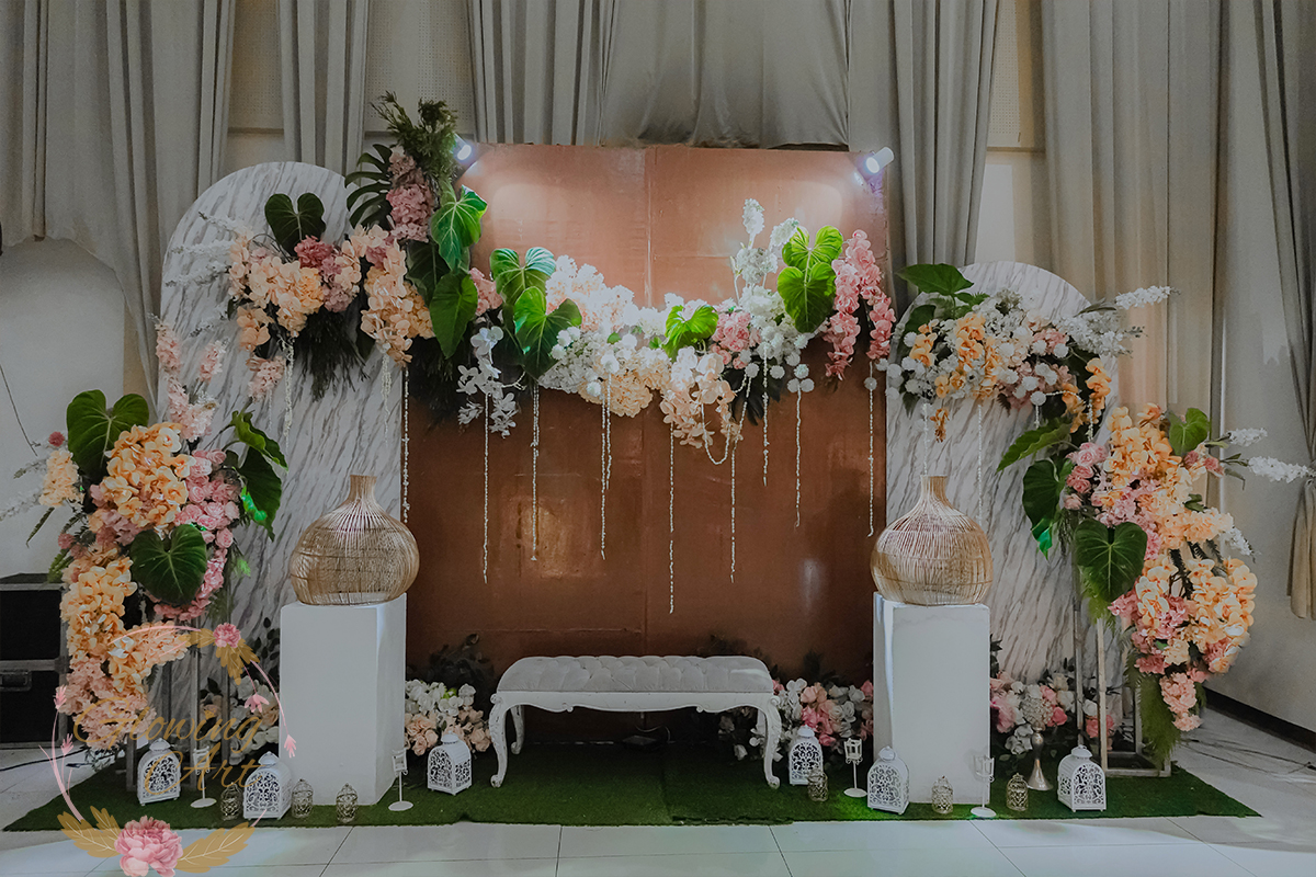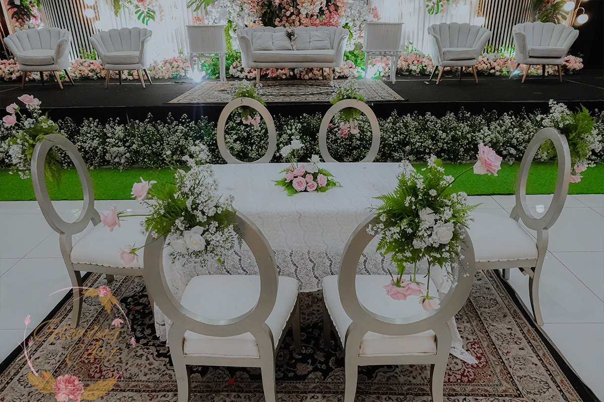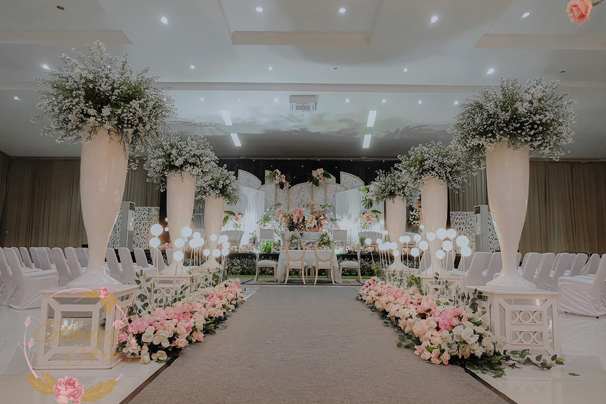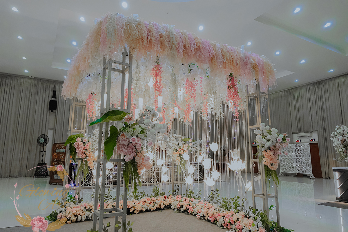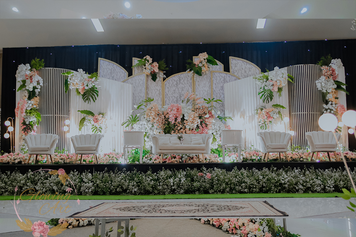Glowing Art Decoration kali ini dilaksanakan di Graha Singosari Bandung. Pasangan yang melaksanakan Pernikahan adalah Kak Feby &Kak Ilham. Acara dilaksanakan pada tanggal 07 Desember 2025. Dekorasi kali ini sangat spesial karena dibuat untuk acara yang luar biasa spesial di hari pernikahan antara Kak Feby &Kak Ilham. Glowing Art Decoration menampilkan karya terbaik untuk pelaminan yang memiliki aksen Modern – Elegan – Simple dengan nuansa warna terdiri dari Putih, dusty pink,peach,menjadi dominan dalam acara pernikahan ini. Pada dekorasi acara pernikahan ini, Glowing Art Decoration memasang dekorasi yang terdiri dari area 1 set photobooth, 1 set Photogallery, Gate jalan, Stand flower 6 pcs, standar jalan dengan pergola dan gate Aisle, set area akad, penerima tamu dengan kotak angpau, area sisi terdapat bunga dan Pelaminan sampai 10 meter. Glowing Art Decoration juga memberikan Welcome sign khusus untuk acara ini.