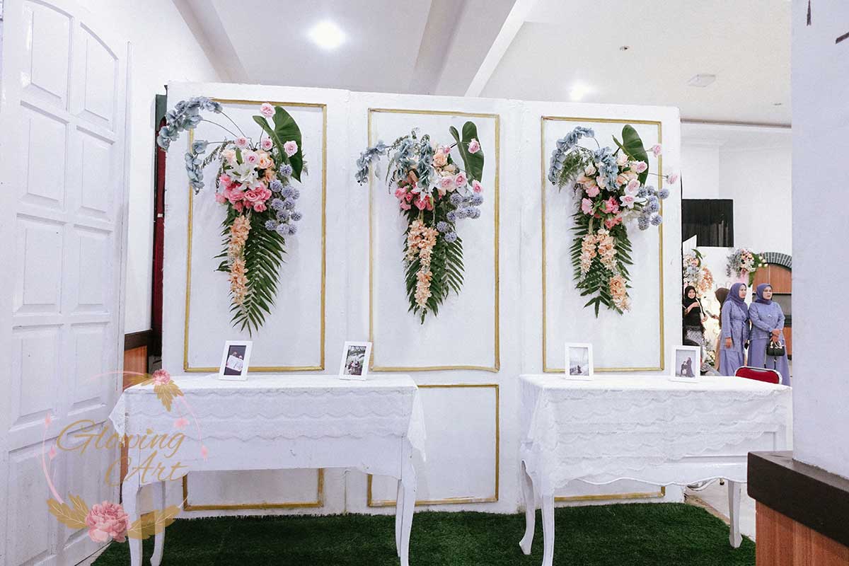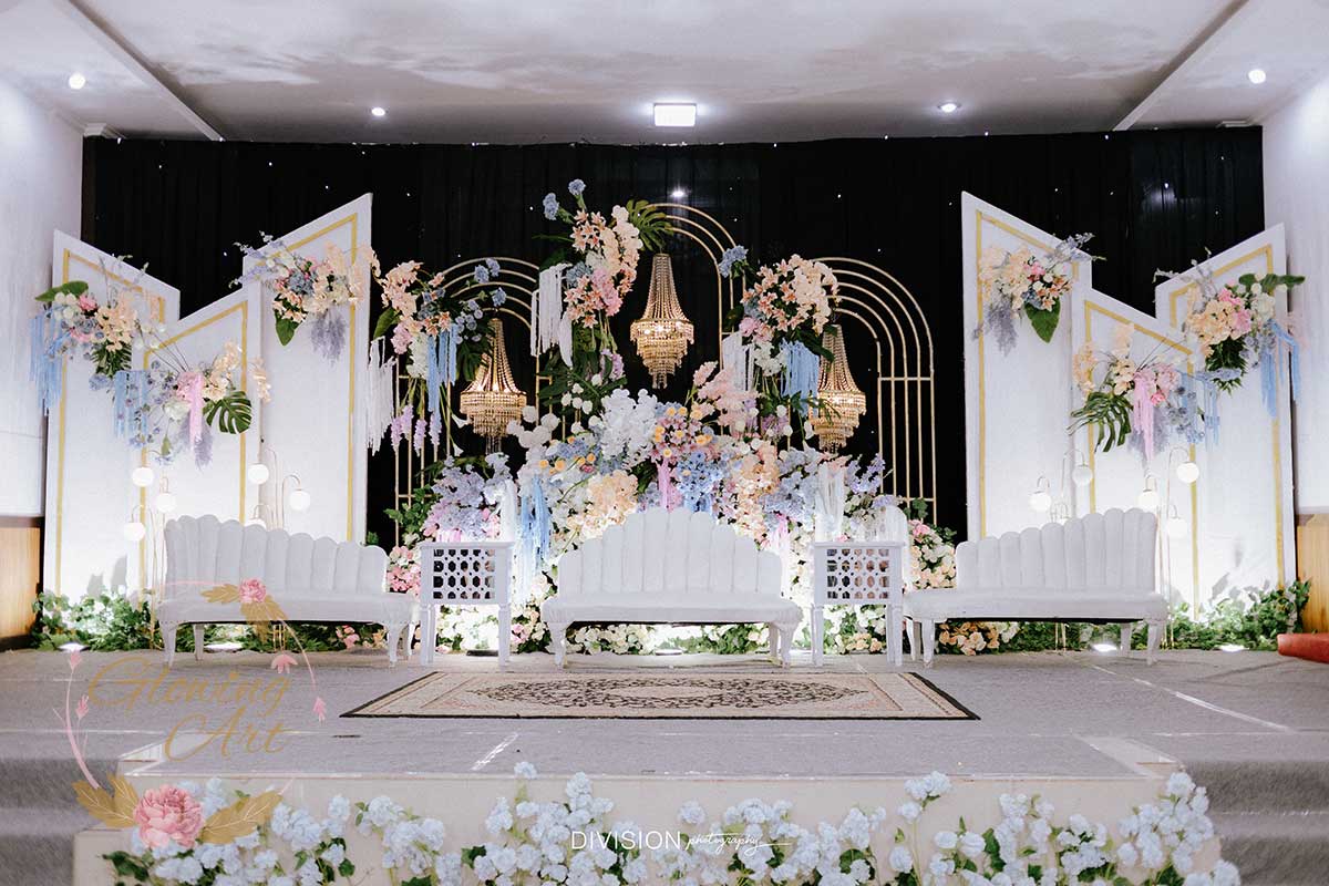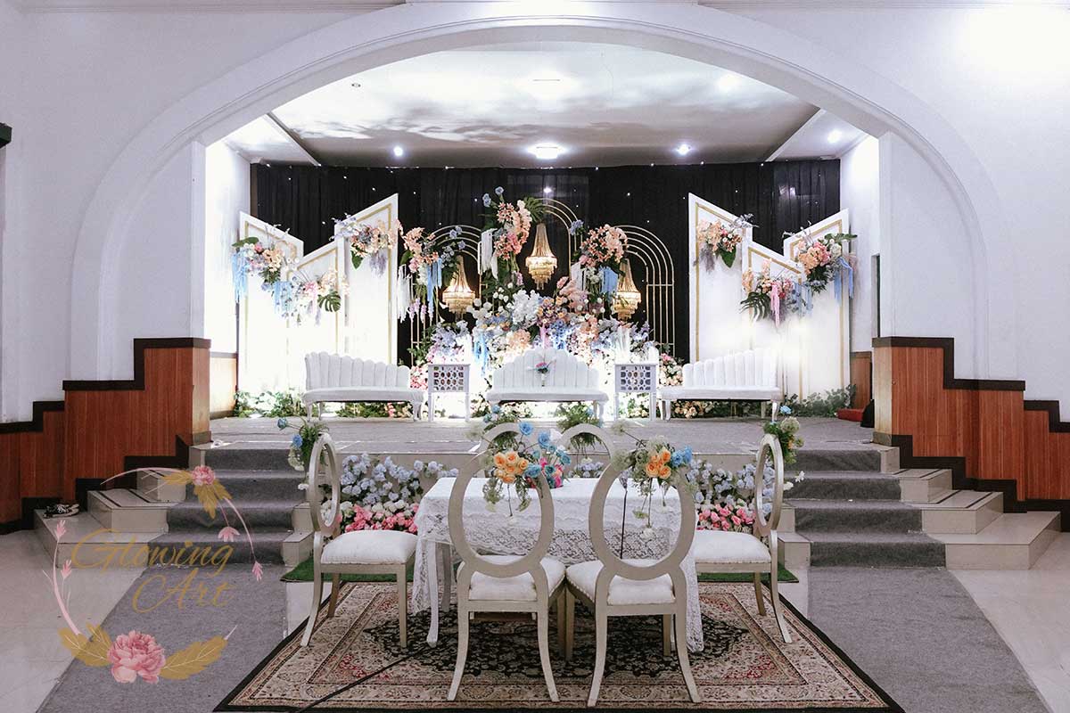 Kak Gema &Kak Nesya Dekorasi oleh Glowing Art Decoration kali ini dilaksanakan di Aula Badarusamsi bandung. Pasangan yang melaksanakan Pernikahan adalah Kak Gema &Kak Nesya. Acara dilaksanakan pada tanggal 09 Februari 2025. Dekorasi kali ini sangat spesial karena dibuat untuk acara yang luar biasa spesial di hari pernikahan antara Kak Gema &Kak Nesya. Glowing Art Decoration menampilkan karya terbaik untuk pelaminan yang memiliki aksen Modern – Elegan – Simple dengan nuansa warna terdiri dari Putih, Dusty blue, dan peach menjadi dominan dalam acara pernikahan ini. Pada dekorasi acara pernikahan ini, Glowing Art Decoration memasang dekorasi yang terdiri dari area photobooth, Gate, Stand flower 6 pcs, standar jalan, set area akad, penerima tamu dengan kotak angpau, area depan terdapat gate entrance area sisi terdapat bunga dan Pelaminan sampai 6 meter. Glowing Art Decoration juga memberikan Welcome sign khusus untuk acara ini.
