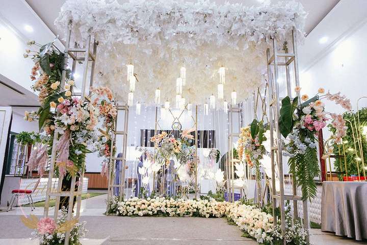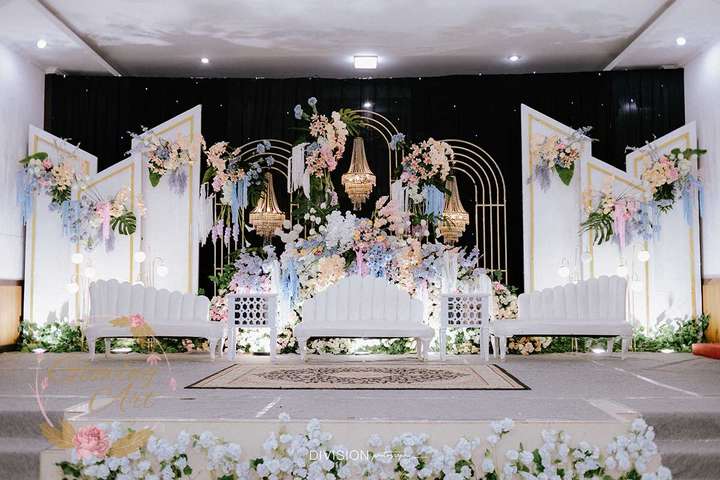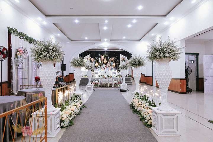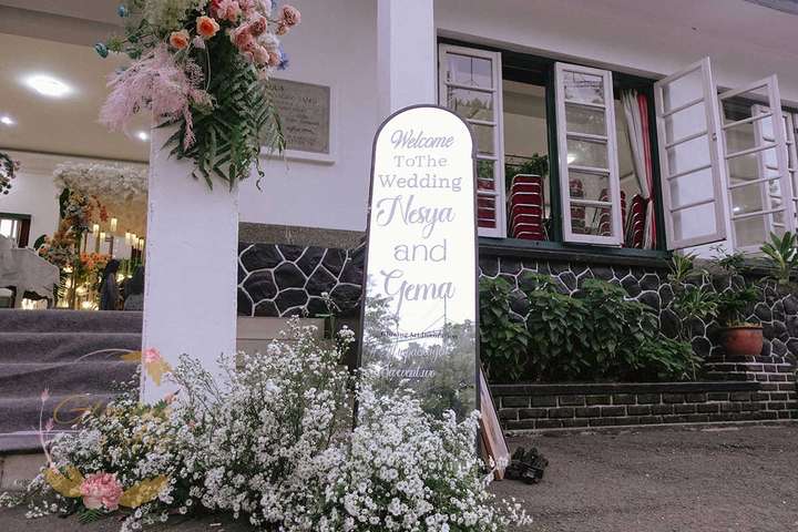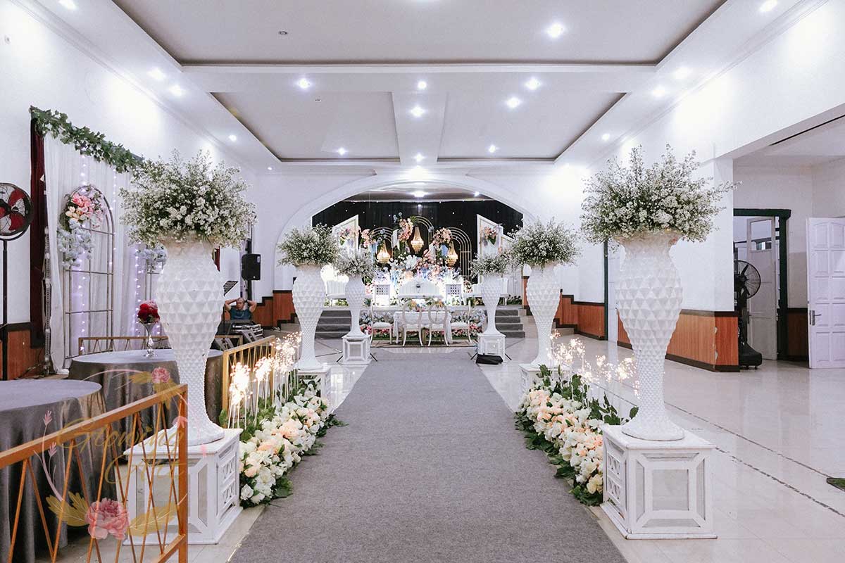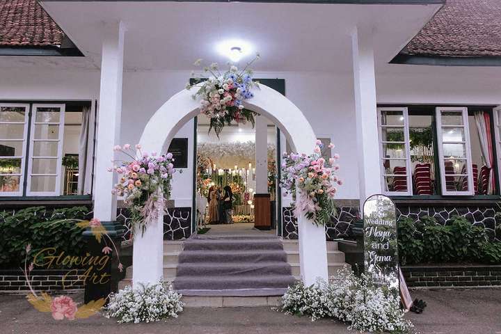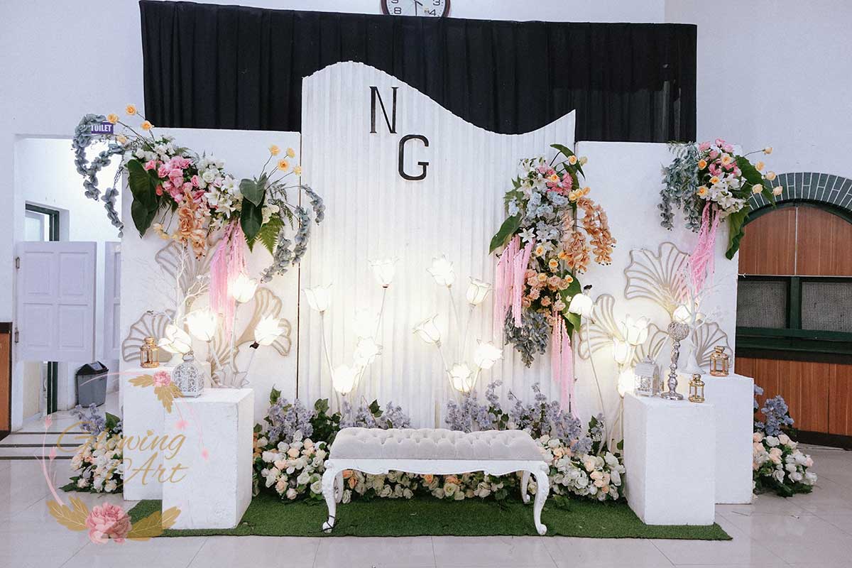 Kak Gema &Kak Nesya Dekorasi oleh Glowing Art Decoration kali ini dilaksanakan di Aula Badarusamsi bandung. Pasangan yang melaksanakan Pernikahan adalah Kak Gema &Kak Nesya. Acara dilaksanakan pada tanggal 09 Februari 2025. Dekorasi kali ini sangat spesial karena dibuat untuk acara yang luar biasa spesial di hari pernikahan antara Kak Gema &Kak Nesya. Glowing Art Decoration menampilkan karya terbaik untuk pelaminan yang memiliki aksen Modern – Elegan – Simple dengan nuansa warna terdiri dari Putih, Dusty blue, dan peach menjadi dominan dalam acara pernikahan ini. Pada dekorasi acara pernikahan ini, Glowing Art Decoration memasang dekorasi yang terdiri dari area photobooth, Gate, Stand flower 6 pcs, standar jalan, set area akad, penerima tamu dengan kotak angpau, area depan terdapat gate entrance area sisi terdapat bunga dan Pelaminan sampai 6 meter. Glowing Art Decoration juga memberikan Welcome sign khusus untuk acara ini.