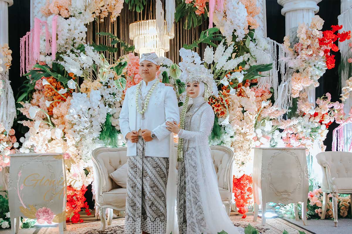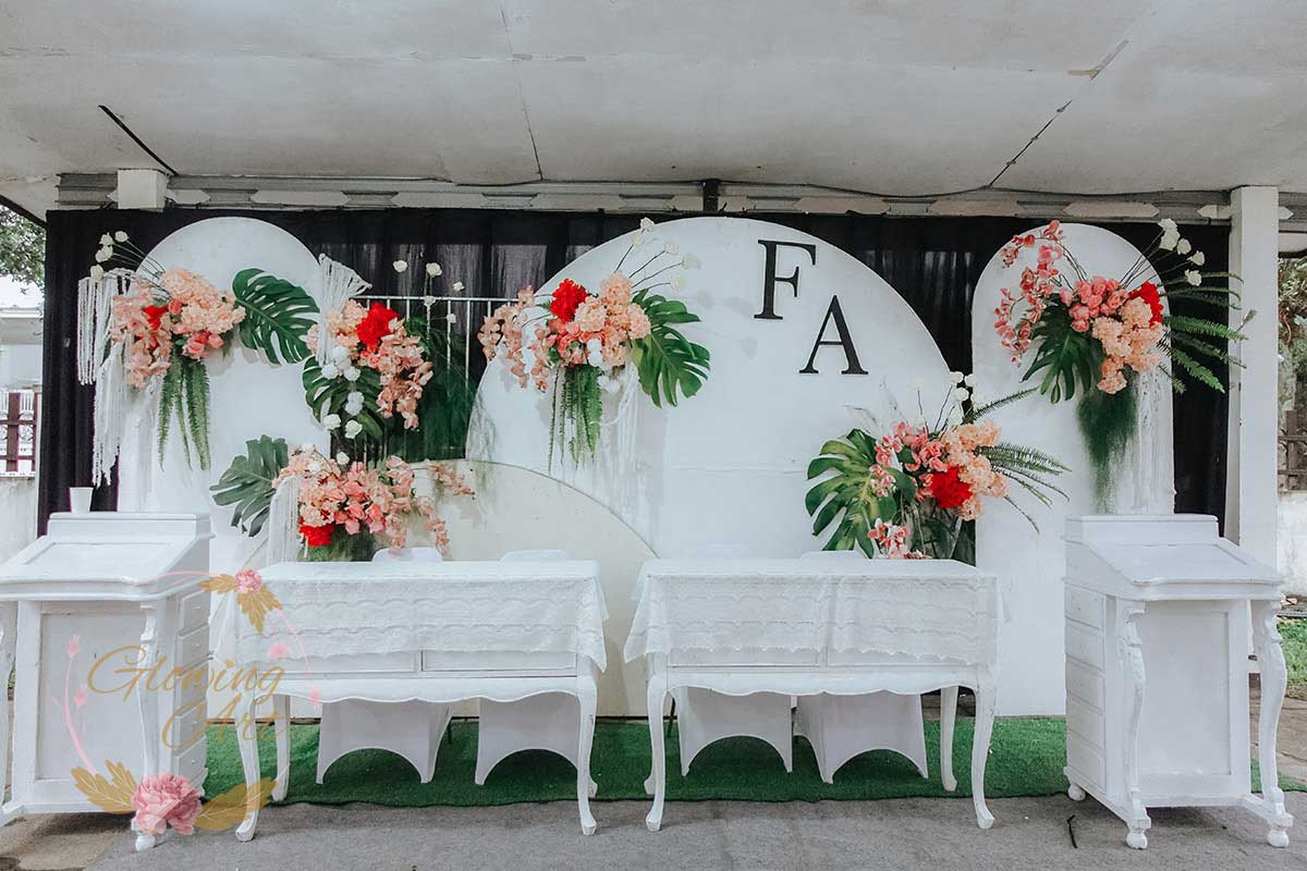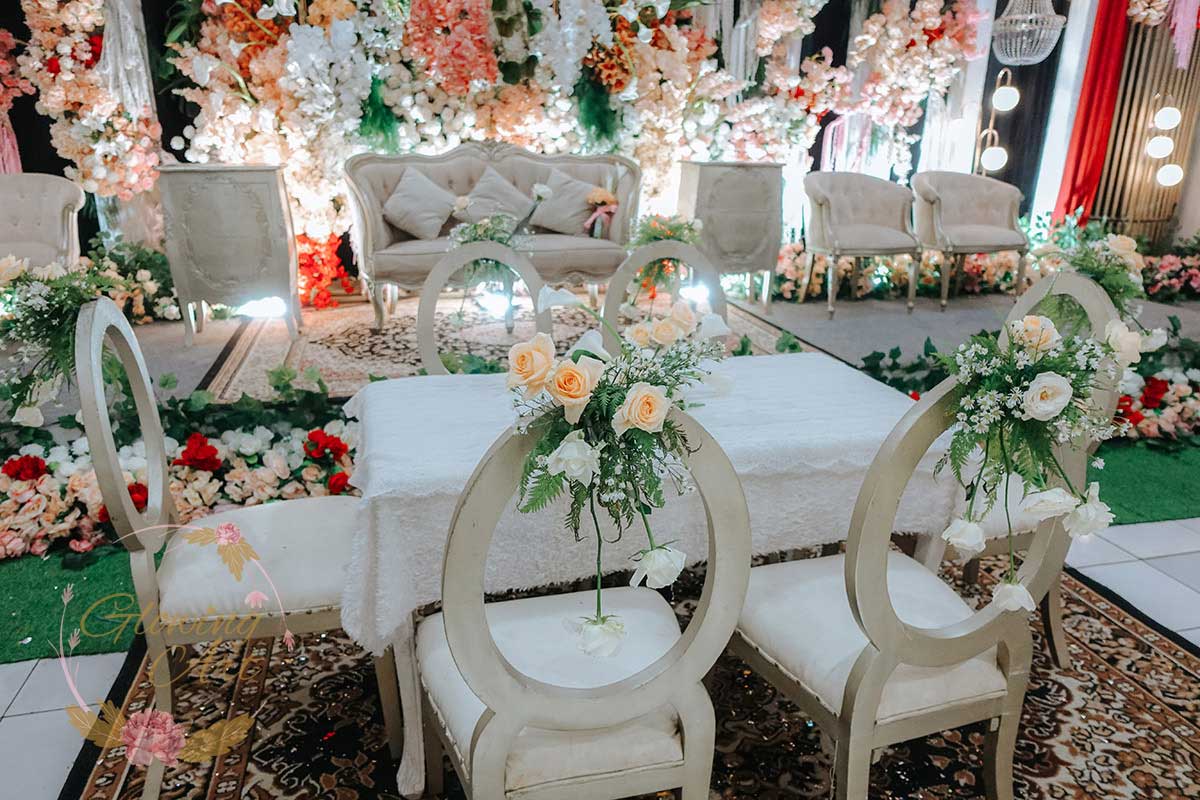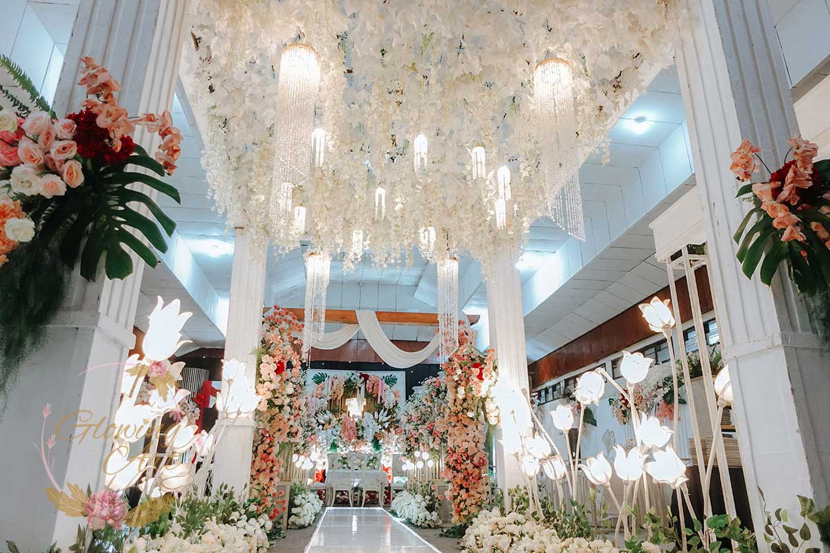 Kak Fierdha &Kak Agung Dekorasi oleh Glowing Art Decoration kali ini dilaksanakan di Wisma Guna Baleendah Kab.Bandung. Pasangan yang melaksanakan Pernikahan adalah Kak Fierdha &Kak Agung. Acara dilaksanakan pada tanggal 06 Juli 2025. Dekorasi kali ini sangat spesial karena dibuat untuk acara yang luar biasa spesial di hari pernikahan antara Kak Fierdha &Kak Agung. Glowing Art Decoration menampilkan karya terbaik untuk pelaminan yang memiliki aksen Modern – Elegan – Simple dengan nuansa warna terdiri dari Putih, dusty pink, touch of maroon dan peach,menjadi dominan dalam acara pernikahan ini. Pada dekorasi acara pernikahan ini, Glowing Art Decoration memasang dekorasi yang terdiri dari area 1 set photobooth, 1 set Photogallery, Gate jalan, Stand flower 6 pcs, standar jalan, set area akad, penerima tamu dengan kotak angpau, area sisi terdapat bunga dan Pelaminan sampai 10 meter. Glowing Art Decoration juga memberikan Welcome sign khusus untuk acara ini.