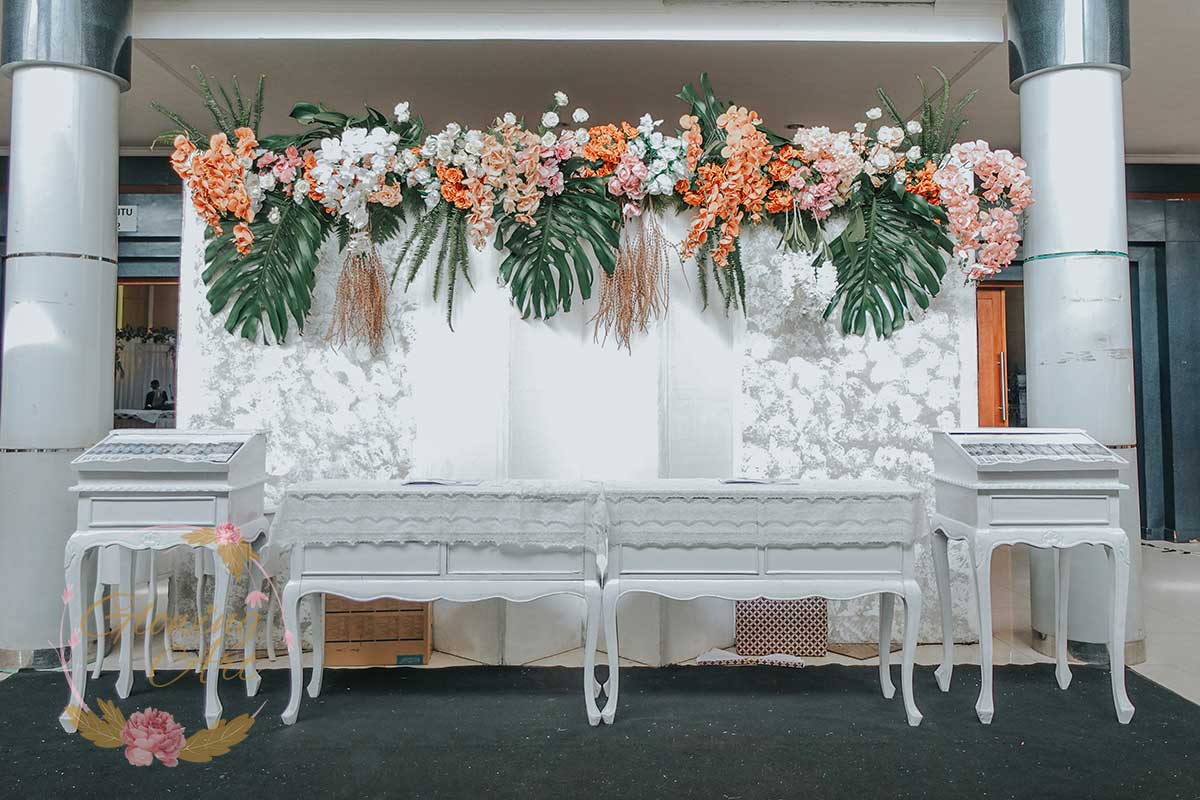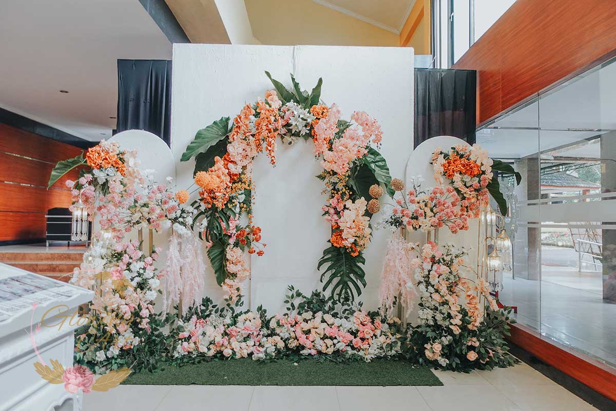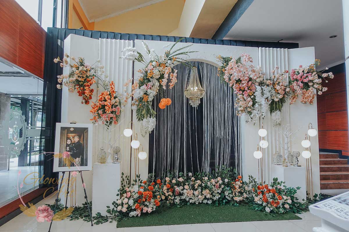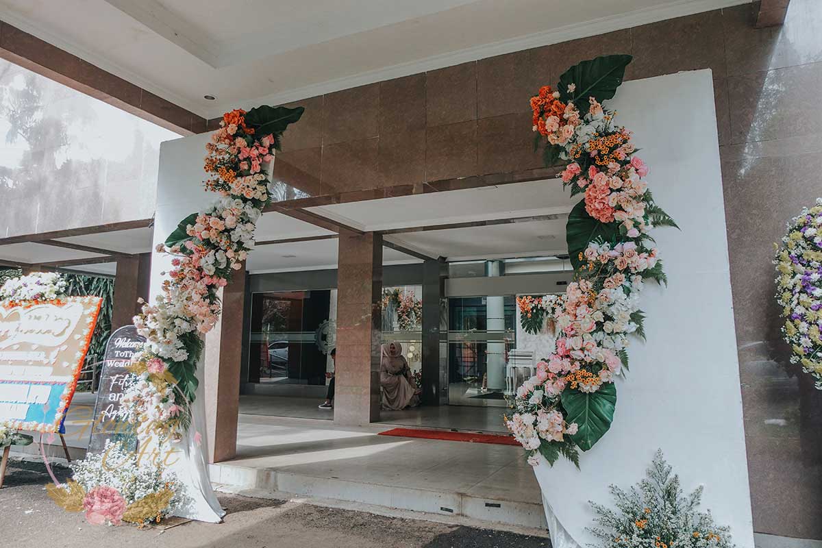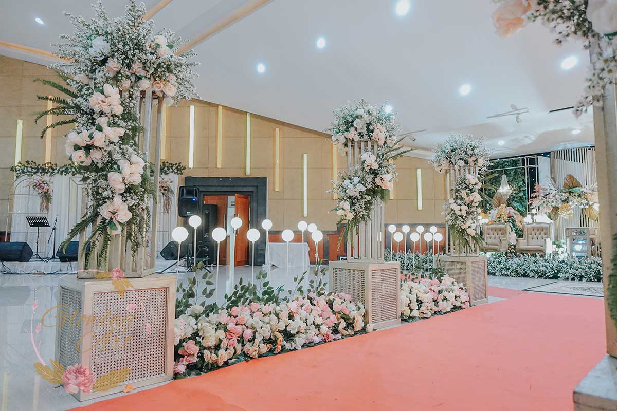 Kak Fitri &Kak Agung Dekorasi oleh Glowing Art Decoration kali ini dilaksanakan di Bale Pancaniti Cimahi. Pasangan yang melaksanakan Pernikahan adalah Kak Fitri &Kak Agung. Acara dilaksanakan pada tanggal 13 April 2025. Dekorasi kali ini sangat spesial karena dibuat untuk acara yang luar biasa spesial di hari pernikahan antara Kak Fitri &Kak Agung. Glowing Art Decoration menampilkan karya terbaik untuk pelaminan yang memiliki aksen Modern – Elegan – Simple dengan nuansa warna terdiri dari Putih, krem, peach menjadi dominan dalam acara pernikahan ini. Pada dekorasi acara pernikahan ini, Glowing Art Decoration memasang dekorasi yang terdiri dari area 2 set photobooth, 1 set Photogallery, Gate jalan, Stand flower 6 pcs, standar jalan dengan pergola, set area akad, penerima tamu dengan kotak angpau, area sisi terdapat bunga dan Pelaminan sampai 12 meter. Glowing Art Decoration juga memberikan Welcome sign khusus untuk acara ini.