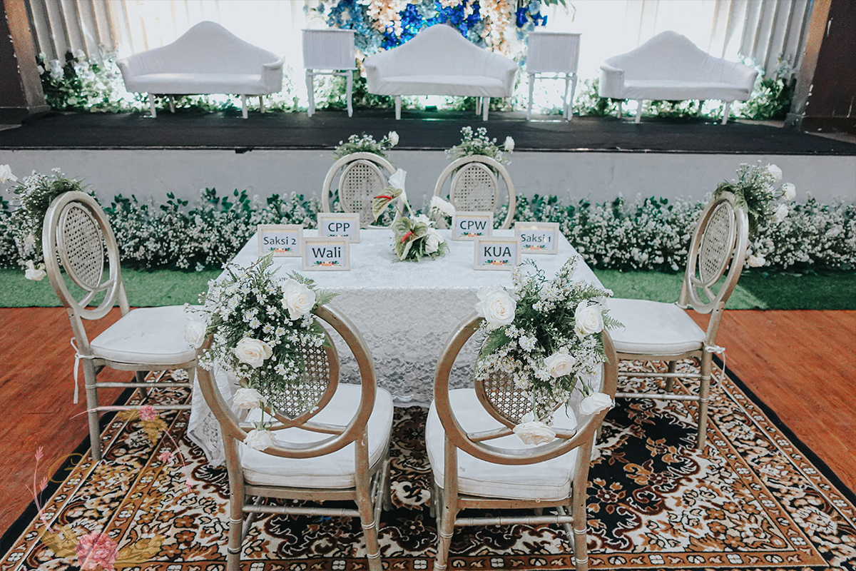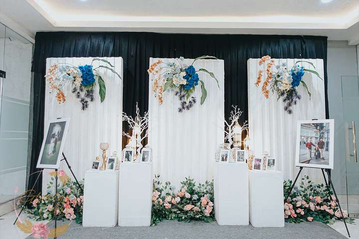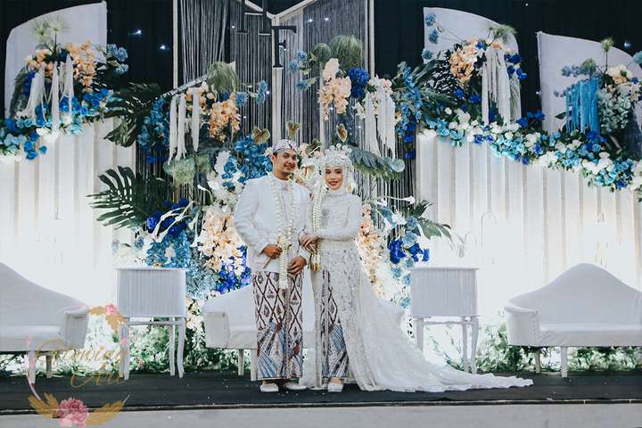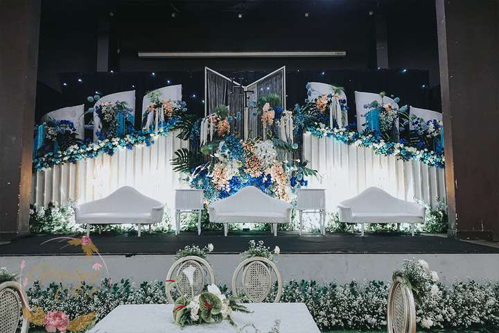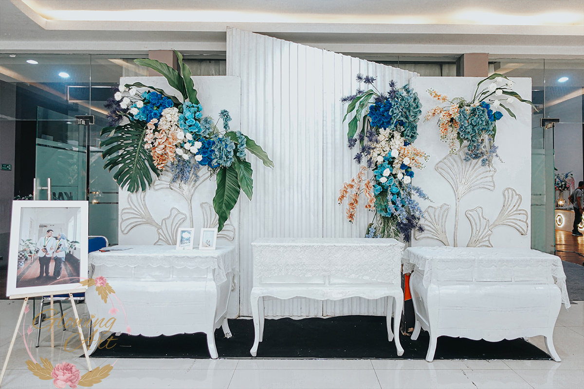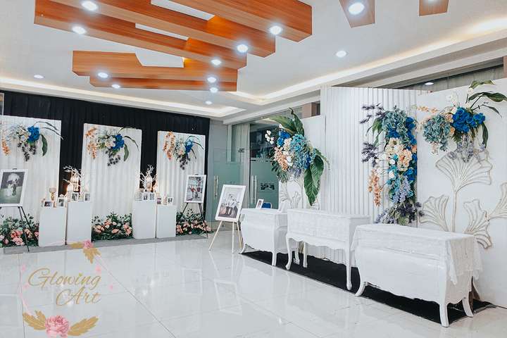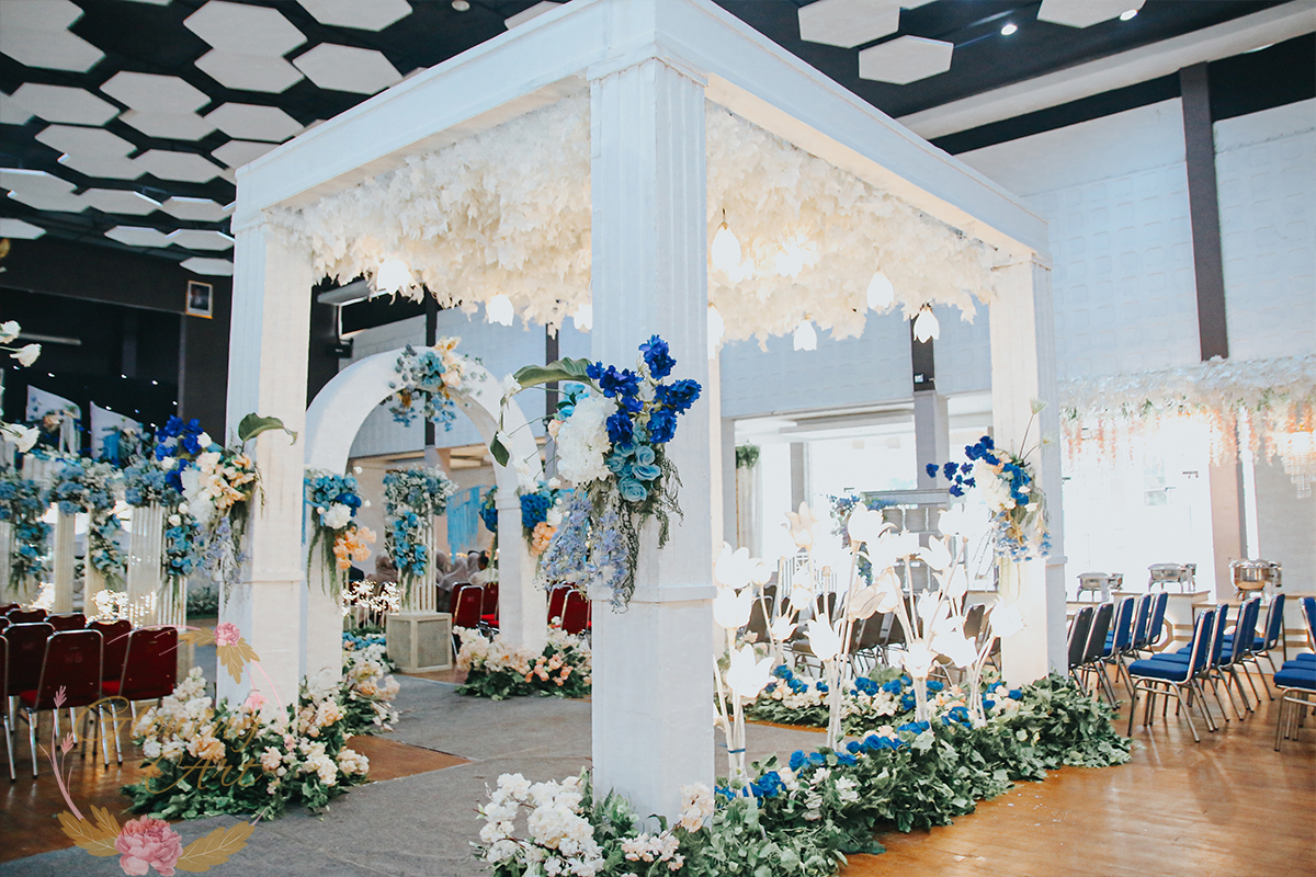Kak Hafsa &Kak Fahmi Dekorasi oleh Glowing Art Decoration kali ini dilaksanakan di PUSDIKLAT PT KAI Bandung. Pasangan yang melaksanakan Pernikahan adalah Kak Hafsa &Kak Fahmi . Acara dilaksanakan pada tanggal 11 Mei 2025. Dekorasi kali ini sangat spesial karena dibuat untuk acara yang luar biasa spesial di hari pernikahan antara Kak Hafsa &Kak Fahmi . Glowing Art Decoration menampilkan karya terbaik untuk pelaminan yang memiliki aksen Modern – Elegan – Simple dengan nuansa warna terdiri dari Putih, dusty Blue, Navy dan Peach menjadi dominan dalam acara pernikahan ini. Pada dekorasi acara pernikahan ini, Glowing Art Decoration memasang dekorasi yang terdiri dari area 2 set photobooth, 1 set Photogallery, Gate jalan, Stand flower 6 pcs, standar jalan dengan pergola, set area akad, penerima tamu dengan kotak angpau, area sisi terdapat bunga dan Pelaminan sampai 12 meter. Glowing Art Decoration juga memberikan Welcome sign khusus untuk acara ini.