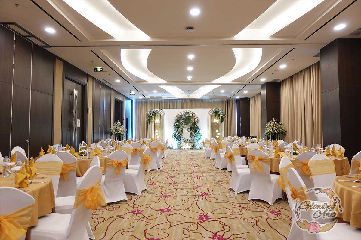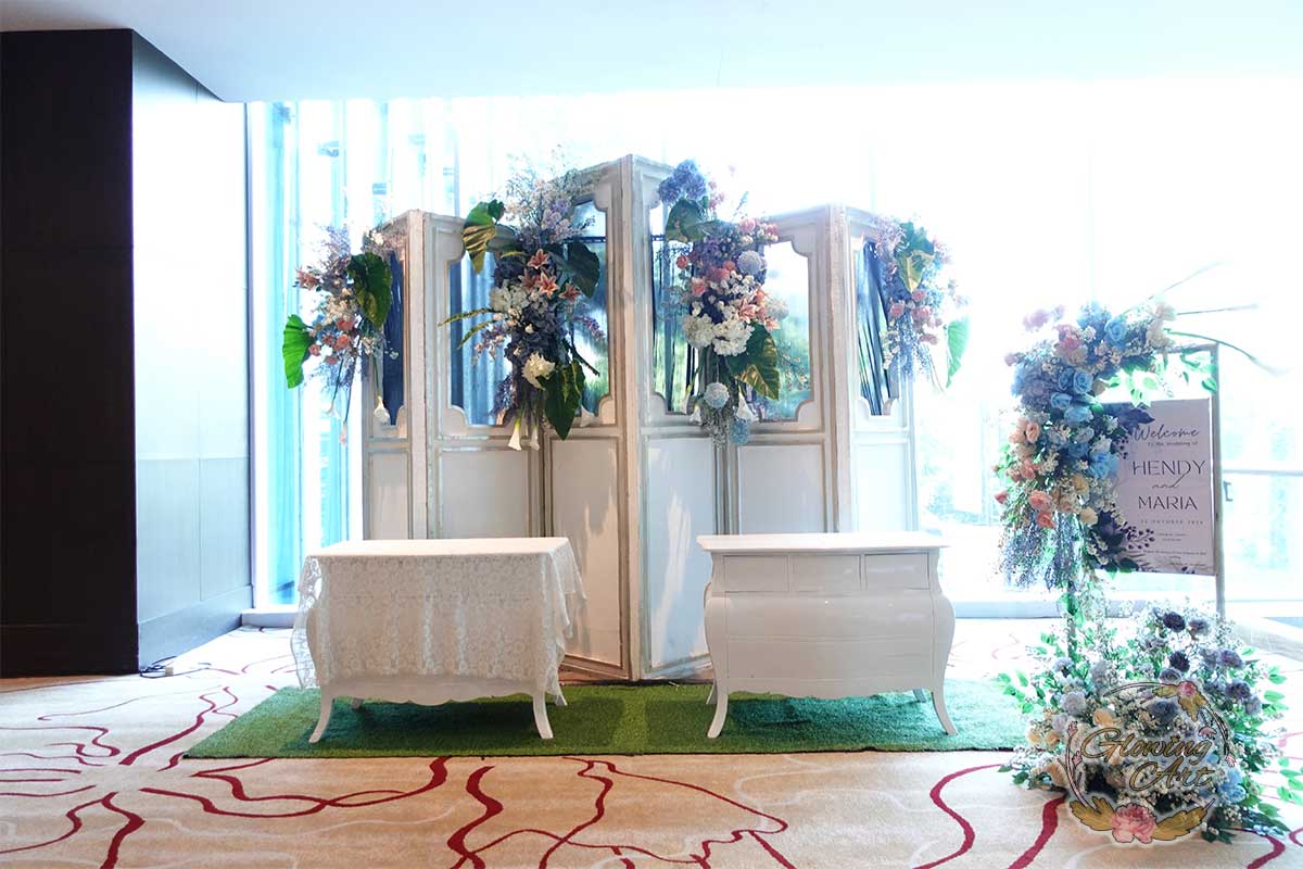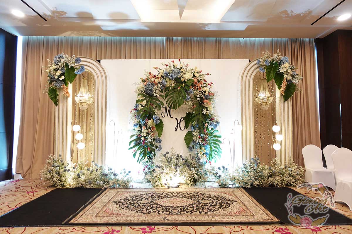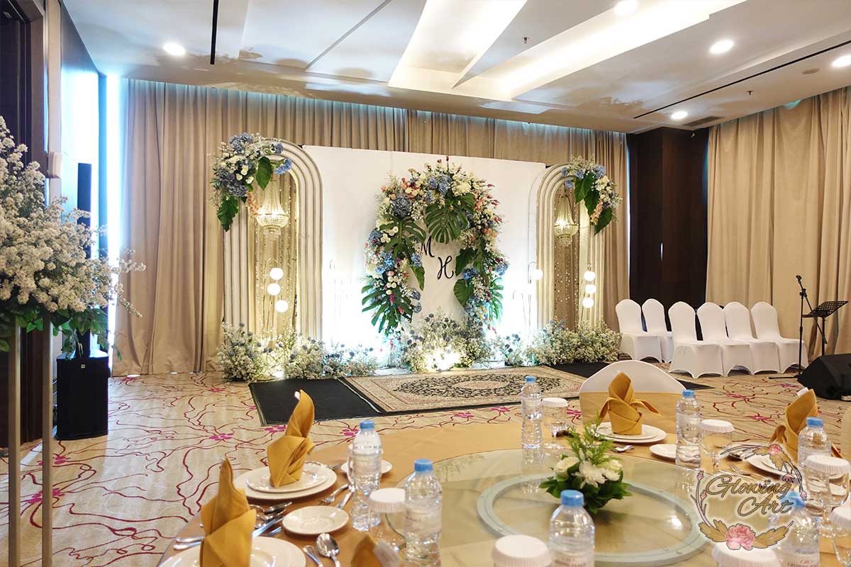Kak Linda &Kak Dede Yusuf Dekorasi oleh Glowing Art Decoration kali ini dilaksanakan di Crown Hotel Bandung. Pasangan yang melaksanakan Pernikahan adalah Kak Hendi &Kak Maria. Acara dilaksanakan pada tanggal 26 oktober 2024. Dekorasi kali ini sangat spesial karena dibuat untuk acara yang luar biasa spesial di hari pernikahan antara Kak Hendi &Kak Maria. Glowing Art Decoration menampilkan karya terbaik untuk pelaminan yang memiliki aksen Modern – Elegan – Simple dengan nuansa warna terdiri dari Putih, Baby Blue, Peach, Navy menjadi dominan dalam acara pernikahan ini. Pada dekorasi acara pernikahan ini, Glowing Art Decoration memasang dekorasi yang terdiri dari area backdrop pelaminan up to 4 meter, meja penerima tamu dan standing flower 6 pcs. Glowing Art Decoration juga memberikan Welcome sign khusus untuk acara ini.