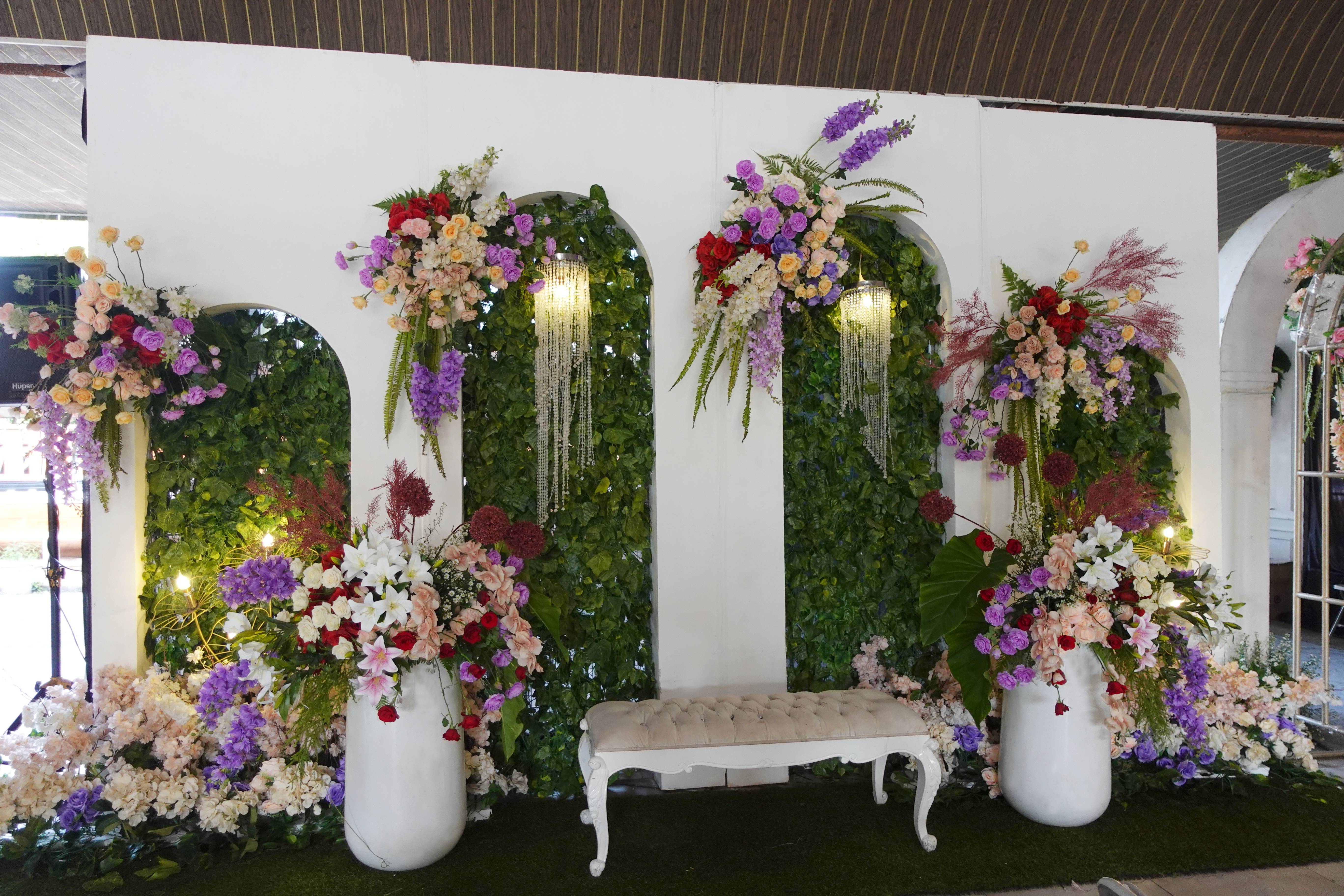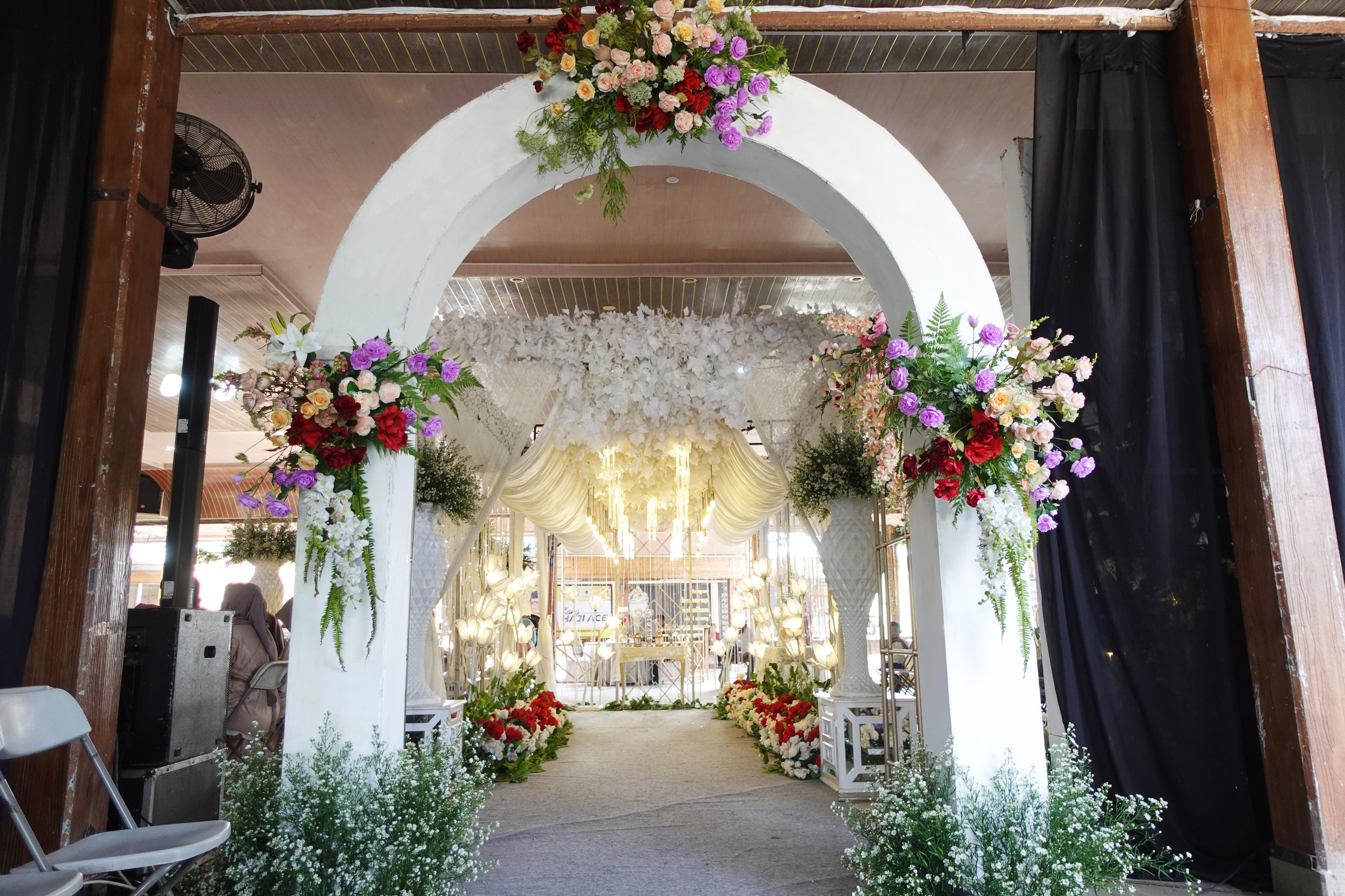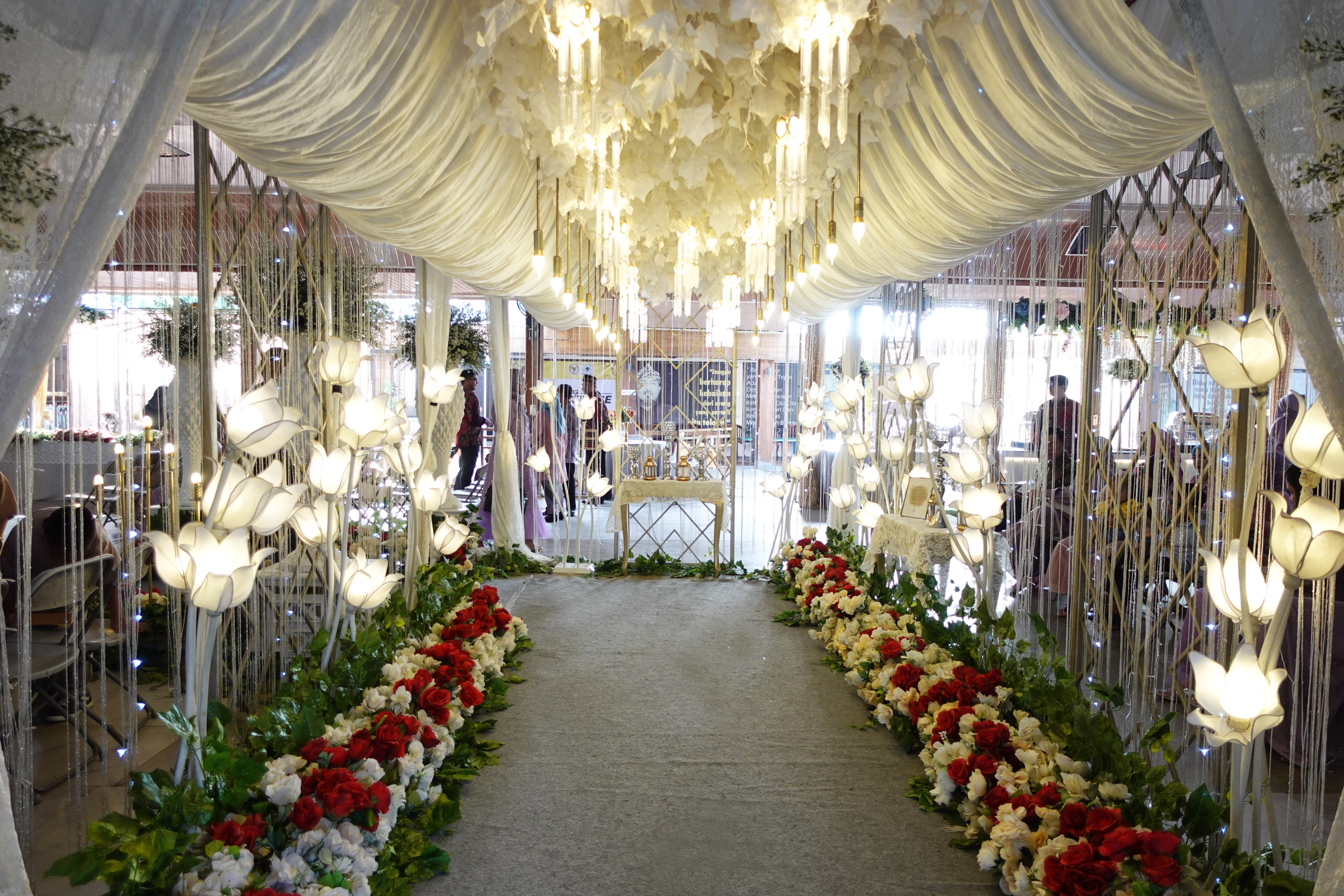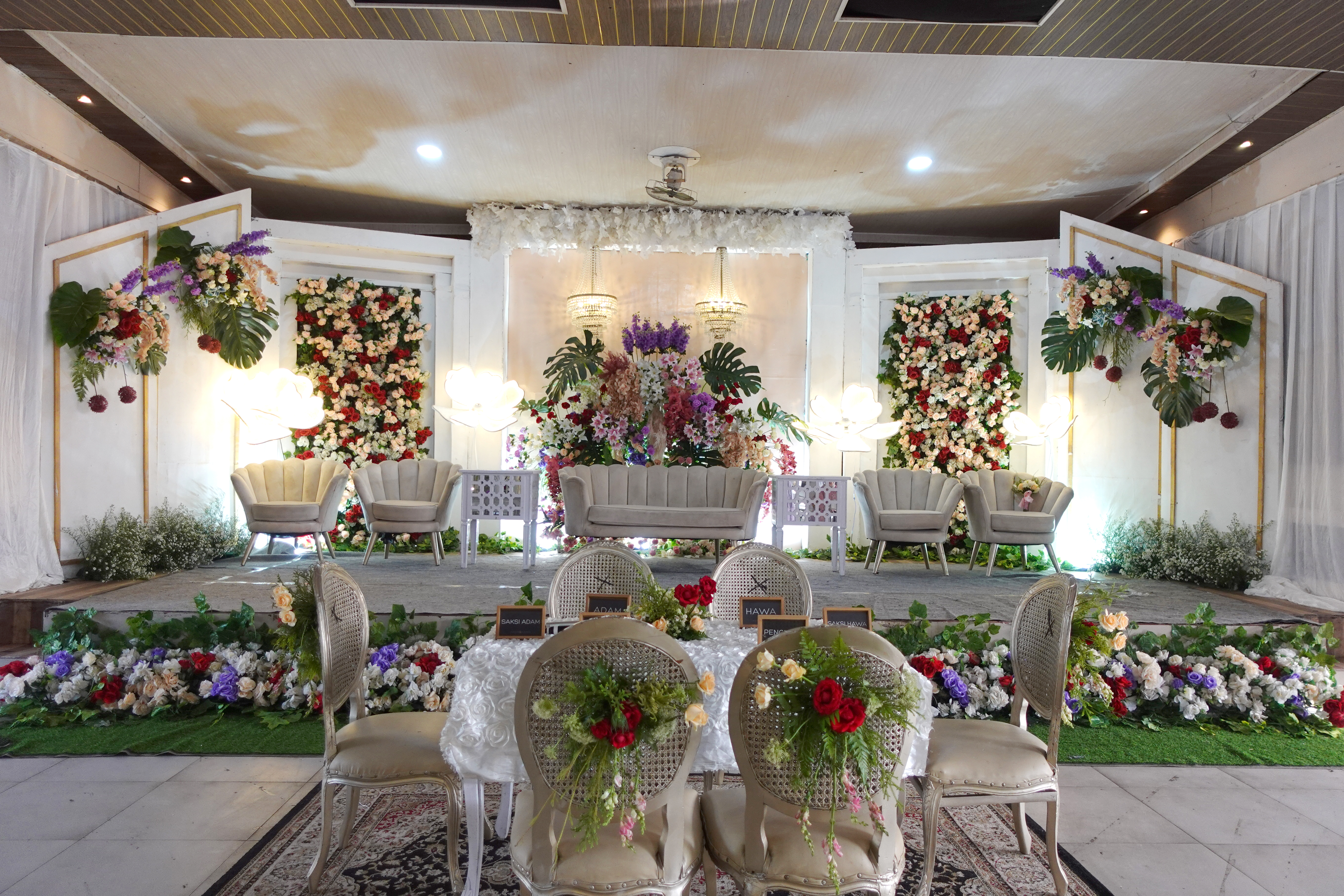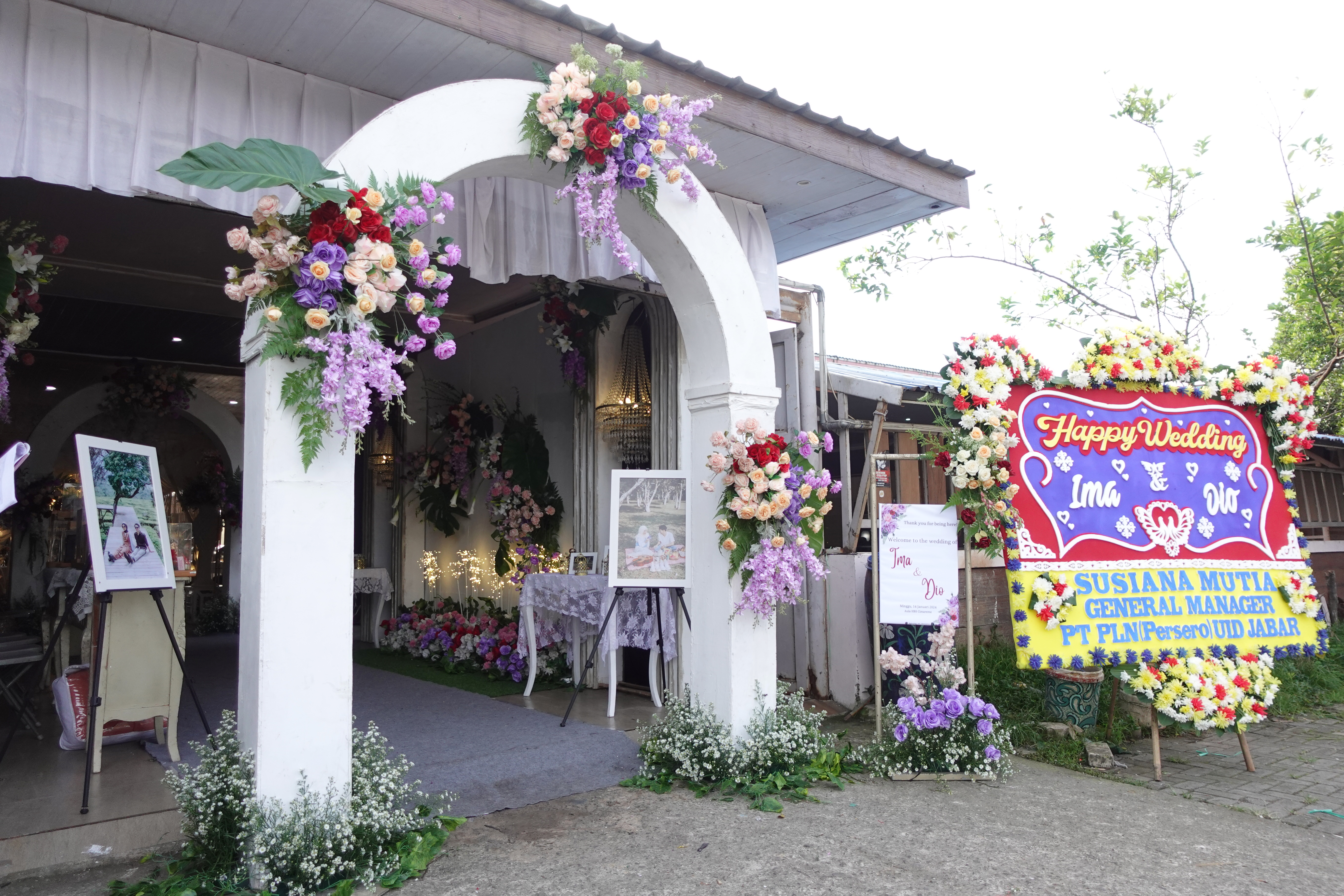 Glowing Art Decoration kali ini dilaksanakan di Istana Muara Bandung. Pasangan yang melaksanakan Pernikahan adalah Kak Ima &kak Dio acara dilaksanakan pada tanggal 14 Januari 2024. Dekorasi kali ini sangat spesial karena dibuat untuk acara yang luar biasa spesial di hari pernikahan antara Kak Ima &kak Dio. Glowing Art Decoration menampilkan karya terbaik untuk pelaminan yang memiliki aksen Modern – Elegan – Simple dengan nuansa warna terdiri dari Putih, Baby pink, Cherry, Maroon, dan Ungu menjadi dominan dalam acara pernikahan ini. Pada dekorasi acara pernikahan ini, Glowing Art Decoration memasang dekorasi yang terdiri dari Gate enntrance, Penerima tamu, 1 set photobooth, 1 set photogallery, pergola 3 x 6m, standing flower 6 pcs dan area pelaminan. Glowing Art Decoration juga memberikan Welcome sign khusus untuk acara ini.
