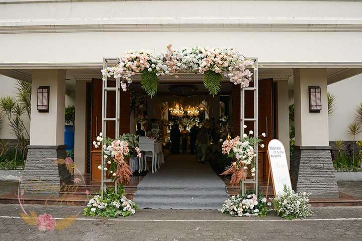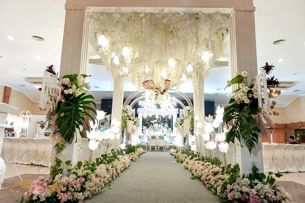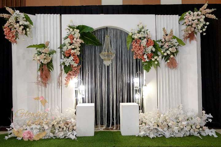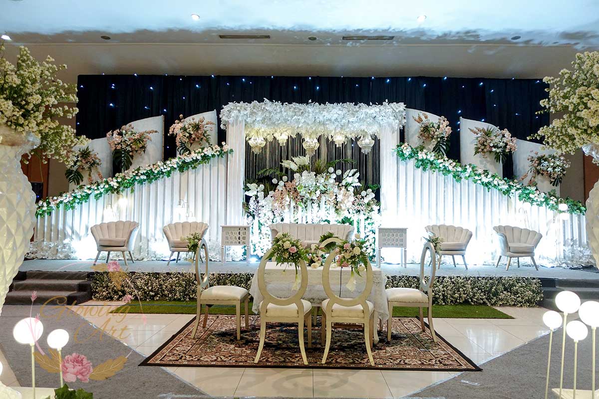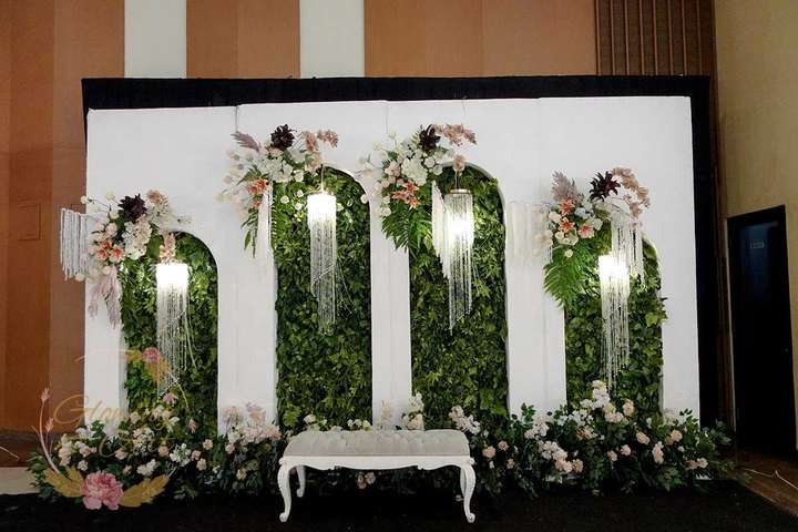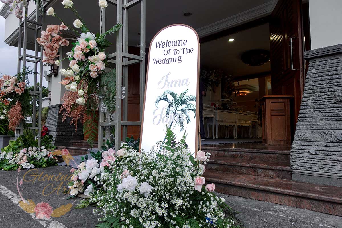 Kak Irma &Kak Fajar Dekorasi oleh Glowing Art Decoration kali ini dilaksanakan di Istana Muara Bandung. Pasangan yang melaksanakan Pernikahan adalah Kak Irma &Kak Fajar. Acara dilaksanakan pada tanggal 02 Februari 2025. Dekorasi kali ini sangat spesial karena dibuat untuk acara yang luar biasa spesial di hari pernikahan antara Kak Irma &Kak Fajar. Glowing Art Decoration menampilkan karya terbaik untuk pelaminan yang memiliki aksen Modern – Elegan – Simple dengan nuansa warna terdiri dari Putih, hijau dan peach menjadi dominan dalam acara pernikahan ini. Pada dekorasi acara pernikahan ini, Glowing Art Decoration memasang dekorasi yang terdiri dari area 2 set photobooth, 1 set Photogallery, Gate lampu jalan, Stand flower 6 pcs, standar jalan dengan pergola, set area akad, penerima tamu dengan kotak angpau, area sisi terdapat bunga dan Pelaminan sampai 12 meter. Glowing Art Decoration juga memberikan Welcome sign khusus untuk acara ini.