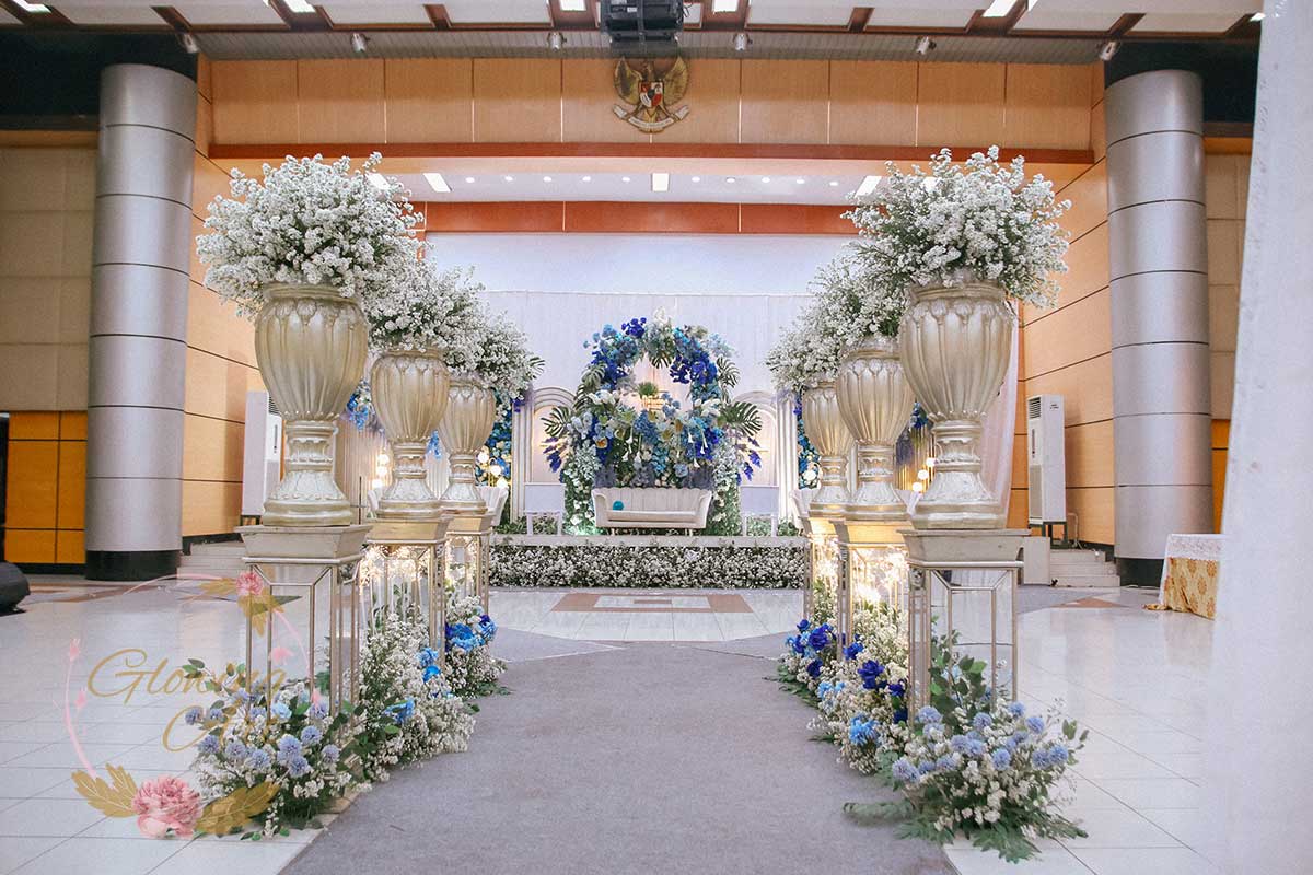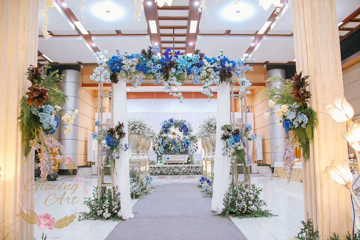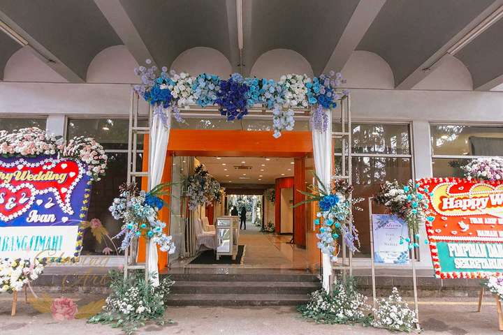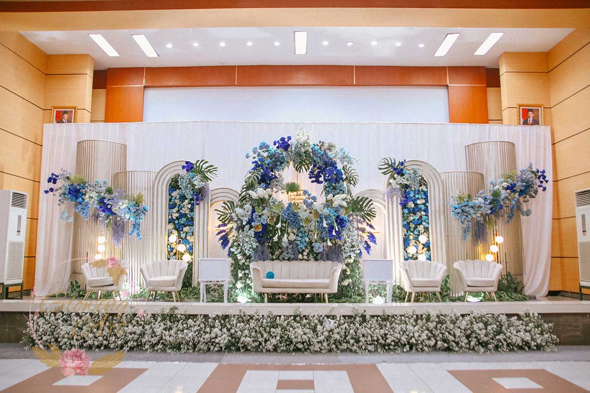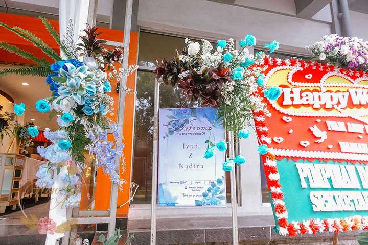 Kak Ivan &Kak Nadiah Dekorasi oleh Glowing Art Decoration kali ini dilaksanakan di GD Tekmira Bandung. Pasangan yang melaksanakan Pernikahan adalah Kak Ivan &Kak Nadiah. Acara dilaksanakan pada tanggal 26 April 2025. Dekorasi kali ini sangat spesial karena dibuat untuk acara yang luar biasa spesial di hari pernikahan antara Kak Ivan &Kak Nadiah. Glowing Art Decoration menampilkan karya terbaik untuk pelaminan yang memiliki aksen Modern – Elegan – Simple dengan nuansa warna terdiri dari Putih, navy, dusty blue dan peach menjadi dominan dalam acara pernikahan ini. Pada dekorasi acara pernikahan ini, Glowing Art Decoration memasang dekorasi yang terdiri dari area photobooth, 1 set Photogallery, Gate jalan, Stand flower 6 pcs, standar jalan, set area akad, penerima tamu dengan kotak angpau, area sisi terdapat bunga dan Pelaminan sampai 10 meter. Glowing Art Decoration juga memberikan Welcome sign khusus untuk acara ini.