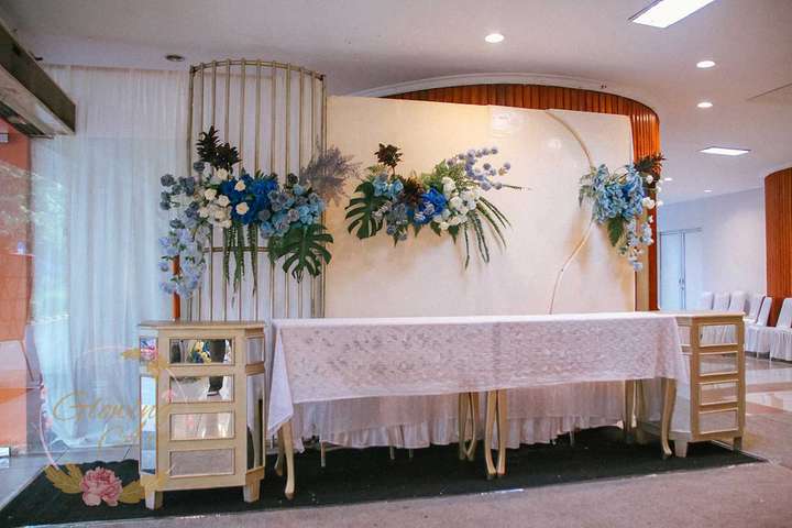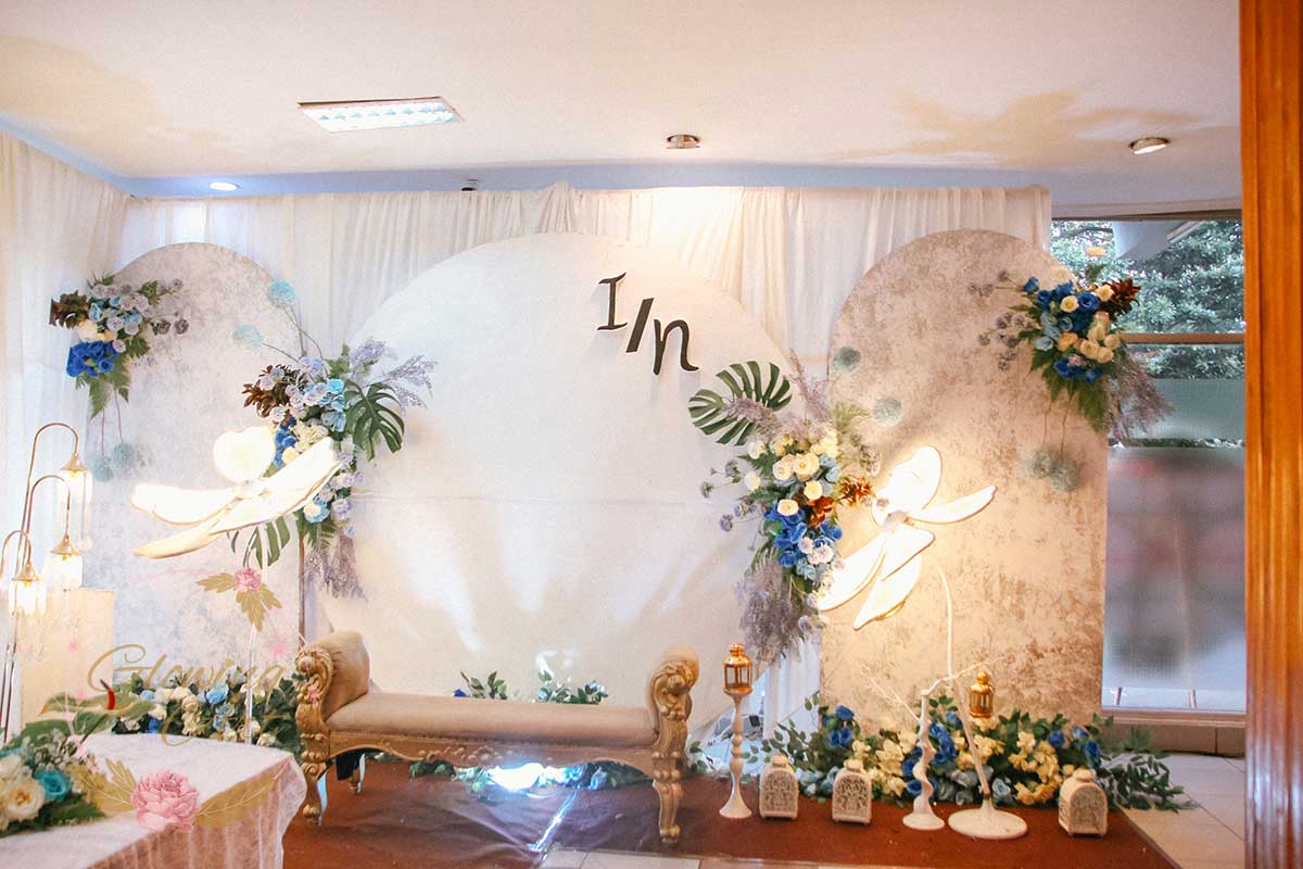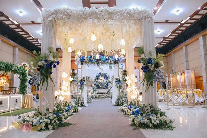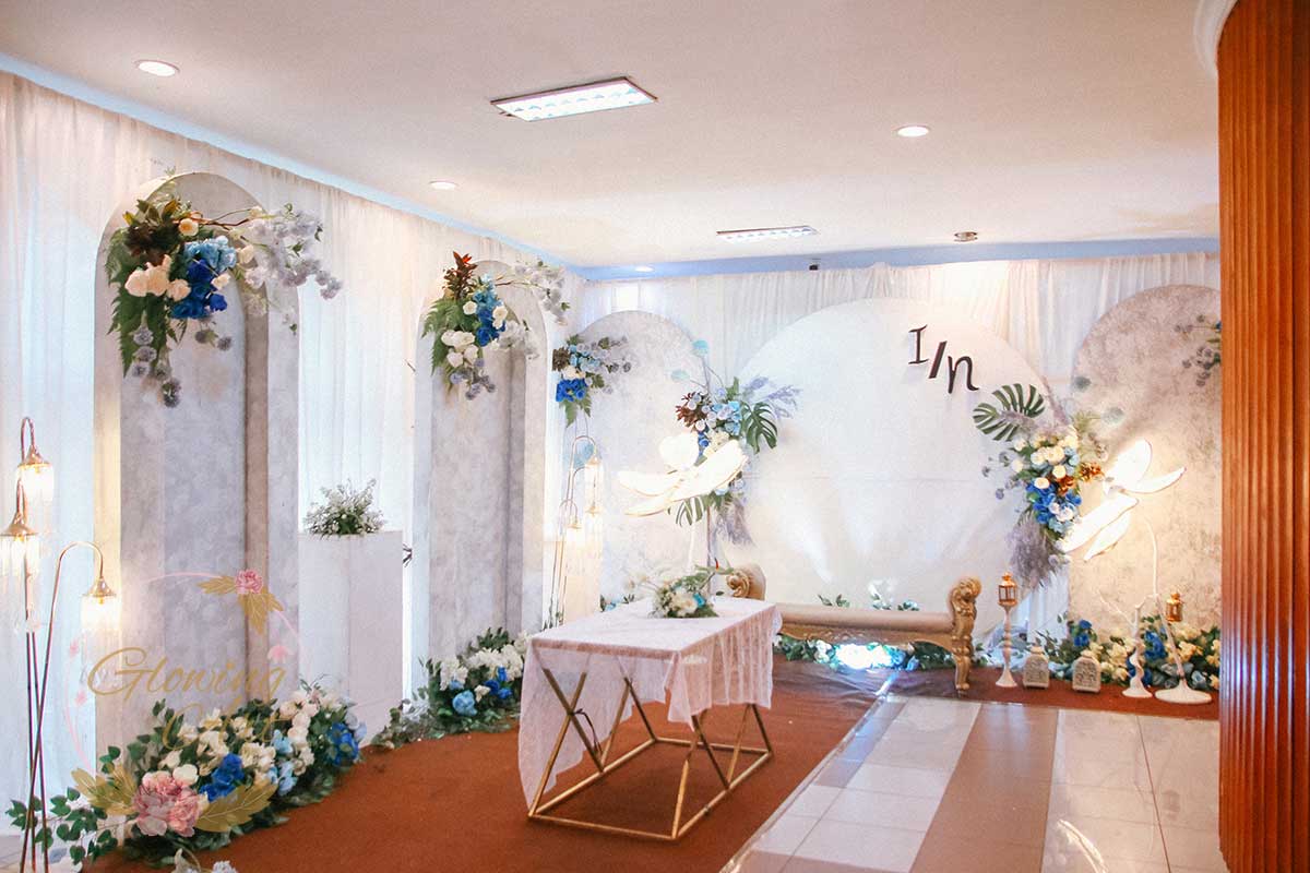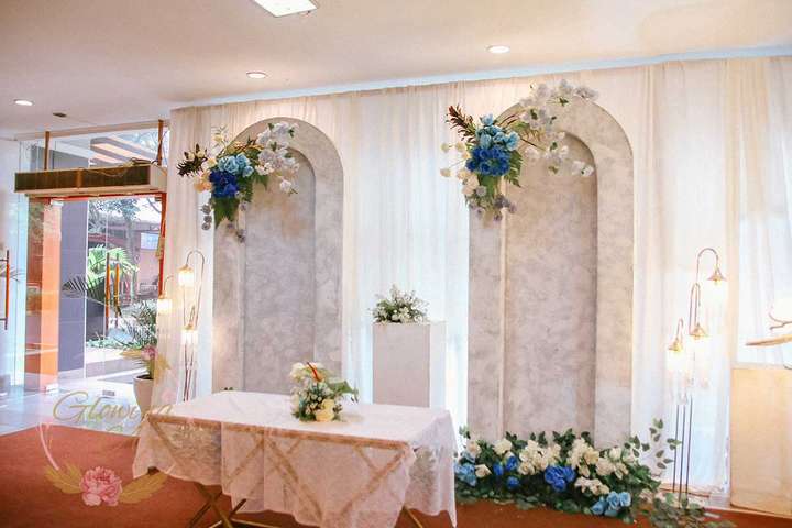 Kak Ivan &Kak Nadiah Dekorasi oleh Glowing Art Decoration kali ini dilaksanakan di GD Tekmira Bandung. Pasangan yang melaksanakan Pernikahan adalah Kak Ivan &Kak Nadiah. Acara dilaksanakan pada tanggal 26 April 2025. Dekorasi kali ini sangat spesial karena dibuat untuk acara yang luar biasa spesial di hari pernikahan antara Kak Ivan &Kak Nadiah. Glowing Art Decoration menampilkan karya terbaik untuk pelaminan yang memiliki aksen Modern – Elegan – Simple dengan nuansa warna terdiri dari Putih, navy, dusty blue dan peach menjadi dominan dalam acara pernikahan ini. Pada dekorasi acara pernikahan ini, Glowing Art Decoration memasang dekorasi yang terdiri dari area photobooth, 1 set Photogallery, Gate jalan, Stand flower 6 pcs, standar jalan, set area akad, penerima tamu dengan kotak angpau, area sisi terdapat bunga dan Pelaminan sampai 10 meter. Glowing Art Decoration juga memberikan Welcome sign khusus untuk acara ini.