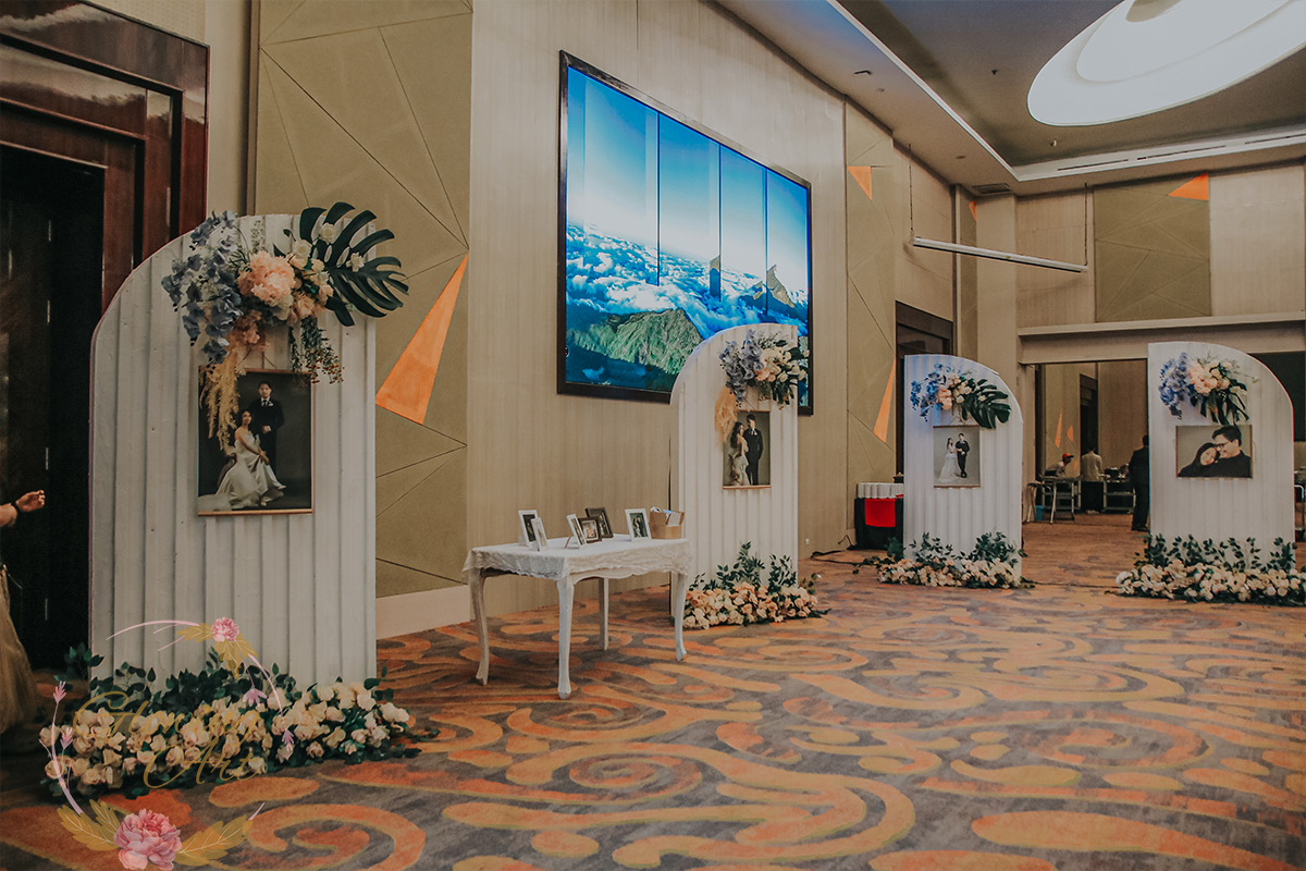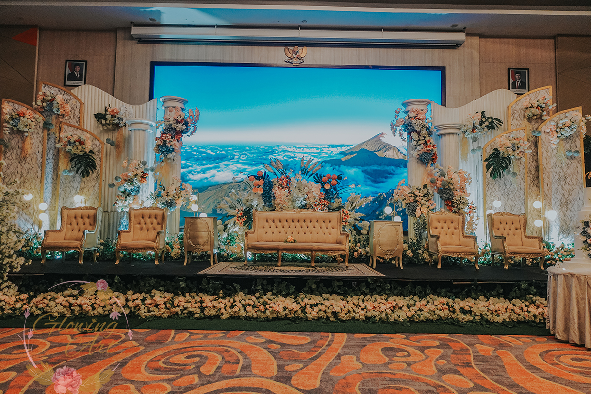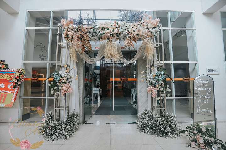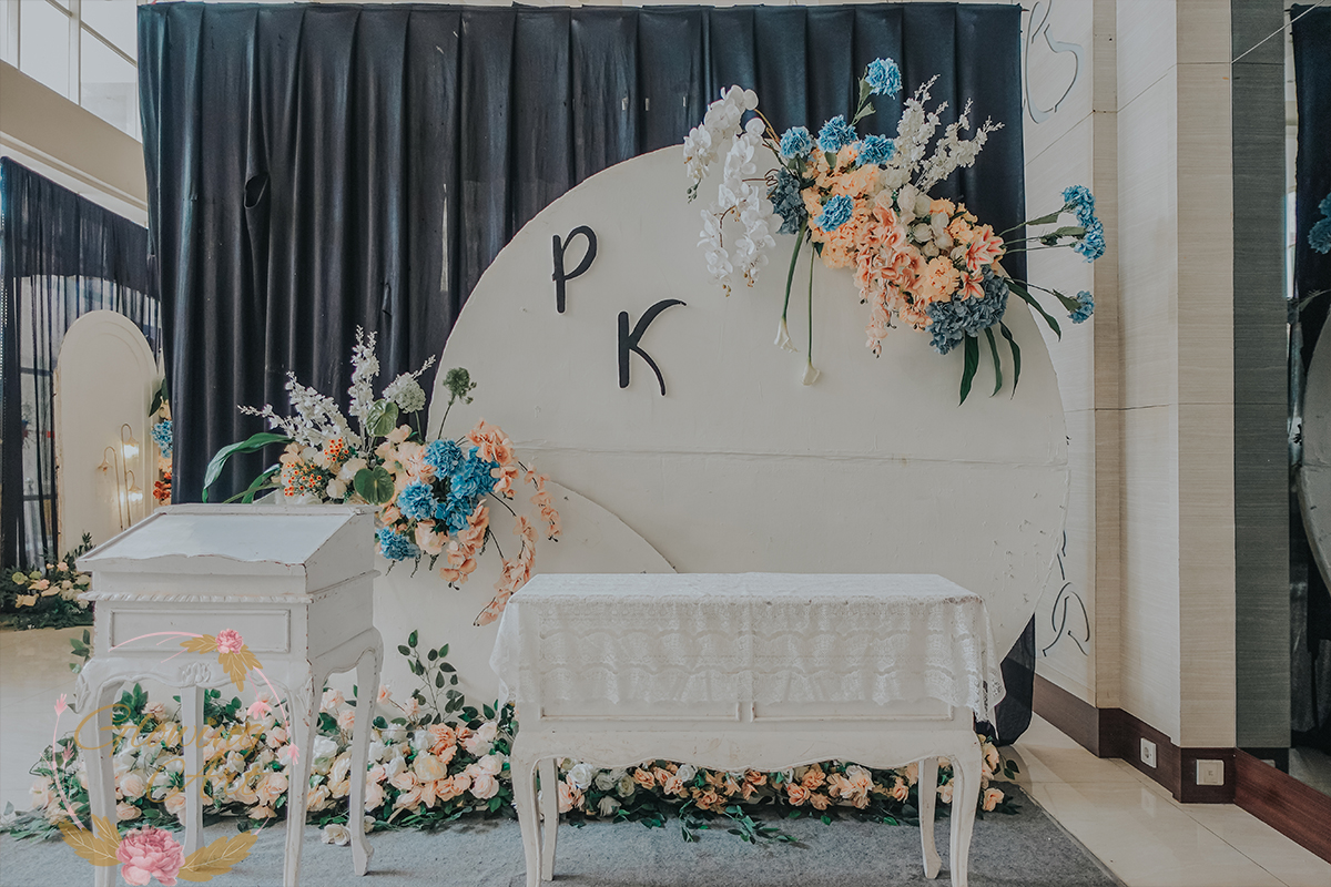 Kak Kevin &Kak Pamela Dekorasi oleh Glowing Art Decoration kali ini dilaksanakan di Hotel Harris ciumbuleuit Bandung. Pasangan yang melaksanakan Pernikahan adalah Kak Kevin &Kak Pamela . Acara dilaksanakan pada tanggal 15 Juni 2025. Dekorasi kali ini sangat spesial karena dibuat untuk acara yang luar biasa spesial di hari pernikahan antara Kak Kevin &Kak Pamela . Glowing Art Decoration menampilkan karya terbaik untuk pelaminan yang memiliki aksen Modern – Elegan – Simple dengan nuansa warna terdiri dari Putih, coksu dan Peach dan dusty blue, menjadi dominan dalam acara pernikahan ini. Pada dekorasi acara pernikahan ini, Glowing Art Decoration memasang dekorasi yang terdiri dari area 2 set photobooth, 1 set Photogallery, Gate jalan, Stand flower 6 pcs, standar jalan, set VIP pengantin, penerima tamu dengan kotak angpau, area sisi terdapat bunga dan Pelaminan sampai 12 meter. Glowing Art Decoration juga memberikan Welcome sign khusus untuk acara ini.