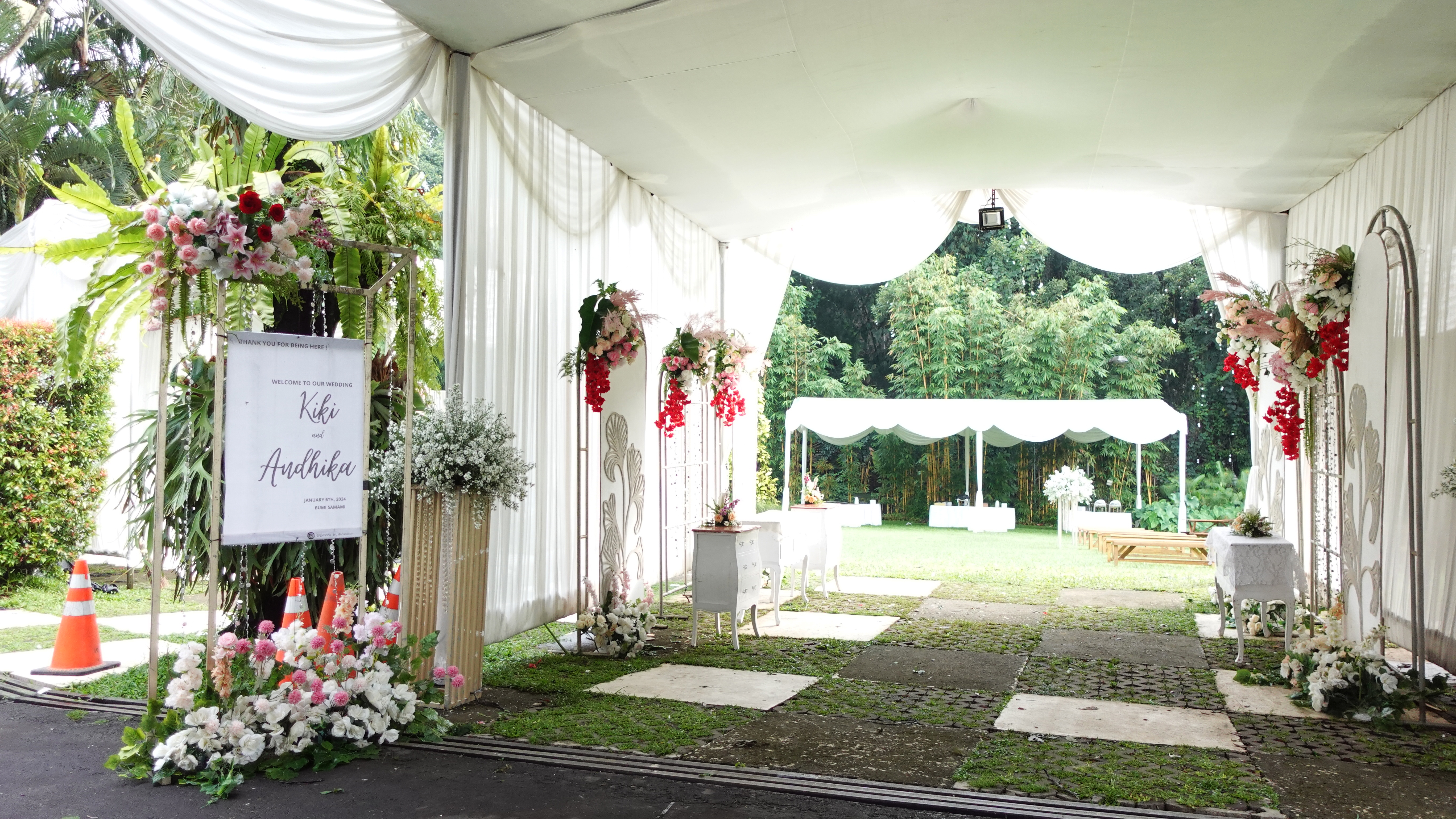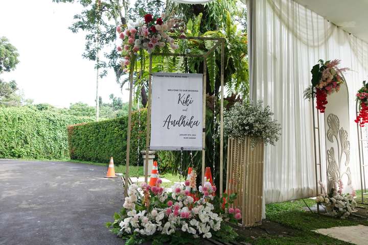 Glowing Art Decoration kali ini dilaksanakan di Bumi Samami Bandung. Pasangan yang melaksanakan Pernikahan adalah Kak Kiki &Kak Andhika . Acara dilaksanakan pada tanggal 06 Januari 2024. Dekorasi kali ini sangat spesial karena dibuat untuk acara yang luar biasa spesial di hari pernikahan antara Kak Kiki &Kak Andhika . Glowing Art Decoration menampilkan karya terbaik untuk pelaminan yang memiliki aksen Modern – Elegan – Simple dengan nuansa warna terdiri dari Putih,maroon, dusty pink, menjadi dominan dalam acara pernikahan ini. Pada dekorasi acara pernikahan ini, Glowing Art Decoration memasang dekorasi yang terdiri dari area 1 set photobooth, 2 set Photogallery, Gate jalan, Stand flower 6 pcs, standar jalan, set VIP pengantin, penerima tamu dengan kotak angpau, area sisi terdapat bunga dan Pelaminan sampai 12 meter. Glowing Art Decoration juga memberikan Welcome sign khusus untuk acara ini.