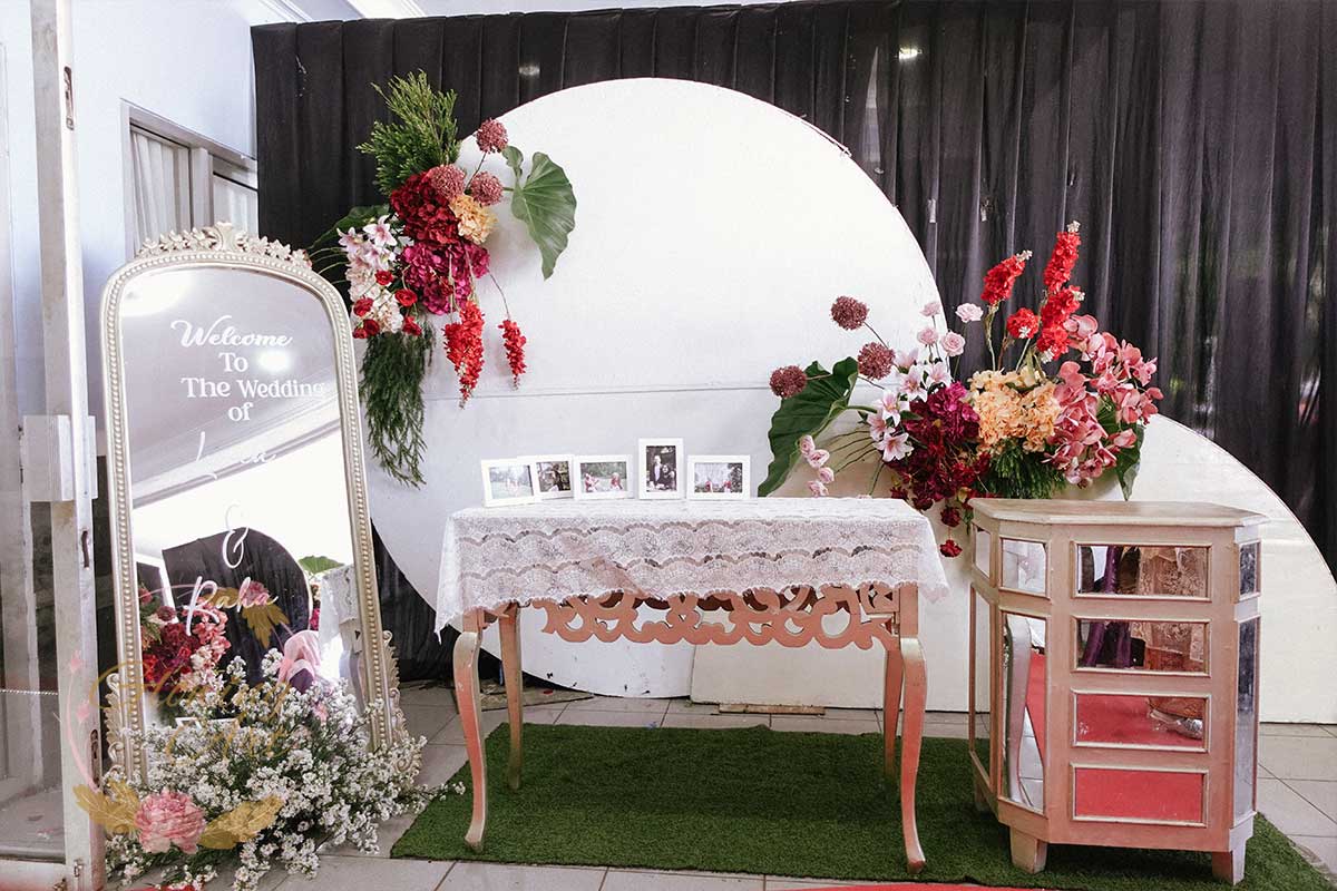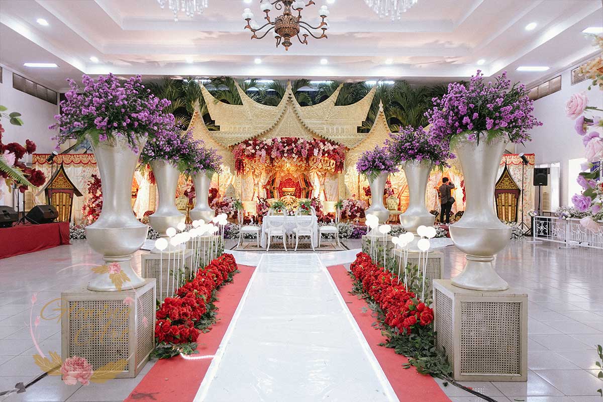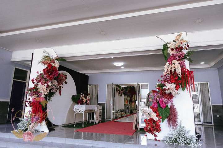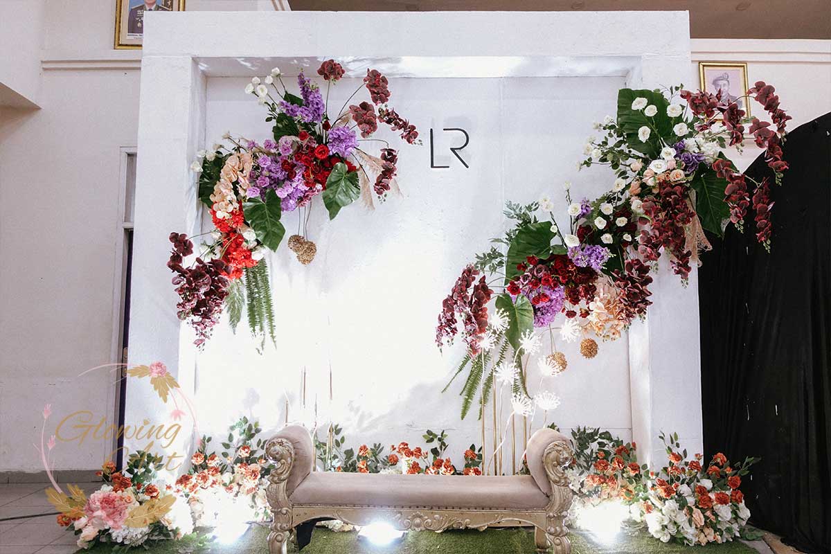 Kak Livia &Kak Raha Dekorasi oleh Glowing Art Decoration kali ini dilaksanakan di GD Wiriadinata Bandung. Pasangan yang melaksanakan Pernikahan adalah Kak Divya &Kak Firlan. Acara dilaksanakan pada tanggal 21 september 2025. Dekorasi kali ini sangat spesial karena dibuat untuk acara yang luar biasa spesial di hari pernikahan antara Kak Divya &Kak Firlan. Glowing Art Decoration menampilkan karya terbaik untuk pelaminan yang memiliki aksen Modern – Elegan – Simple dengan nuansa warna terdiri dari Putih, maroon, dusty pink, menjadi dominan dalam acara pernikahan ini. Pada dekorasi acara pernikahan ini, Glowing Art Decoration memasang dekorasi yang terdiri dari area 2 set photobooth, 1 set Photogallery, Gate jalan, Stand flower 6 pcs, standar jalan, set VIP pengantin, penerima tamu dengan kotak angpau, area sisi terdapat bunga dan Pelaminan sampai 12 meter. Glowing Art Decoration juga memberikan Welcome sign khusus untuk acara ini.