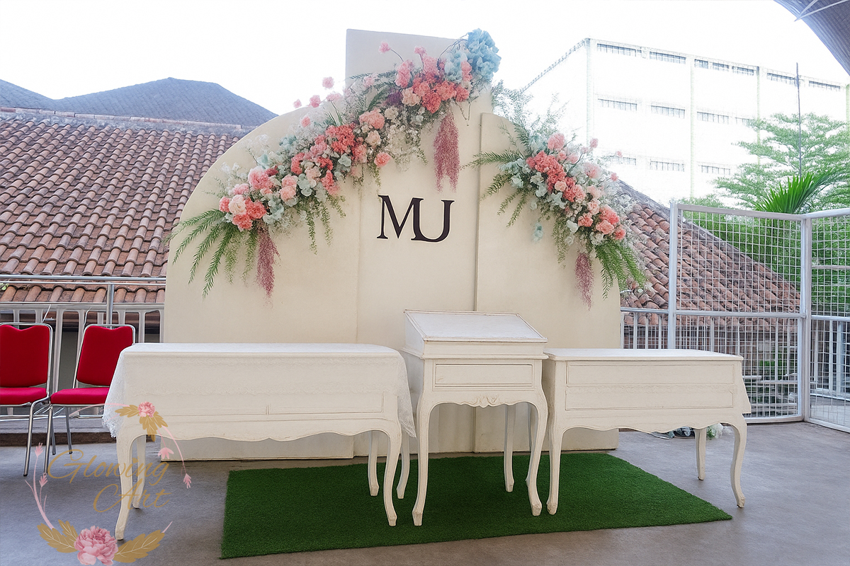 Kak Mabda &Kak Jamal Dekorasi oleh Glowing Art Decoration kali ini dilaksanakan di Wisma Guna Baleendah Kab.Bandung. Pasangan yang melaksanakan Pernikahan adalah Kak Fierdha &Kak Agung. Acara dilaksanakan pada tanggal 02 Agustus 2025. Dekorasi kali ini sangat spesial karena dibuat untuk acara yang luar biasa spesial di hari pernikahan antara Kak Fierdha &Kak Agung. Glowing Art Decoration menampilkan karya terbaik untuk pelaminan yang memiliki aksen Modern – Elegan – Simple dengan nuansa warna terdiri dari Putih, dusty pink, purple dan peach,menjadi dominan dalam acara pernikahan ini. Pada dekorasi acara pernikahan ini, Glowing Art Decoration memasang dekorasi yang terdiri dari area 1 set photobooth, 1 set Photogallery, Gate jalan, Stand flower 6 pcs, standar jalan, set area akad, penerima tamu dengan kotak angpau, area sisi terdapat bunga dan Pelaminan sampai 10 meter. Glowing Art Decoration juga memberikan Welcome sign khusus untuk acara ini.