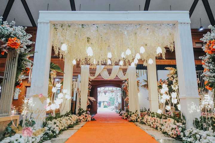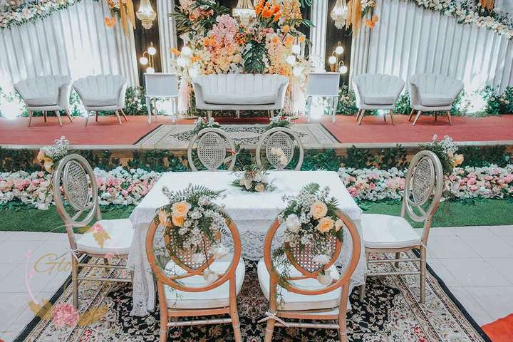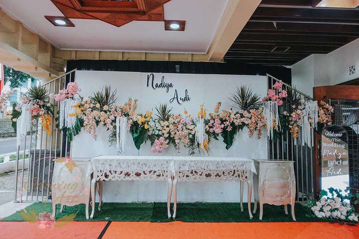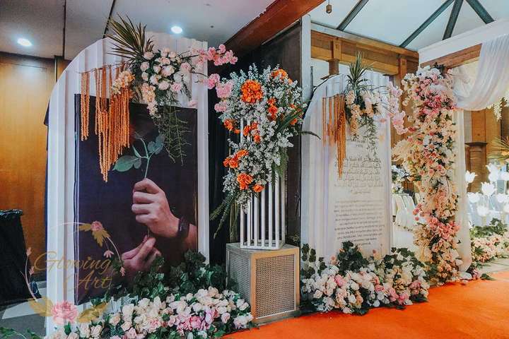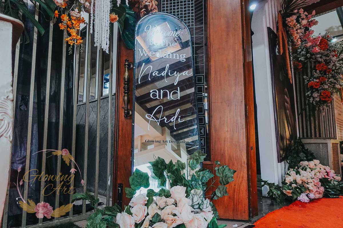 Kak Nadiya &Kak Ardi Dekorasi oleh Glowing Art Decoration kali ini dilaksanakan di GD Ahmad Sanusi UPI Bandung. Pasangan yang melaksanakan Pernikahan adalah Kak Nadiya &Kak Ardi. Acara dilaksanakan pada tanggal 19 April 2025. Dekorasi kali ini sangat spesial karena dibuat untuk acara yang luar biasa spesial di hari pernikahan antara Kak Nadiya &Kak Ardi. Glowing Art Decoration menampilkan karya terbaik untuk pelaminan yang memiliki aksen Modern – Elegan – Simple dengan nuansa warna terdiri dari Putih,orange teracotta, krem, dusty pink peach menjadi dominan dalam acara pernikahan ini. Pada dekorasi acara pernikahan ini, Glowing Art Decoration memasang dekorasi yang terdiri dari area photobooth, 1 set Photogallery, Gate jalan, Stand flower 6 pcs, standar jalan, set area akad, penerima tamu dengan kotak angpau, area sisi terdapat bunga dan Pelaminan sampai 10 meter. Glowing Art Decoration juga memberikan Welcome sign khusus untuk acara ini.