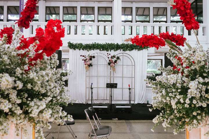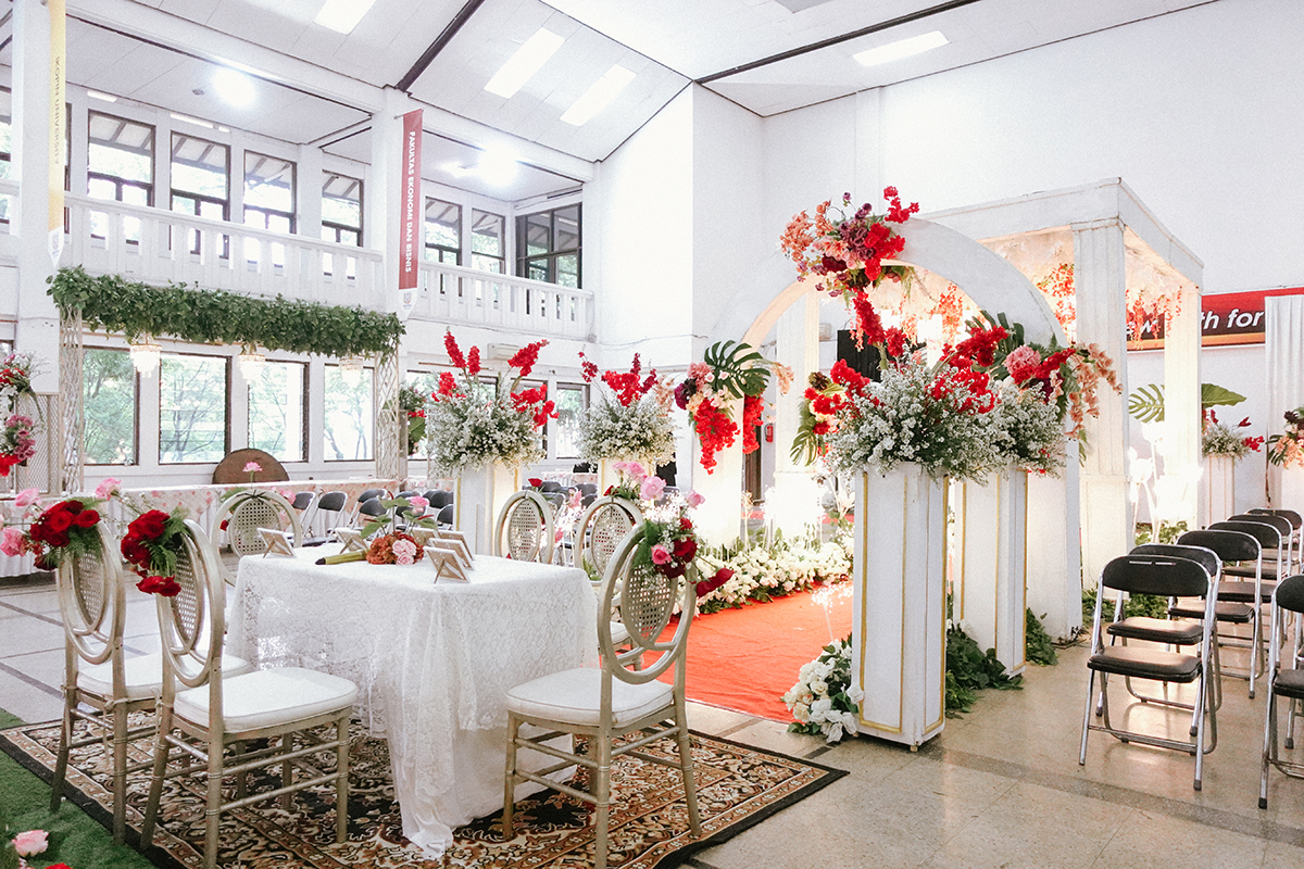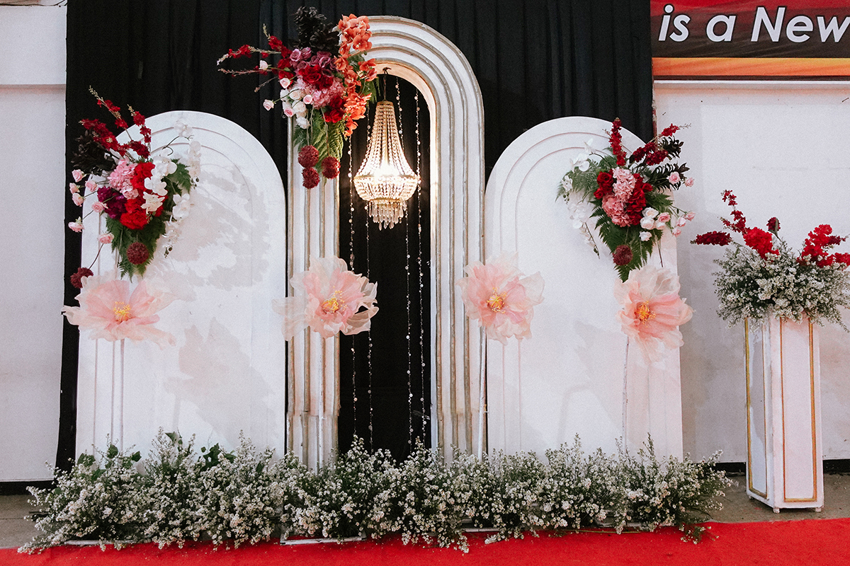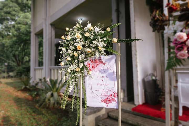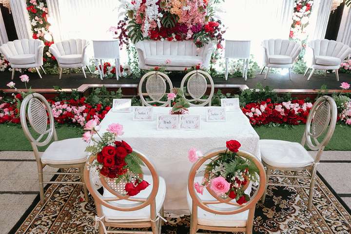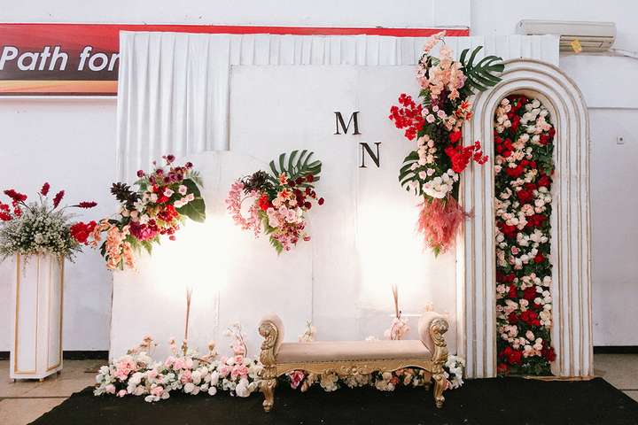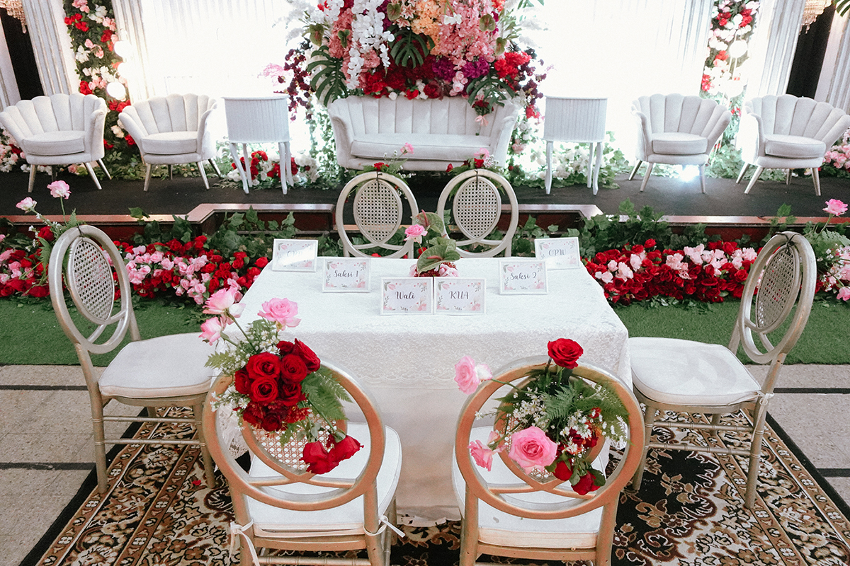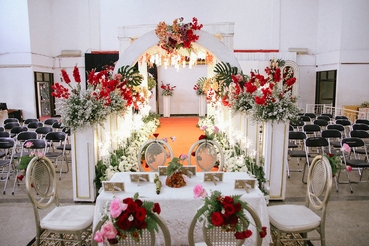 Kak Nadia &Kak Miftah Dekorasi oleh Glowing Art Decoration kali ini dilaksanakan di IKOPIN Bandung. Pasangan yang melaksanakan Pernikahan adalah Kak Nadia &Kak Miftah. Acara dilaksanakan pada tanggal 13 April 2025. Dekorasi kali ini sangat spesial karena dibuat untuk acara yang luar biasa spesial di hari pernikahan antara Kak Nadia &Kak Miftah. Glowing Art Decoration menampilkan karya terbaik untuk pelaminan yang memiliki aksen Modern – Elegan – Simple dengan nuansa warna terdiri dari Putih, merah,maroon, dusty pink dan peach menjadi dominan dalam acara pernikahan ini. Pada dekorasi acara pernikahan ini, Glowing Art Decoration memasang dekorasi yang terdiri dari area photobooth, 1 set Photogallery, Gate jalan, Stand flower 6 pcs, standar jalan, set area akad, penerima tamu dengan kotak angpau, area sisi terdapat bunga dan Pelaminan sampai 10 meter. Glowing Art Decoration juga memberikan Welcome sign khusus untuk acara ini.