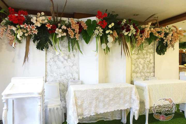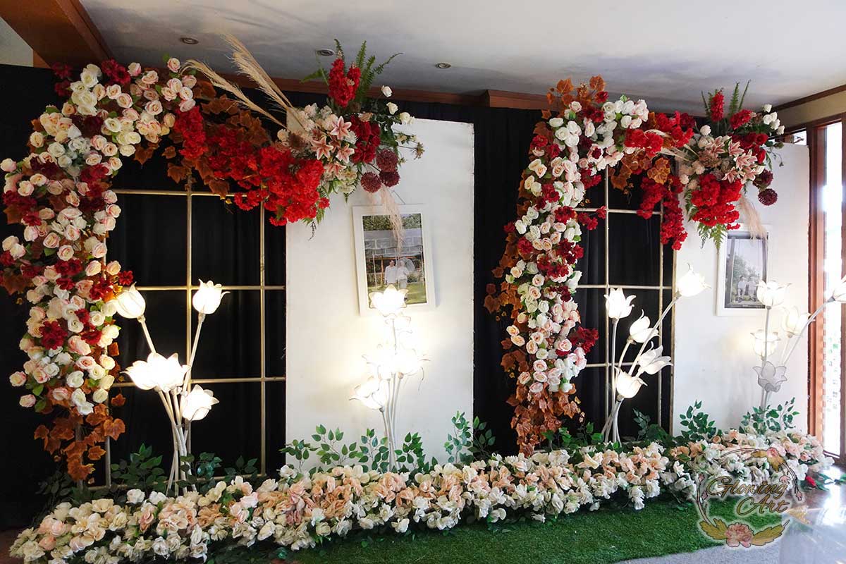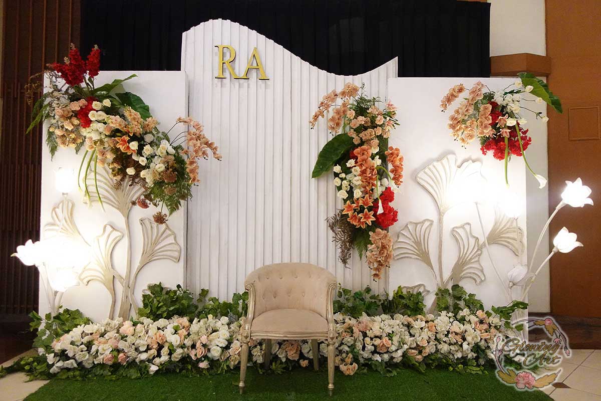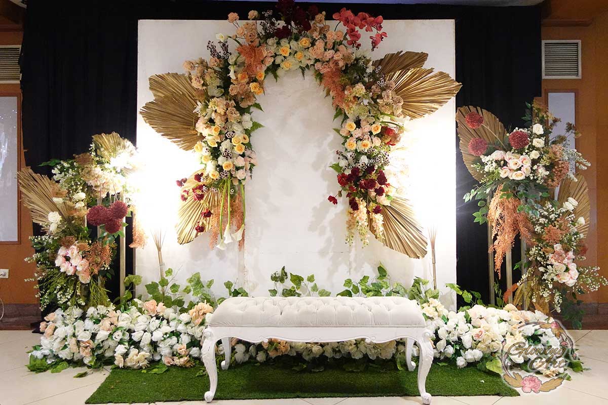 Glowing Art Decoration kali ini dilaksanakan di istana Muara Bandung. Pasangan yang melaksanakan Pernikahan adalah Kak Raihan &Kak Annisa. Acara dilaksanakan pada tanggal 11 Agustus 2024. Dekorasi kali ini sangat spesial karena dibuat untuk acara yang luar biasa spesial di hari pernikahan antara Kak Raihan &Kak Annisa. Glowing Art Decoration menampilkan karya terbaik untuk pelaminan yang memiliki aksen Modern – Elegan – Simple dengan nuansa warna terdiri dari orange,maroon, merah,peach,dan mahogany menjadi dominan dalam acara pernikahan ini. Pada dekorasi acara pernikahan ini, Glowing Art Decoration memasang dekorasi yang terdiri dari area 1 set photobooth, 1 set Photogallery, Gate jalan, Stand flower 6 pcs, standar jalan dengan pergola dan gate Aisle, set area akad, penerima tamu dengan kotak angpau, area sisi terdapat bunga dan Pelaminan sampai 10 meter. Glowing Art Decoration juga memberikan Welcome sign khusus untuk acara ini.