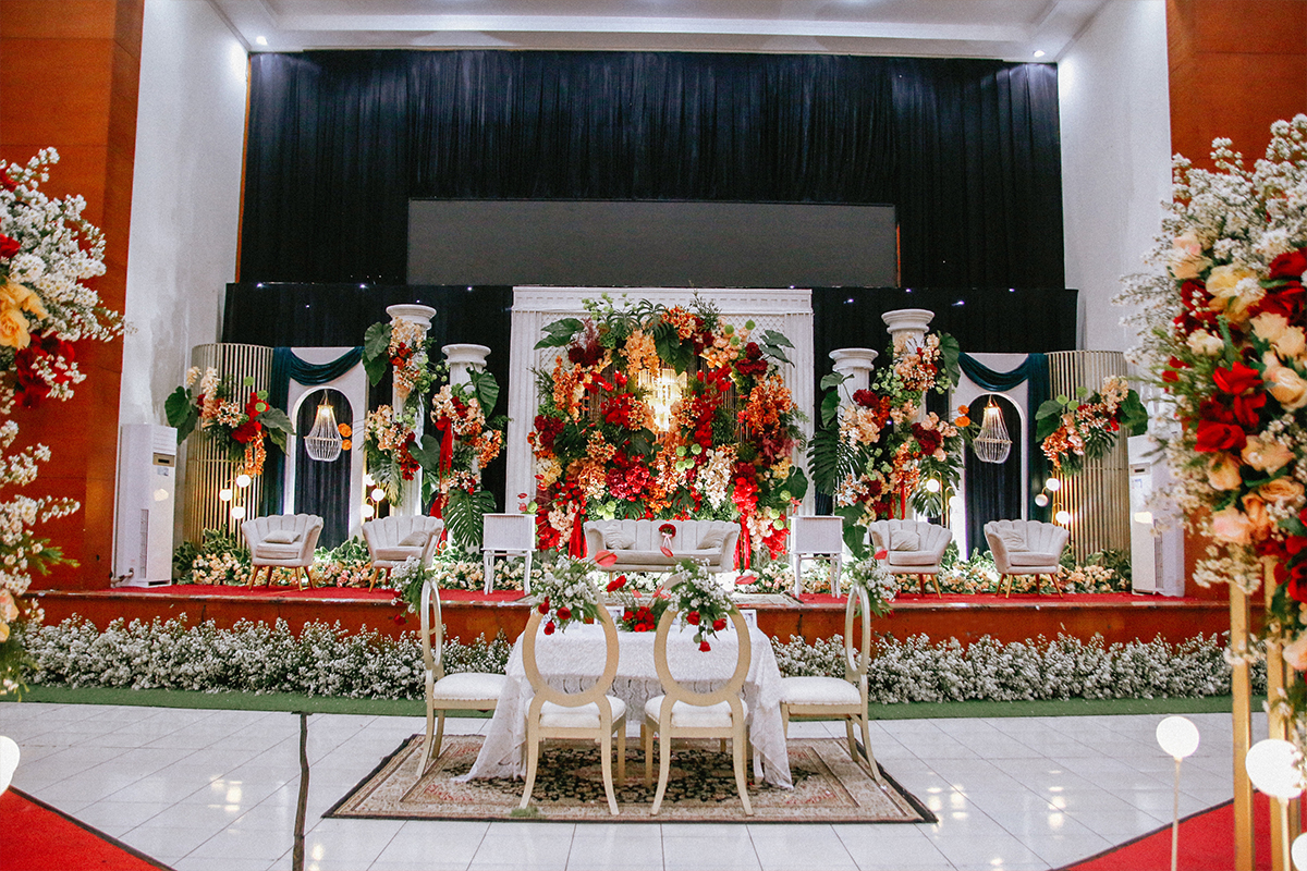 Kak Rella &Kak Ghibran Dekorasi oleh Glowing Art Decoration kali ini dilaksanakan di GD Anwar Musadad UIN Bandung. Pasangan yang melaksanakan Pernikahan adalah Kak Rella &Kak Ghibran. Acara dilaksanakan pada tanggal 13 September 2025. Dekorasi kali ini sangat spesial karena dibuat untuk acara yang luar biasa spesial di hari pernikahan antara Kak Rella &Kak Ghibran. Glowing Art Decoration menampilkan karya terbaik untuk pelaminan yang memiliki aksen Modern – Elegan – Simple dengan nuansa warna terdiri dari Putih,maroon, hijau emerald dan peach menjadi dominan dalam acara pernikahan ini. Pada dekorasi acara pernikahan ini, Glowing Art Decoration memasang dekorasi yang terdiri dari area 2 set photobooth, 2 set Photogallery, Gate jalan, Stand flower 6 pcs, standar jalan dengan melamin floor dan glass floor, set area akad, penerima tamu dengan kotak angpau, area sisi terdapat bunga dan Pelaminan sampai 12 meter. Glowing Art Decoration juga memberikan Welcome sign khusus untuk acara ini.