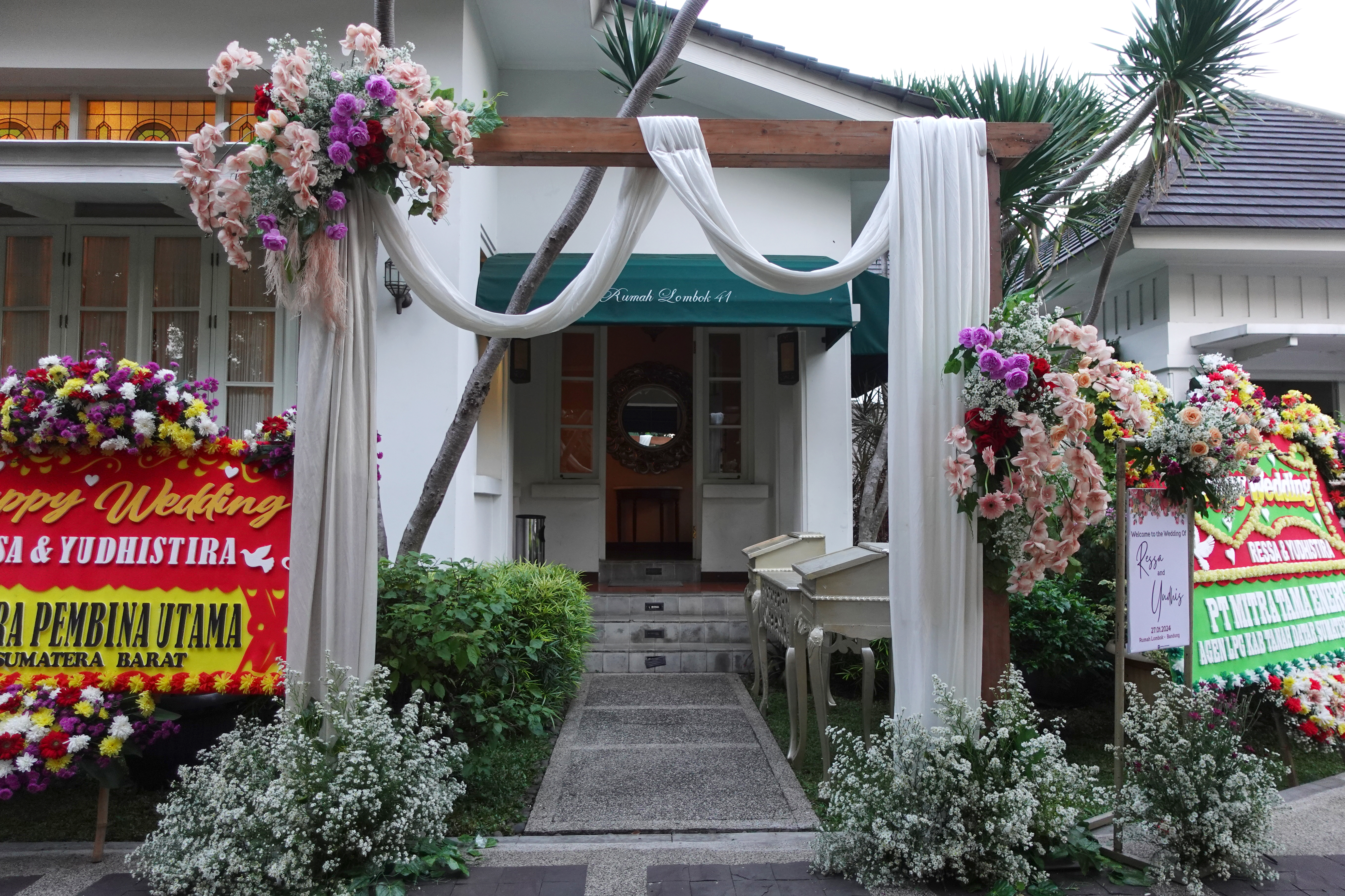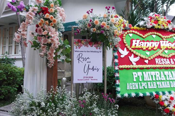 Glowing Art Decoration kali ini dilaksanakan di Rumah Lombok, Bandung. Pasangan yang melaksanakan Pernikahan adalah Kak Ressa &Kak Yudhis. Acara dilaksanakan pada tanggal 27 Januari 2024. Dekorasi kali ini sangat spesial karena dibuat untuk acara yang luar biasa spesial di hari pernikahan antara Kak Ressa &Kak Yudhis . Glowing Art Decoration menampilkan karya terbaik untuk pelaminan yang memiliki aksen Modern – Elegan – Simple dengan nuansa warna terdiri dari Putih, Baby pink, Maroon dan Ungu menjadi dominan dalam acara pernikahan ini. Pada dekorasi acara pernikahan ini, Glowing Art Decoration memasang dekorasi yang terdiri dari Gate entrance, Penerima tamu, Photobooth, 1 gate jalan, Standing flower 6 pcs dan area Pelaminan. . Glowing Art Decoration juga memberikan Welcome sign khusus untuk acara ini.