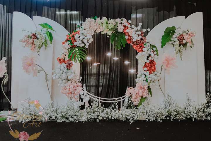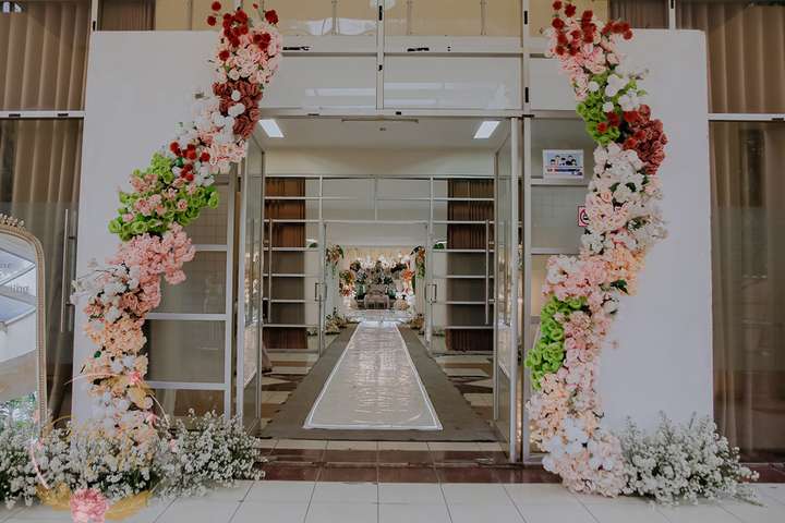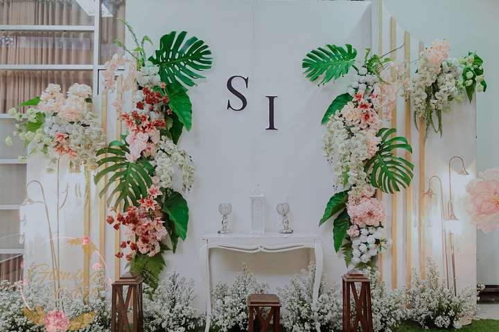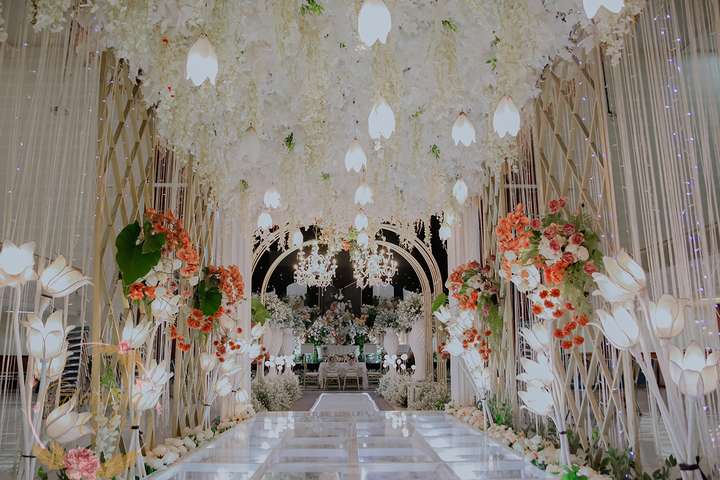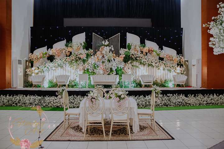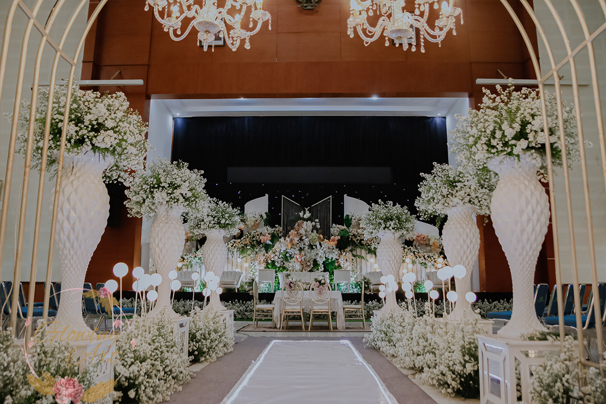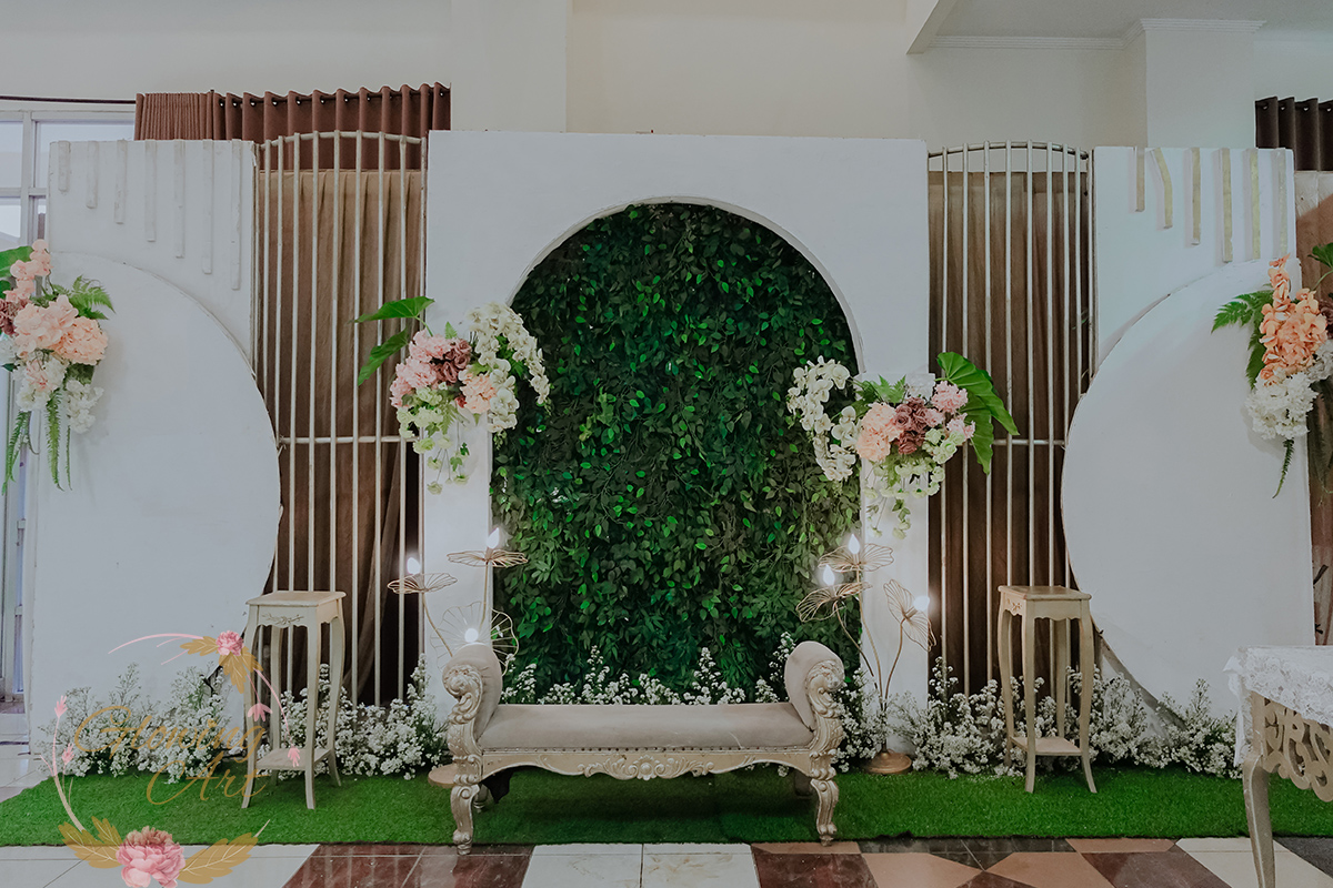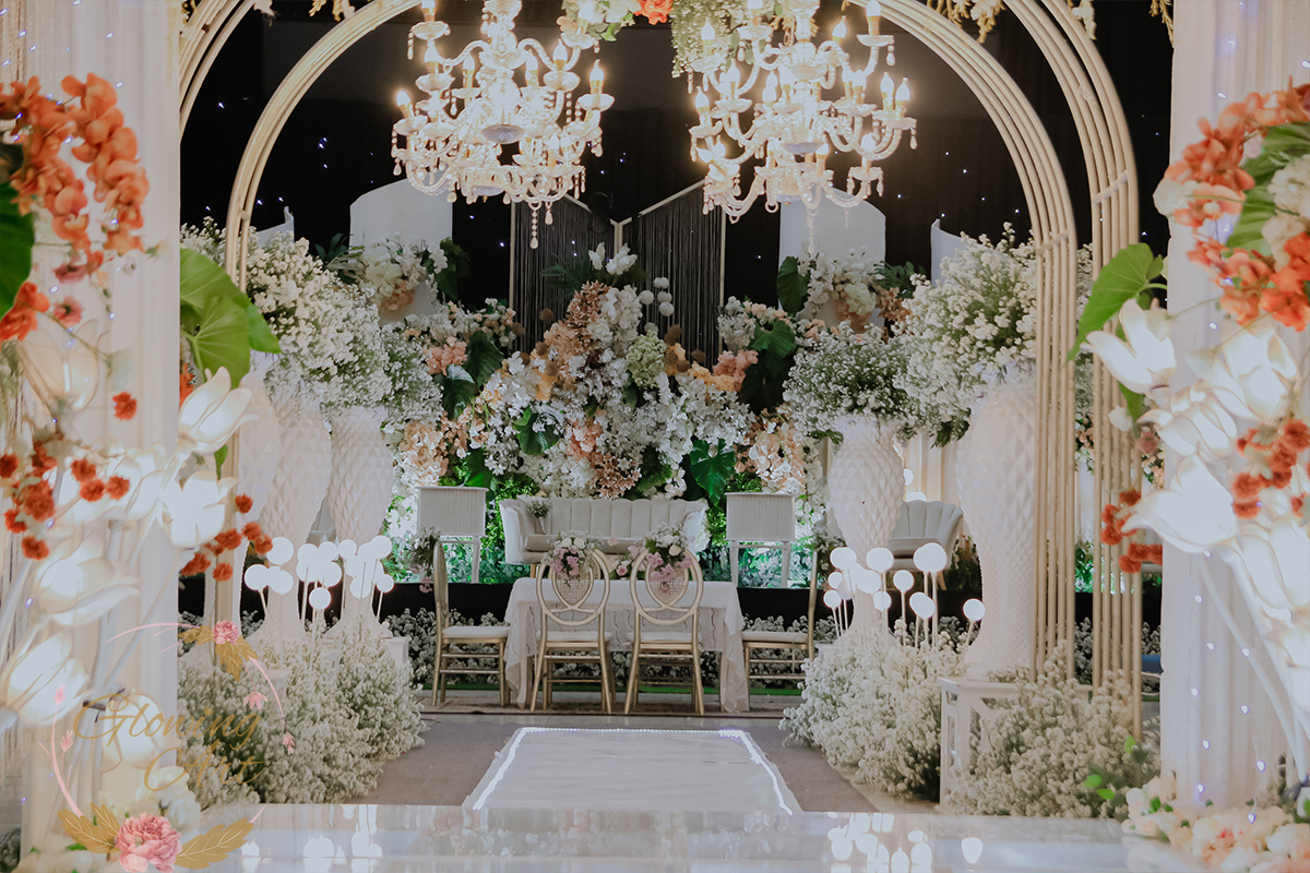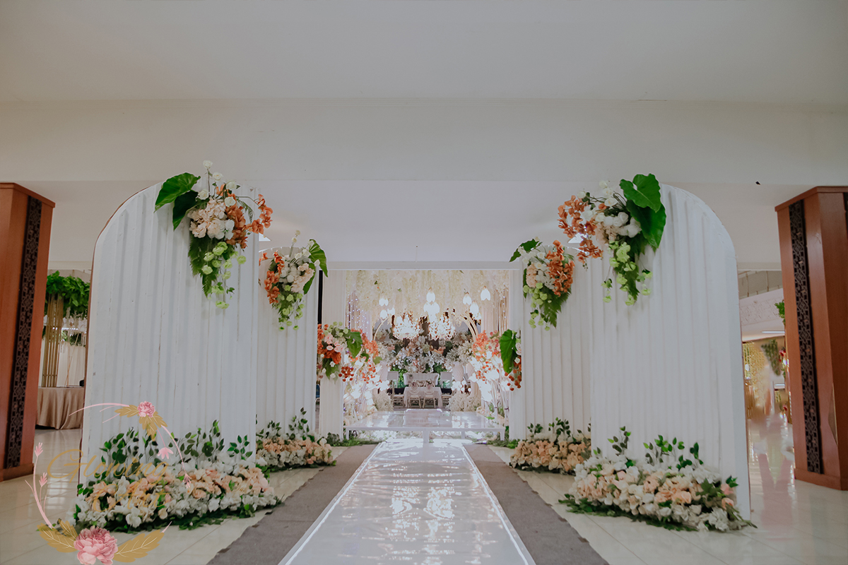 kak Sara &Kak Irham Dekorasi oleh Glowing Art Decoration kali ini dilaksanakan di GD Anwar Musadad UIN Bandung. Pasangan yang melaksanakan Pernikahan adalah kak Sara &Kak Irham. Acara dilaksanakan pada tanggal 30 November 2025. Dekorasi kali ini sangat spesial karena dibuat untuk acara yang luar biasa spesial di hari pernikahan antara kak Sara &Kak Irham. Glowing Art Decoration menampilkan karya terbaik untuk pelaminan yang memiliki aksen Modern – Elegan – Simple dengan nuansa warna terdiri dari Putih,Hijau dan peach menjadi dominan dalam acara pernikahan ini. Pada dekorasi acara pernikahan ini, Glowing Art Decoration memasang dekorasi yang terdiri dari area 2 set photobooth, 2 set Photogallery, Gate jalan, Stand flower 6 pcs, standar jalan dengan melamin floor dan glass floor, set area akad, penerima tamu dengan kotak angpau, area sisi terdapat bunga dan Pelaminan sampai 12 meter. Glowing Art Decoration juga memberikan Welcome sign khusus untuk acara ini.