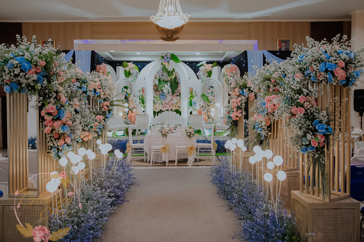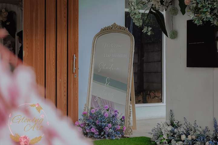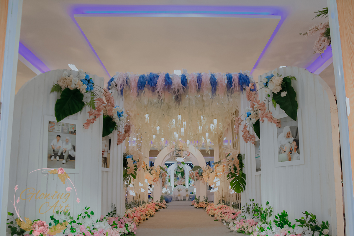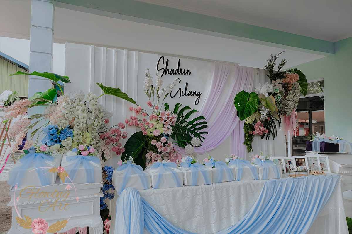 Glowing Art Decoration kali ini dilaksanakan di GD Cendrawasih Bandung. Pasangan yang melaksanakan Pernikahan adalah Kak Shadrin &Kak Gilang . Acara dilaksanakan pada tanggal 20 Desember 2025. Dekorasi kali ini sangat spesial karena dibuat untuk acara yang luar biasa spesial di hari pernikahan antara Kak Shadrin &Kak Gilang . Glowing Art Decoration menampilkan karya terbaik untuk pelaminan yang memiliki aksen Modern – Elegan – Simple dengan nuansa warna terdiri dari Putih,lilac, kuning,dusty blue, dusty pink, menjadi dominan dalam acara pernikahan ini. Pada dekorasi acara pernikahan ini, Glowing Art Decoration memasang dekorasi yang terdiri dari area 1 set photobooth, 2 set Photogallery, Gate jalan, Stand flower 6 pcs, standar jalan, set VIP pengantin, penerima tamu dengan kotak angpau, area sisi terdapat bunga dan Pelaminan sampai 12 meter. Glowing Art Decoration juga memberikan Welcome sign khusus untuk acara ini.