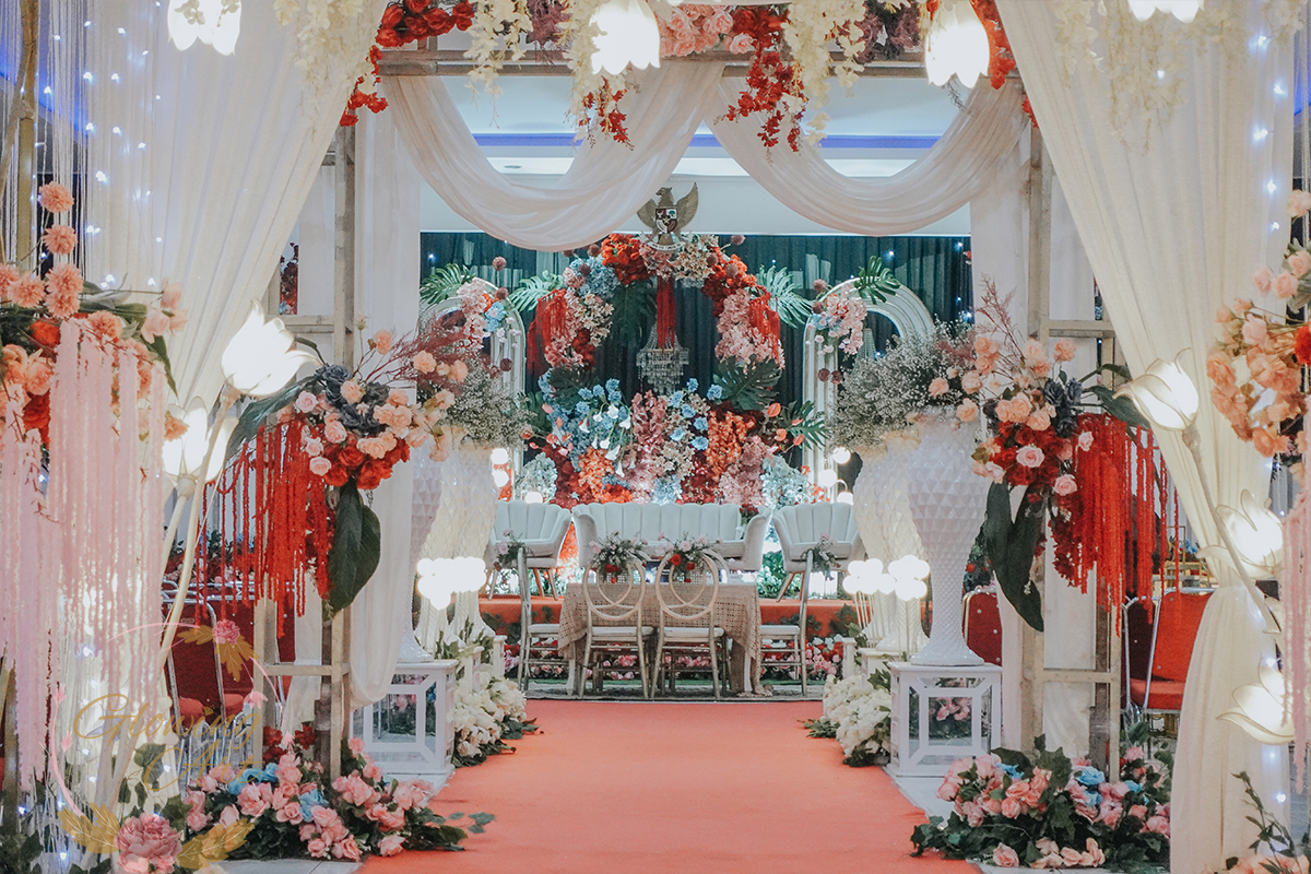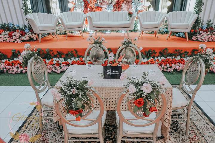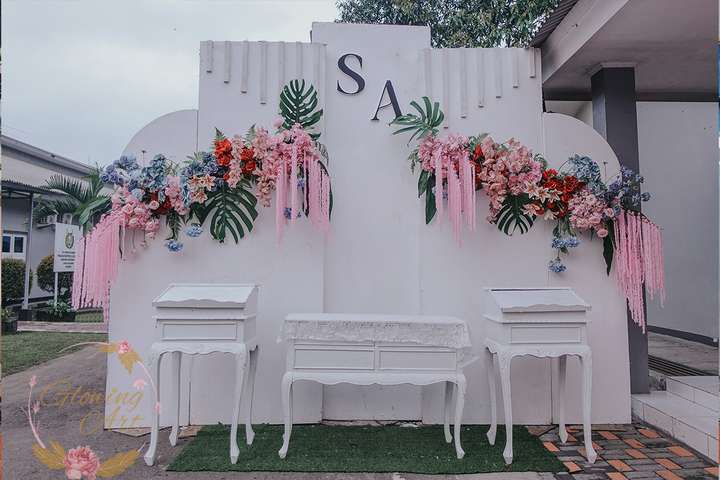 Kak Sharah &Kak Aldi Dekorasi oleh Glowing Art Decoration kali ini dilaksanakan di GD Omega Bandung. Pasangan yang melaksanakan Pernikahan adalah Kak Sharah &Kak Aldi. Acara dilaksanakan pada tanggal 25 Mei 2025. Dekorasi kali ini sangat spesial karena dibuat untuk acara yang luar biasa spesial di hari pernikahan antara Kak Sharah &Kak Aldi. Glowing Art Decoration menampilkan karya terbaik untuk pelaminan yang memiliki aksen Modern – Elegan – Simple dengan nuansa warna terdiri dari Putih, dusty pink, touch of maroon dan dusty blue,menjadi dominan dalam acara pernikahan ini. Pada dekorasi acara pernikahan ini, Glowing Art Decoration memasang dekorasi yang terdiri dari area 1 set photobooth, 1 set Photogallery, Gate jalan, Stand flower 6 pcs, standar jalan, set area akad, penerima tamu dengan kotak angpau, area sisi terdapat bunga dan Pelaminan sampai 10 meter. Glowing Art Decoration juga memberikan Welcome sign khusus untuk acara ini.