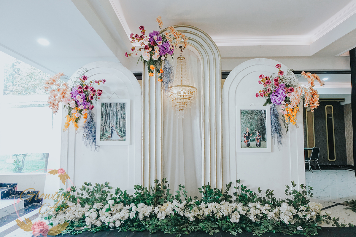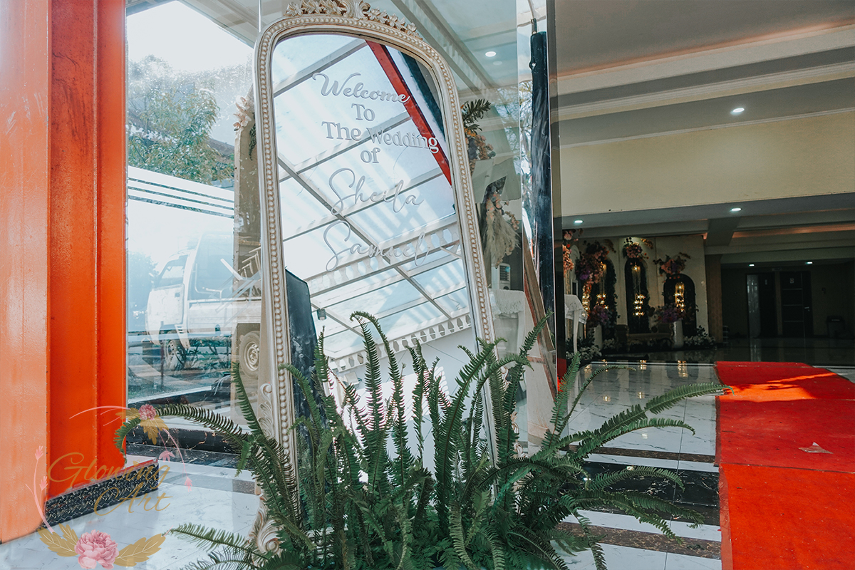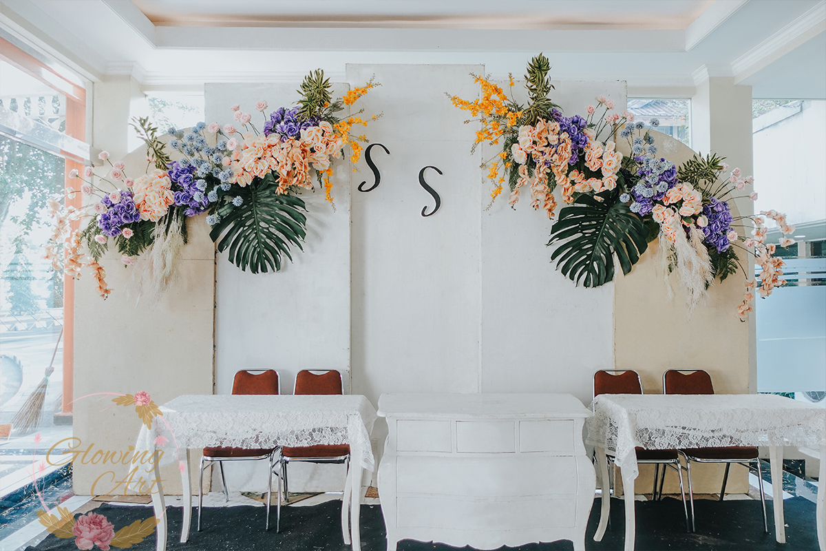 Kak Sheila &Kak Samuel Dekorasi oleh Glowing Art Decoration kali ini dilaksanakan di Graha Pindad Bandung. Pasangan yang melaksanakan Pernikahan adalah Kak Sheila &Kak Samuel . Acara dilaksanakan pada tanggal 11 Mei 2025. Dekorasi kali ini sangat spesial karena dibuat untuk acara yang luar biasa spesial di hari pernikahan antara Kak Sheila &Kak Samuel . Glowing Art Decoration menampilkan karya terbaik untuk pelaminan yang memiliki aksen Modern – Elegan – Simple dengan nuansa warna terdiri dari Putih, dusty Blue, dusty pink, kuning, sedikit orange dan Peach menjadi dominan dalam acara pernikahan ini. Pada dekorasi acara pernikahan ini, Glowing Art Decoration memasang dekorasi yang terdiri dari area 2 set photobooth, 1 set Photogallery, Gate jalan, Stand flower 6 pcs, standar jalan, set VIP pengantin, penerima tamu dengan kotak angpau, area sisi terdapat bunga dan Pelaminan sampai 12 meter. Glowing Art Decoration juga memberikan Welcome sign khusus untuk acara ini.