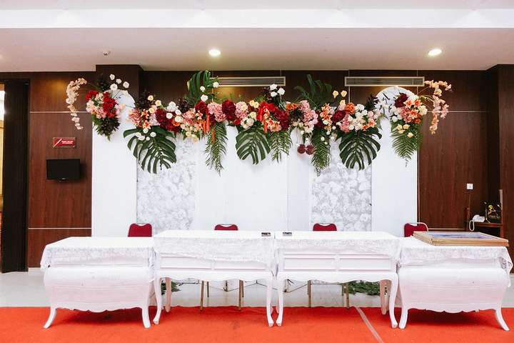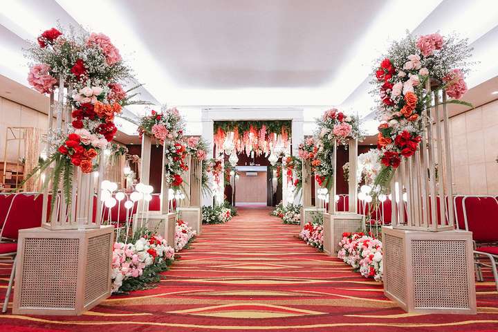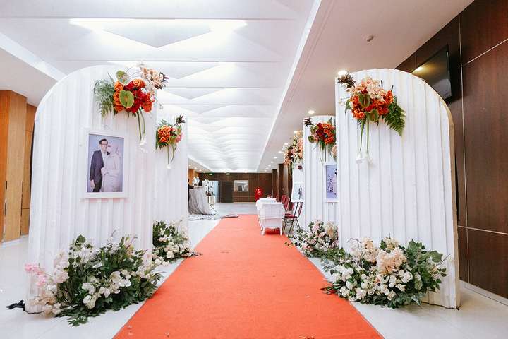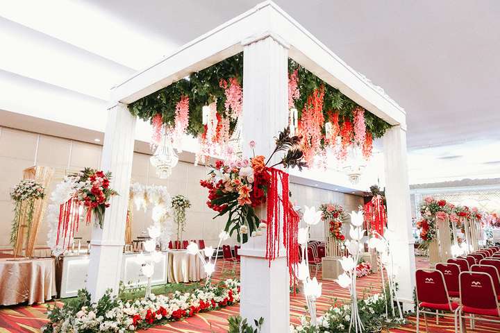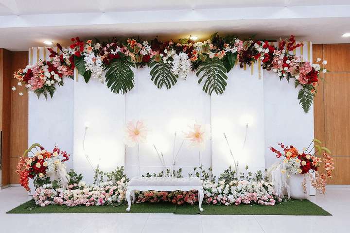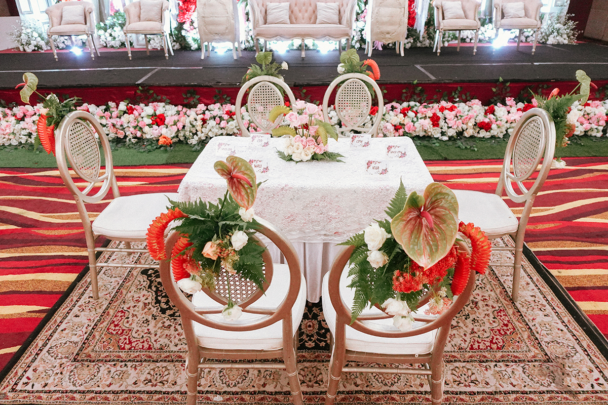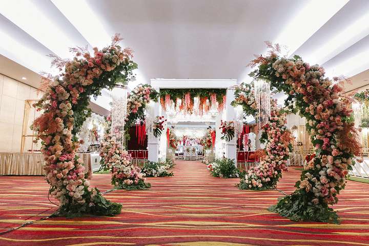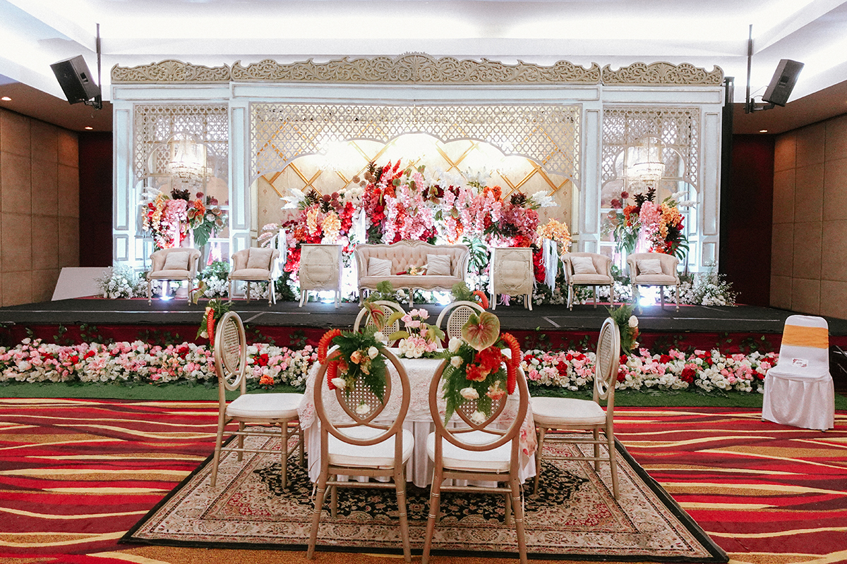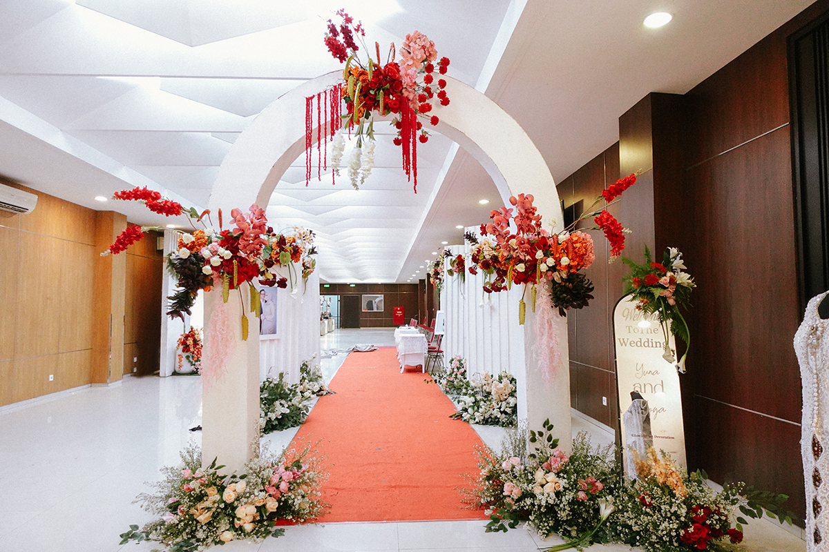 Kak Yuna &Kak Yoga Dekorasi oleh Glowing Art Decoration kali ini dilaksanakan di Mepro Hall Bandung. Pasangan yang melaksanakan Pernikahan adalah Kak Yuna &Kak Yoga. Acara dilaksanakan pada tanggal 16 Februari 2025. Dekorasi kali ini sangat spesial karena dibuat untuk acara yang luar biasa spesial di hari pernikahan antara Kak Yuna &Kak Yoga. Glowing Art Decoration menampilkan karya terbaik untuk pelaminan yang memiliki aksen Modern – Elegan – Simple dengan nuansa warna terdiri dari Putih, hijau, Dusty Pink dan peach menjadi dominan dalam acara pernikahan ini. Pada dekorasi acara pernikahan ini, Glowing Art Decoration memasang dekorasi yang terdiri dari area photobooth, 1 set Photogallery, Gate jalan, Stand flower 6 pcs, standar jalan, set area akad, penerima tamu dengan kotak angpau, area sisi terdapat bunga dan Pelaminan sampai 10 meter. Glowing Art Decoration juga memberikan Welcome sign khusus untuk acara ini.