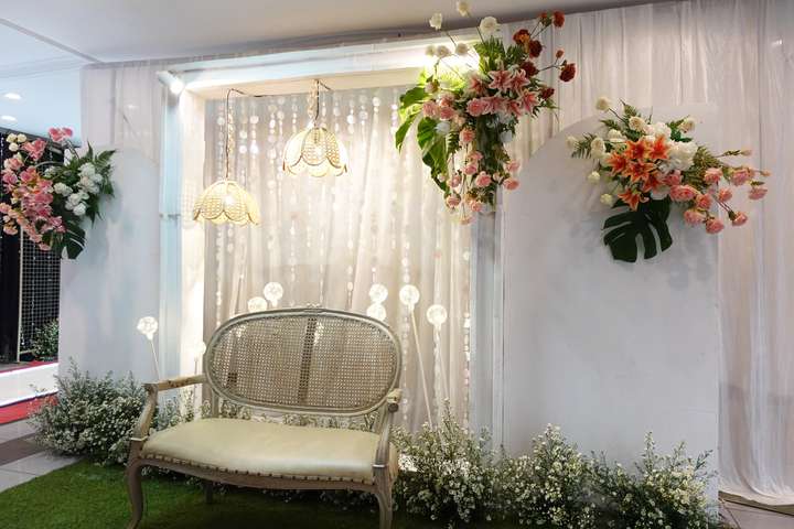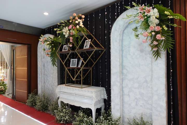 Dekorasi oleh Glowing Art Decoration kali ini dilaksanakan di GD Tekmira Bandung. Pasangan yang melaksanakan Pernikahan adalah Kak Zahra &Kak Ihsan. Acara dilaksanakan pada tanggal 14 Januari 2024. Dekorasi kali ini sangat spesial karena dibuat untuk acara yang luar biasa spesial di hari pernikahan antara Kak Zahra &Kak Ihsan. Glowing Art Decoration menampilkan karya terbaik untuk pelaminan yang memiliki aksen Modern – Elegan – Simple dengan nuansa warna terdiri dari Putih, Baby pink, Dusty pink dan Peach menjadi dominan dalam acara pernikahan ini. Pada dekorasi acara pernikahan ini, Glowing Art Decoration memasang dekorasi yang terdiri dari area Pergola drop off, Gate entrance, Penerima tamu 2 sisi, 2 set Photobooth, 2 set Photogallery, Pergola 3 x 6m, Gate jalan 2 pcs, Standing flower 8 pcs, dan area Pelaminan. . Glowing Art Decoration juga memberikan Welcome sign khusus untuk acara ini.