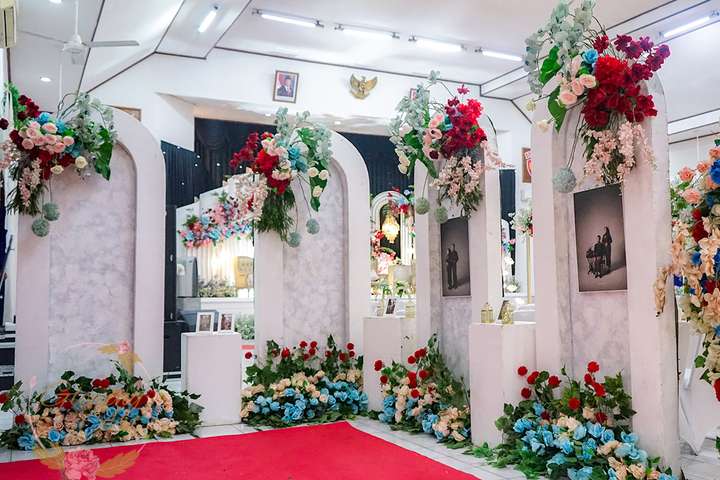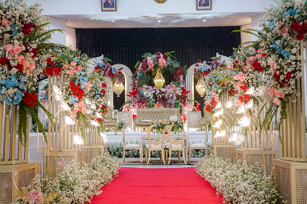Kak Nadya &Kak Berry Dekorasi oleh Glowing Art Decoration kali ini dilaksanakan di GD Wiriadinata Bandung. Pasangan yang melaksanakan Pernikahan adalah Kak Nadya &Kak Berry . Acara dilaksanakan pada tanggal 30 November 2025. Dekorasi kali ini sangat spesial karena dibuat untuk acara yang luar biasa spesial di hari pernikahan antara Kak Nadya &Kak Berry . Glowing Art Decoration menampilkan karya terbaik untuk pelaminan yang memiliki aksen Modern – Elegan – Simple dengan nuansa warna terdiri dari Putih, maroon, navy,dusty blue, dusty pink, menjadi dominan dalam acara pernikahan ini. Pada dekorasi acara pernikahan ini, Glowing Art Decoration memasang dekorasi yang terdiri dari area 2 set photobooth, 1 set Photogallery, Gate jalan, Stand flower 6 pcs, standar jalan, set VIP pengantin, penerima tamu dengan kotak angpau, area sisi terdapat bunga dan Pelaminan sampai 12 meter. Glowing Art Decoration juga memberikan Welcome sign khusus untuk acara ini.
